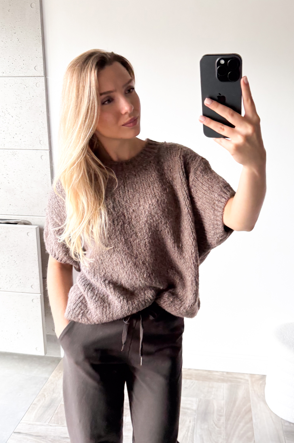 Sweterek DOLCE PICANTE fango159.00 zł Najniższa cena towaru, która obowiązywała w okresie 30 dni przed zastosowaniem obniżki: 159.00 zł Opis Ciepły sweterek , z krótkim rękawem wykończony delikatnymi ściągaczami. SKŁAD: 65%akryl,17%poliamid,9%wool,9%wiskoza