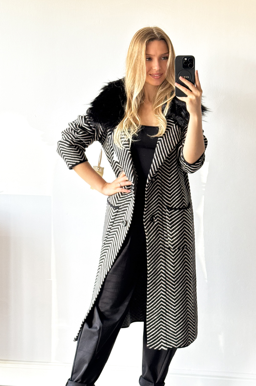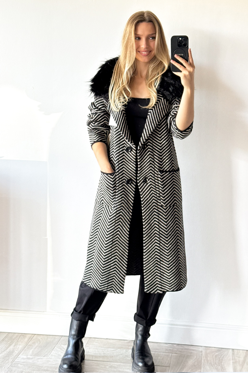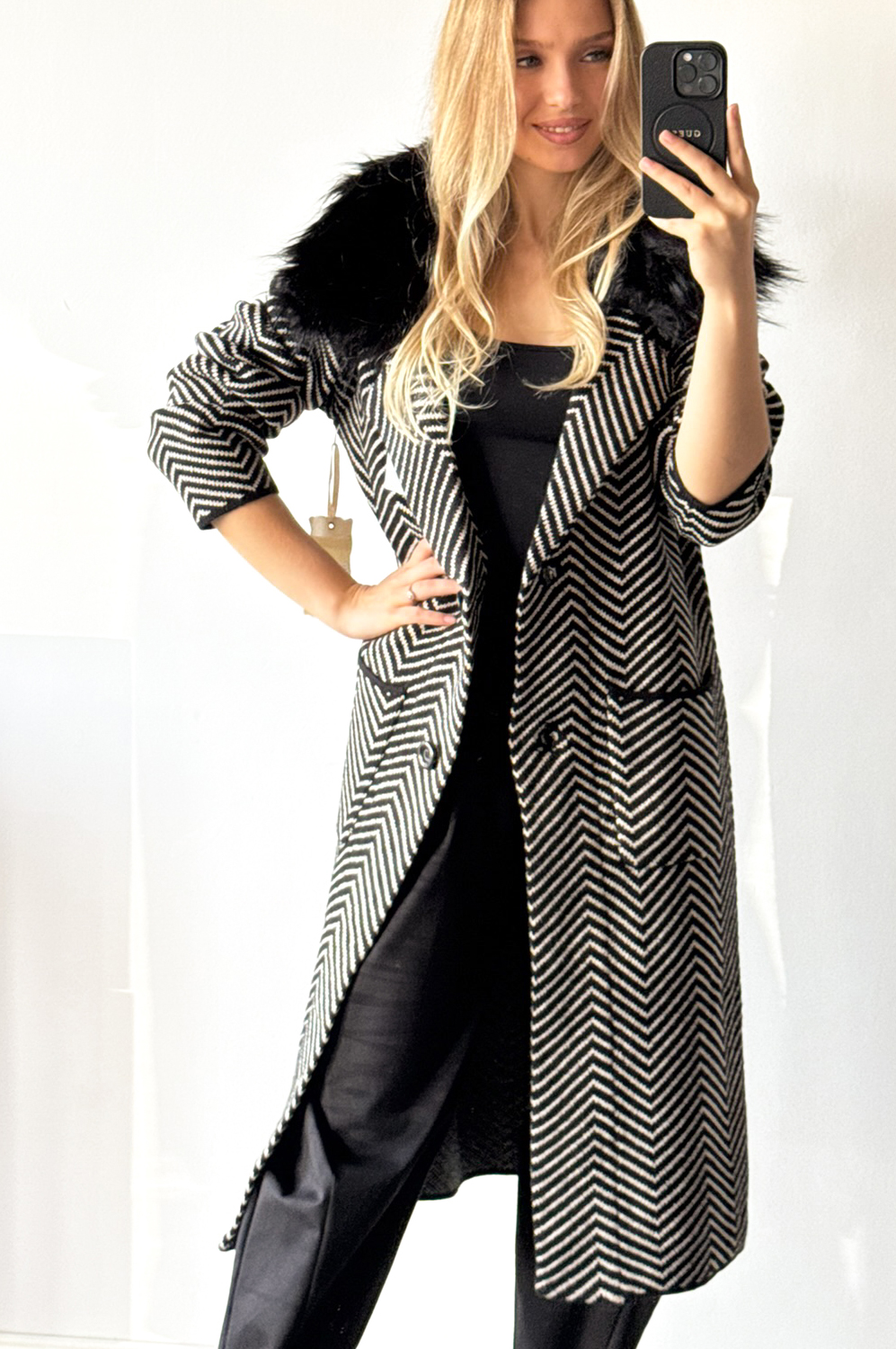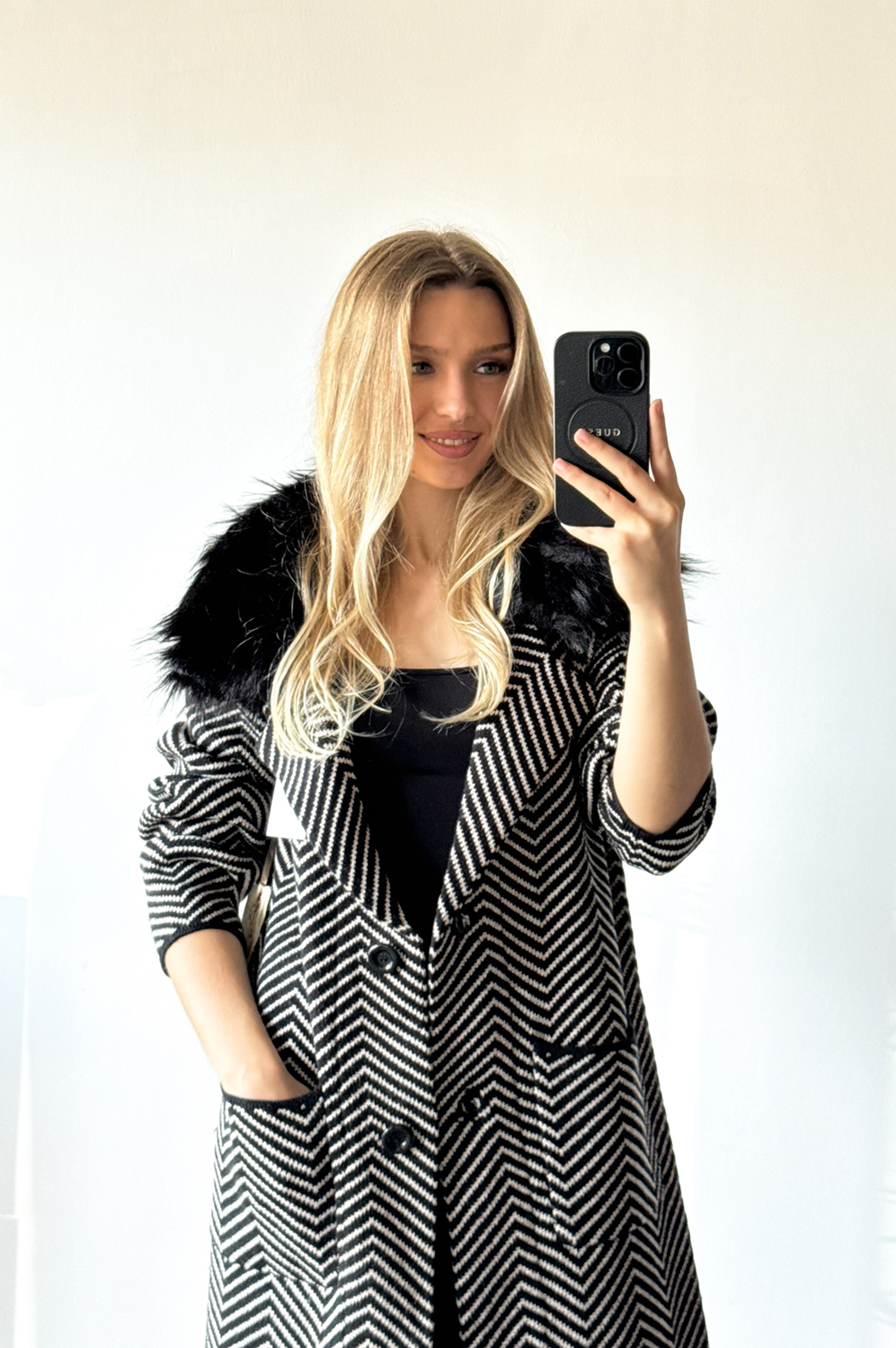 Płaszcz JODEŁKA Z FUTRZANYM KOŁNIERZEM