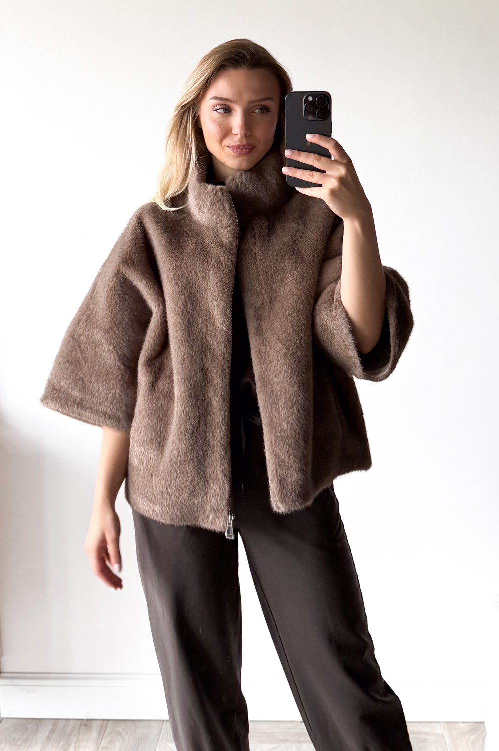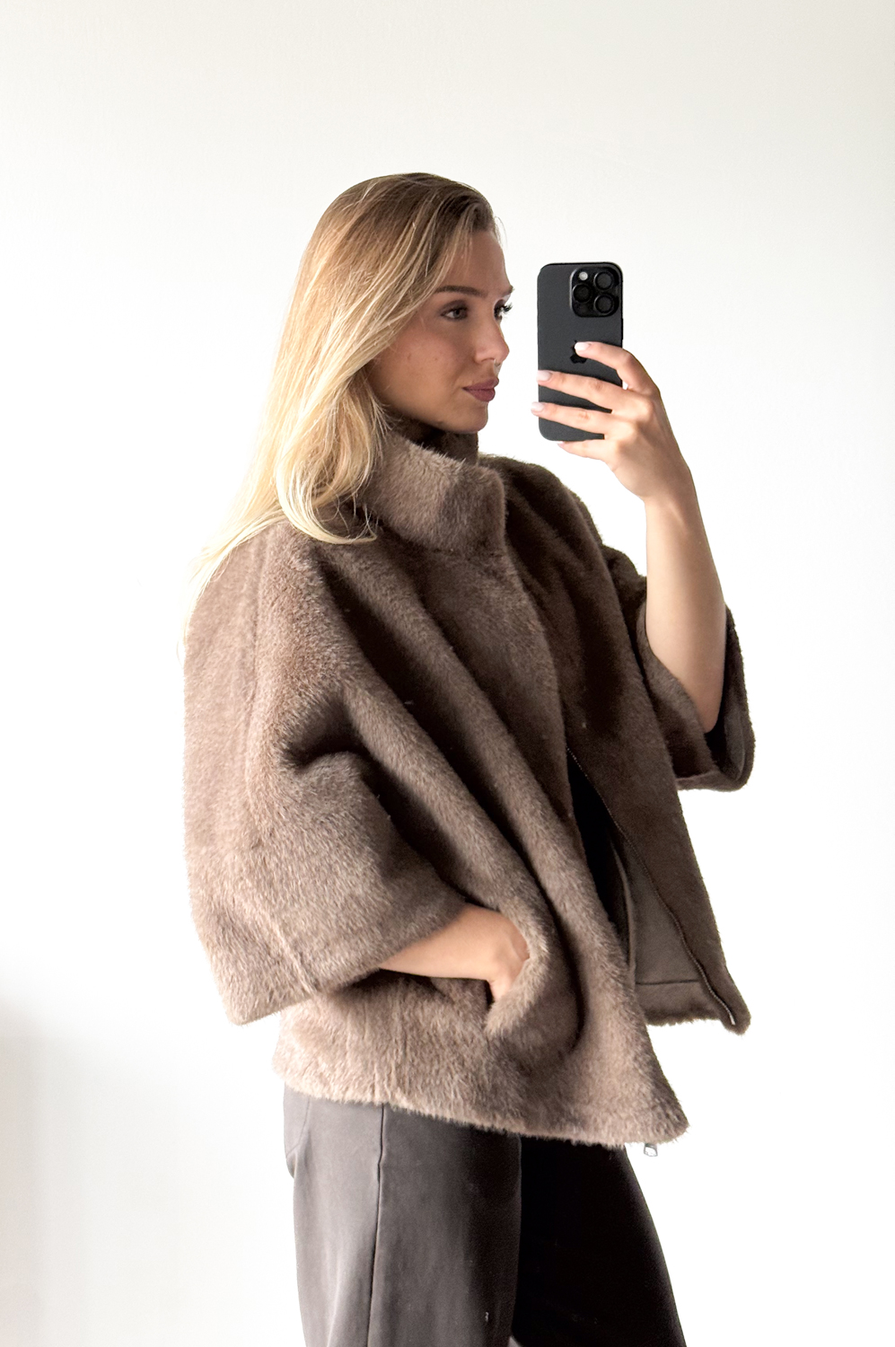 Kurtka PONCZO FUTERKOWE fango399.00 zł Najniższa cena towaru, która obowiązywała w okresie 30 dni przed zastosowaniem obniżki: 399.00 zł Opis Kurtka futerkowa oversizowa z kieszeniami, zapinana na zamek. Wykonana z futerka świetnej jakości beż podszewki, od środka jest ładny korzuszek. Rękawy 3/4. ZOBACZ FILM: SKŁAD : 100% poliester
