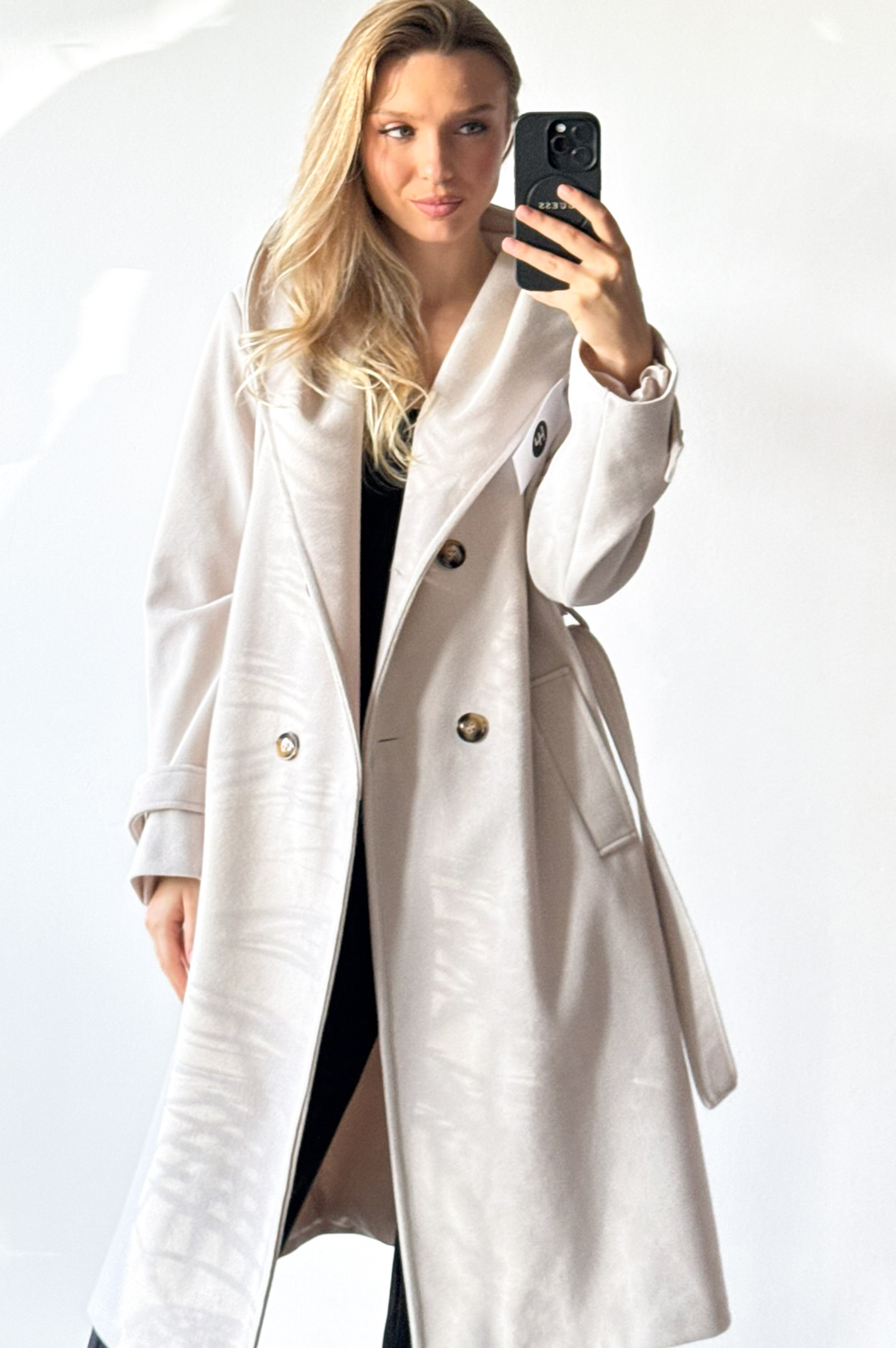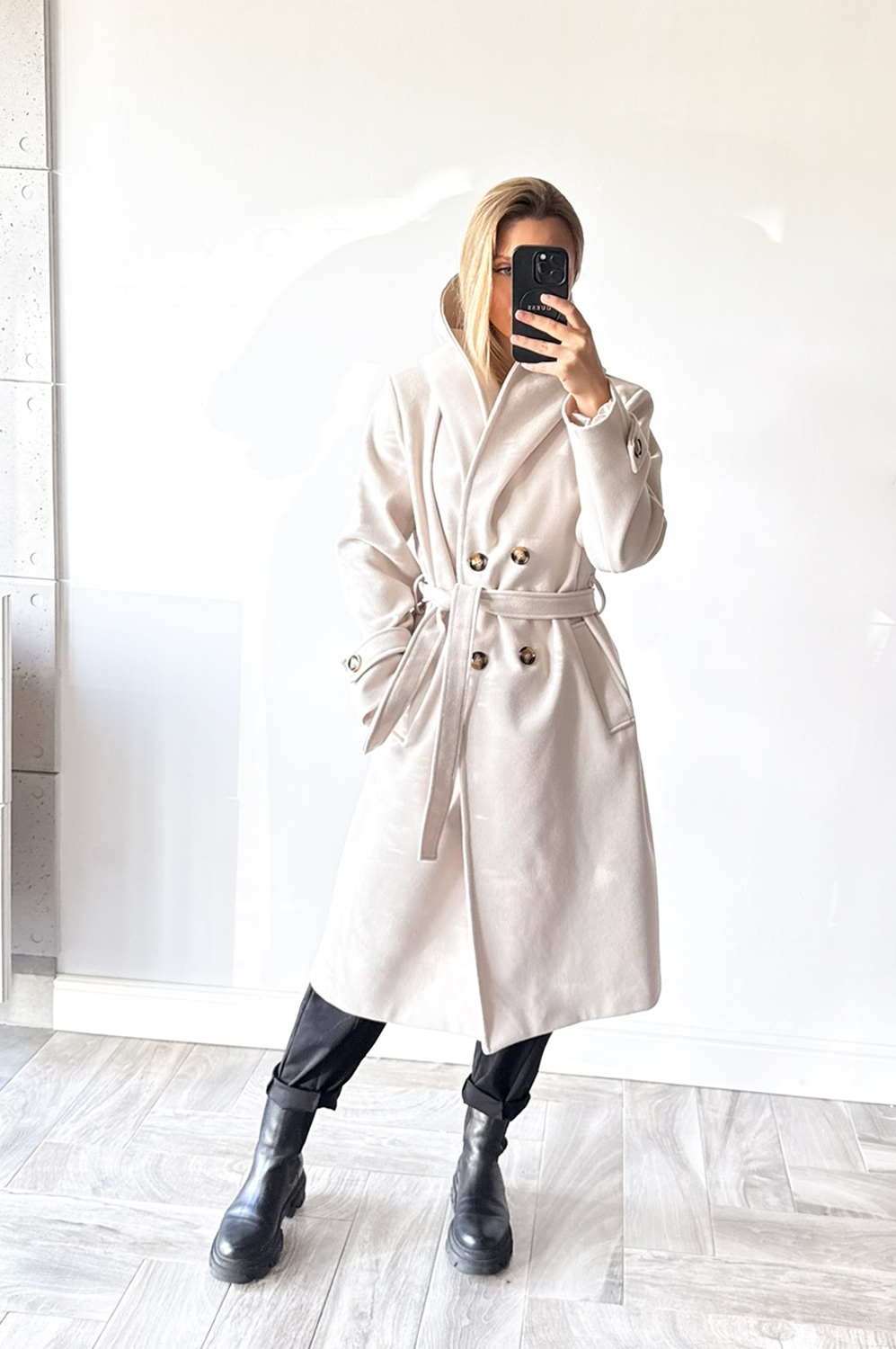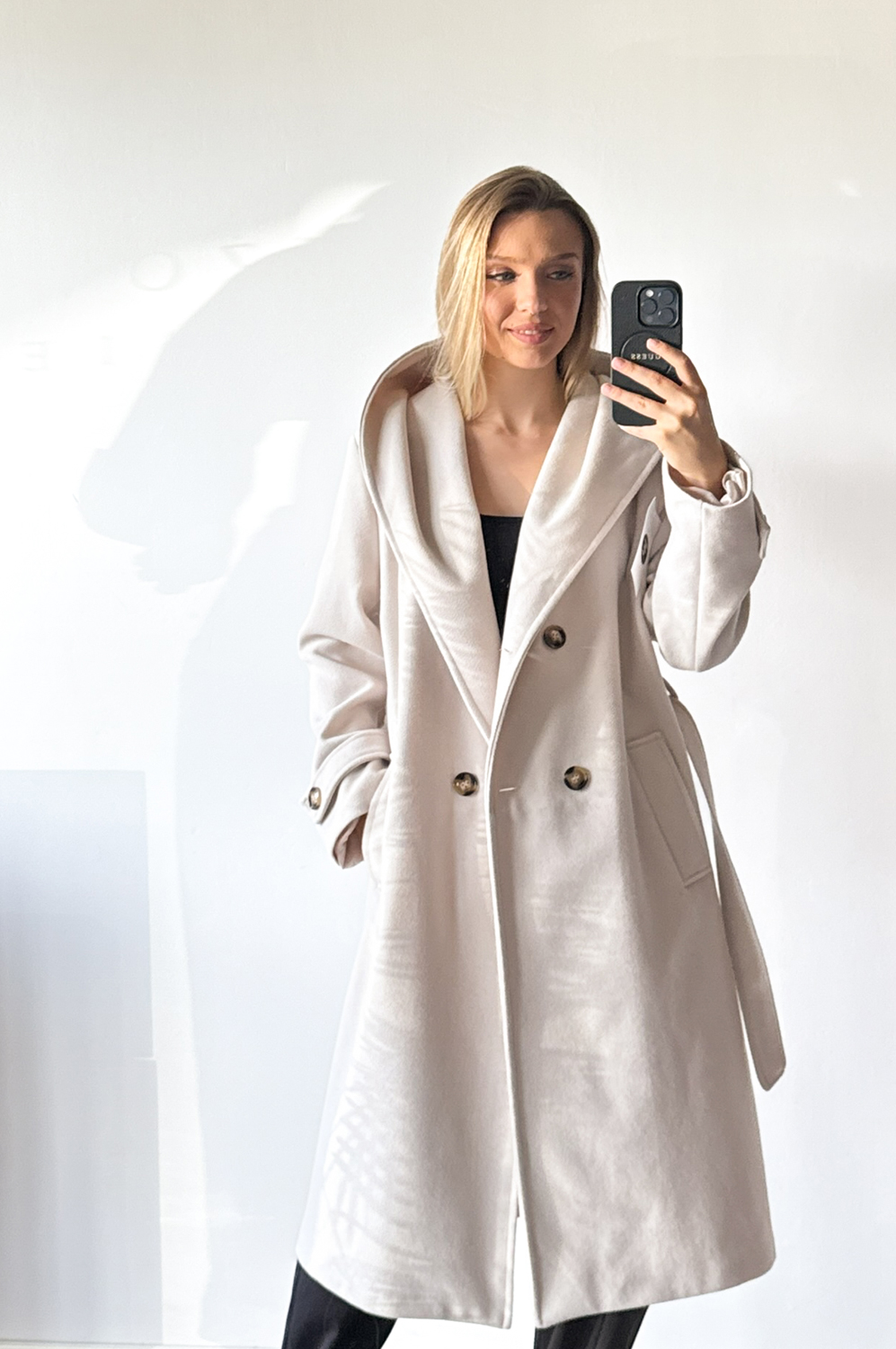 Płaszcz HOOD jasny beż219.00 zł Najniższa cena towaru, która obowiązywała w okresie 30 dni przed zastosowaniem obniżki: 219.00 zł Opis Płaszcz z kapturem w długości midi,idealny do stylizacji jesiennej,posiada kieszenie oraz wiązankę .Całość podszyta podszewką. ZASADY KONSERWACJI : PRANIE W 30 STOPNIACH.