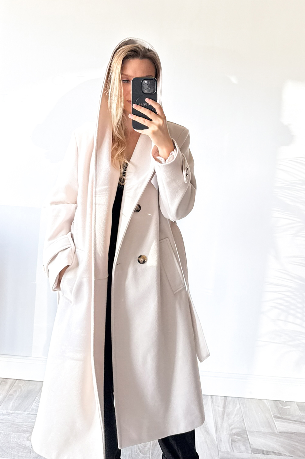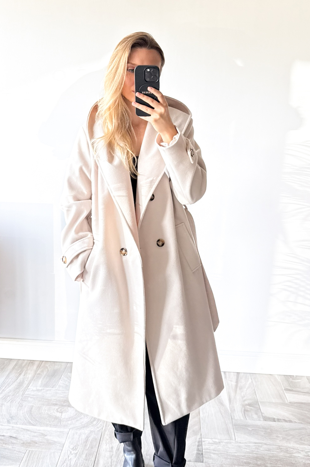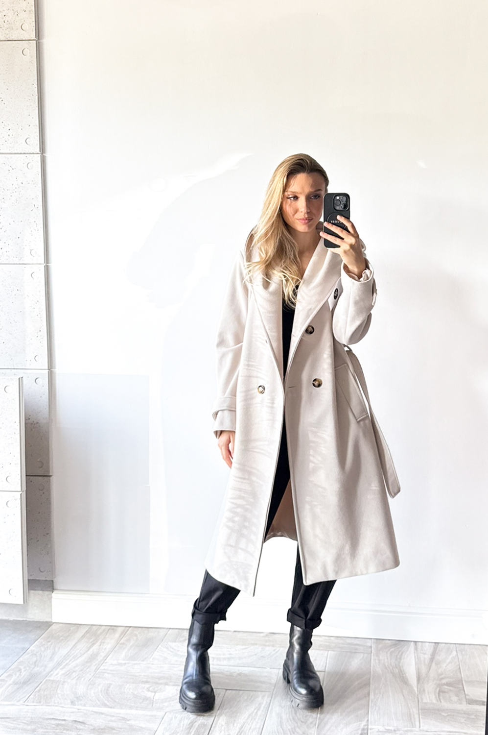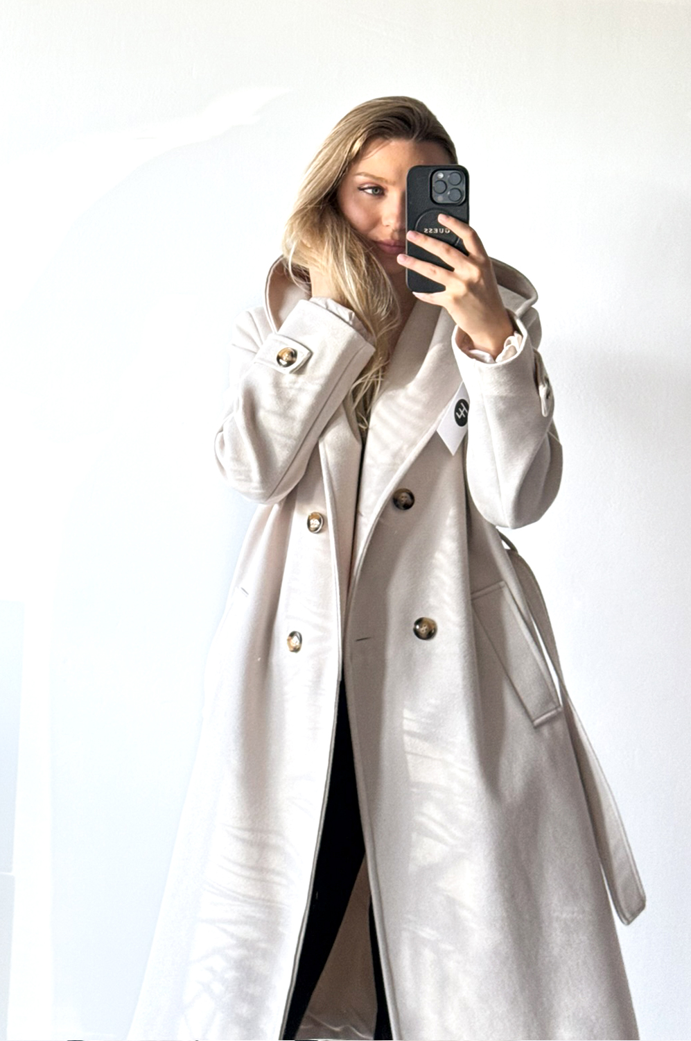 Płaszcz HOOD jasny beż219.00 zł Najniższa cena towaru, która obowiązywała w okresie 30 dni przed zastosowaniem obniżki: 219.00 zł Opis Płaszcz z kapturem w długości midi,idealny do stylizacji jesiennej,posiada kieszenie oraz wiązankę .Całość podszyta podszewką. ZASADY KONSERWACJI : PRANIE W 30 STOPNIACH.