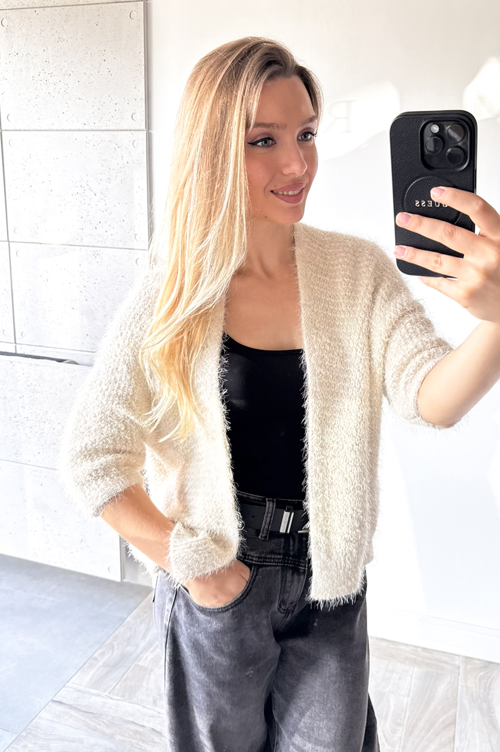Narzutka SWETERKOWA budyń139.00 zł Najniższa cena towaru, która obowiązywała w okresie 30 dni przed zastosowaniem obniżki: 139.00 zł Opis Sweterek narzutka. Posiada długi rękaw 3/4. Bardzo mięciutki w dotyku, WYMIARY: rozmiar UNI