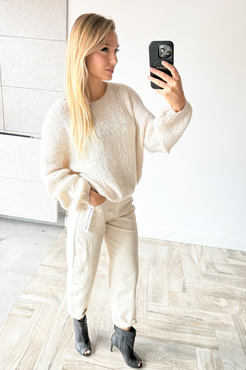 Sweterek MIĘCIUTKI krem159.00 zł Najniższa cena towaru, która obowiązywała w okresie 30 dni przed zastosowaniem obniżki: 159.00 zł Opis Zwrot ZWROTY