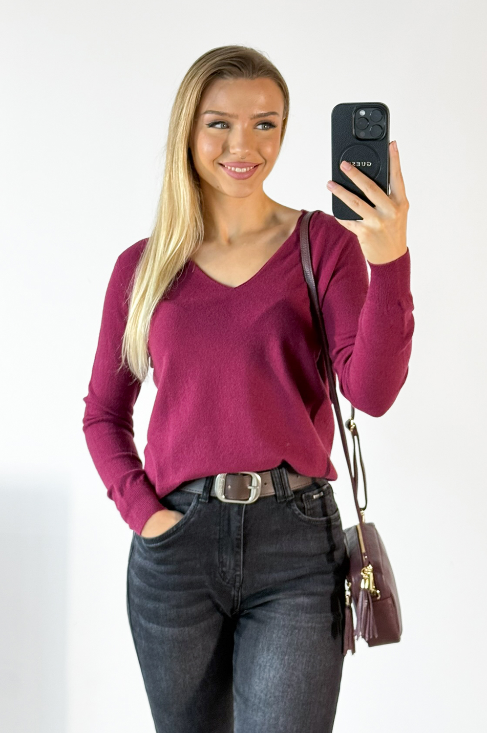Sweterek classic SZPIC wino139.00 zł Najniższa cena towaru, która obowiązywała w okresie 30 dni przed zastosowaniem obniżki: 139.00 zł Opis Sweterek o klasycznym kroju w szpic i długim rękawem WYMIARY: długość: 63 cm, szerokość: 100-106 cm