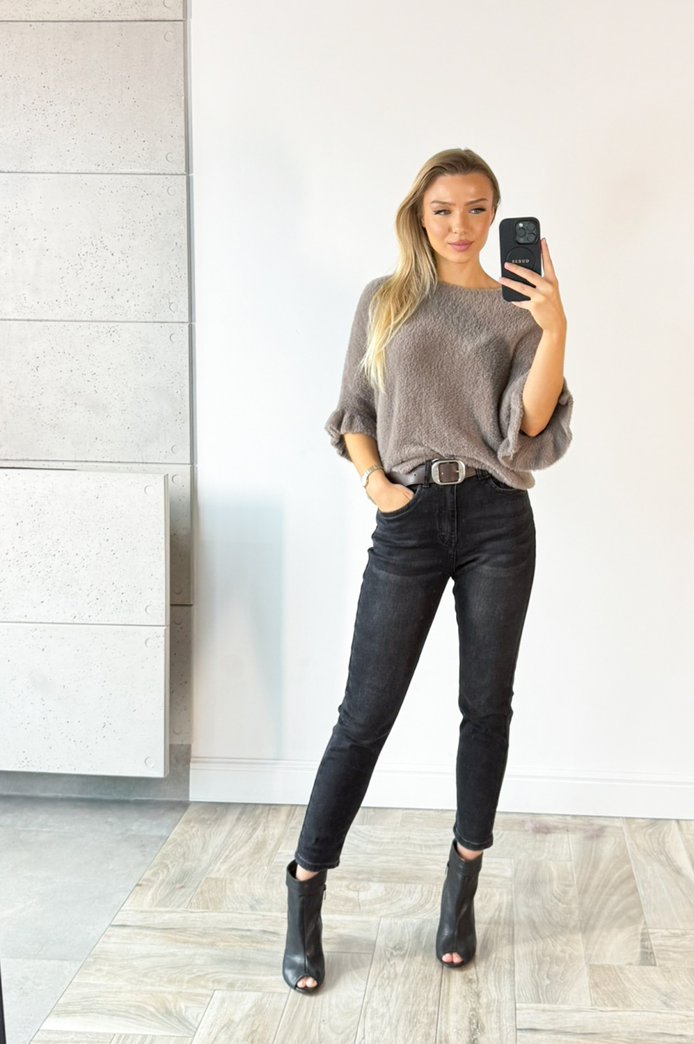 Sweterek SOFT ALPACA KIMONO fango149.00 zł Najniższa cena towaru, która obowiązywała w okresie 30 dni przed zastosowaniem obniżki: 149.00 zł Opis Sweterek o kroju kimono z falbankami przy rękawach, jest bardzo mięciutki. sweterek nie drapie jest cudowny w chwycie i do ciała. SKŁAD: 75%nylon 15% wool