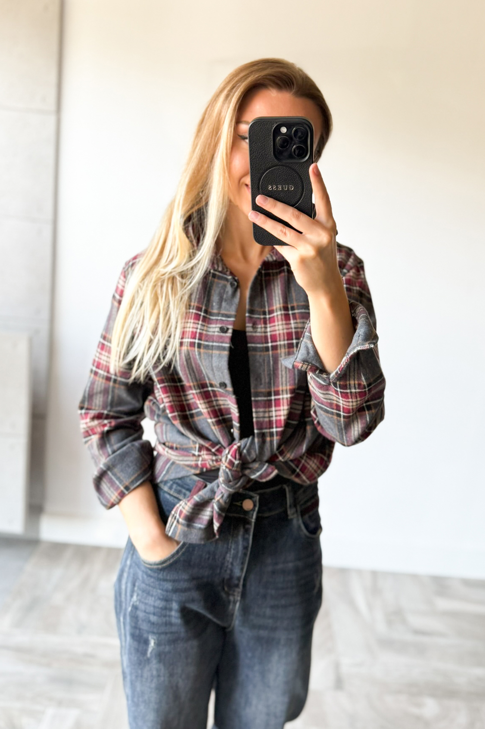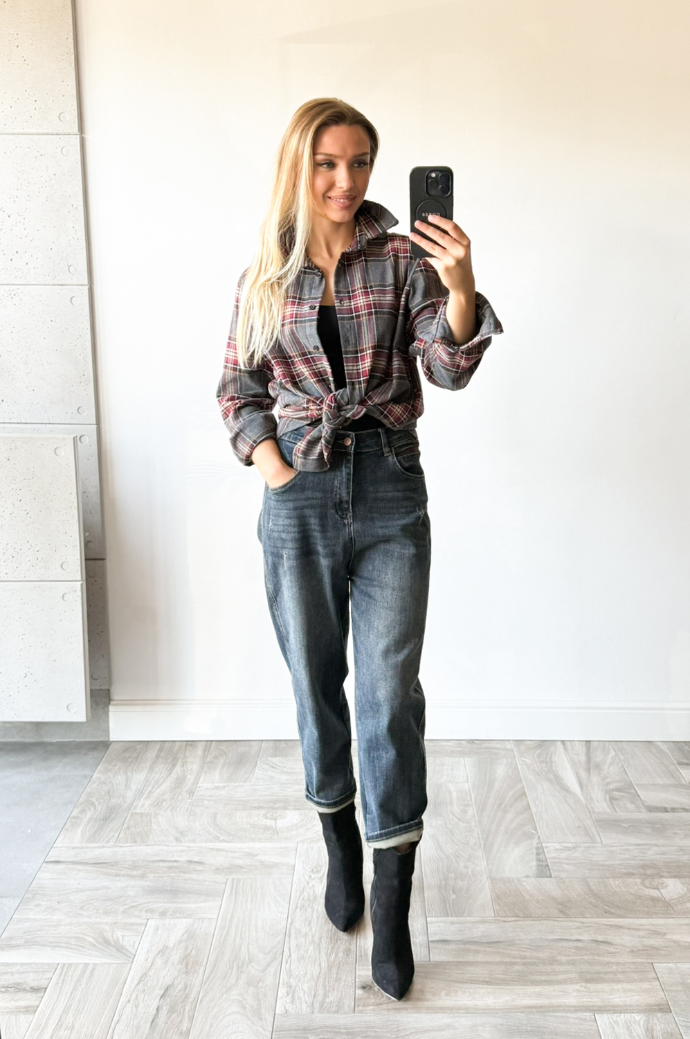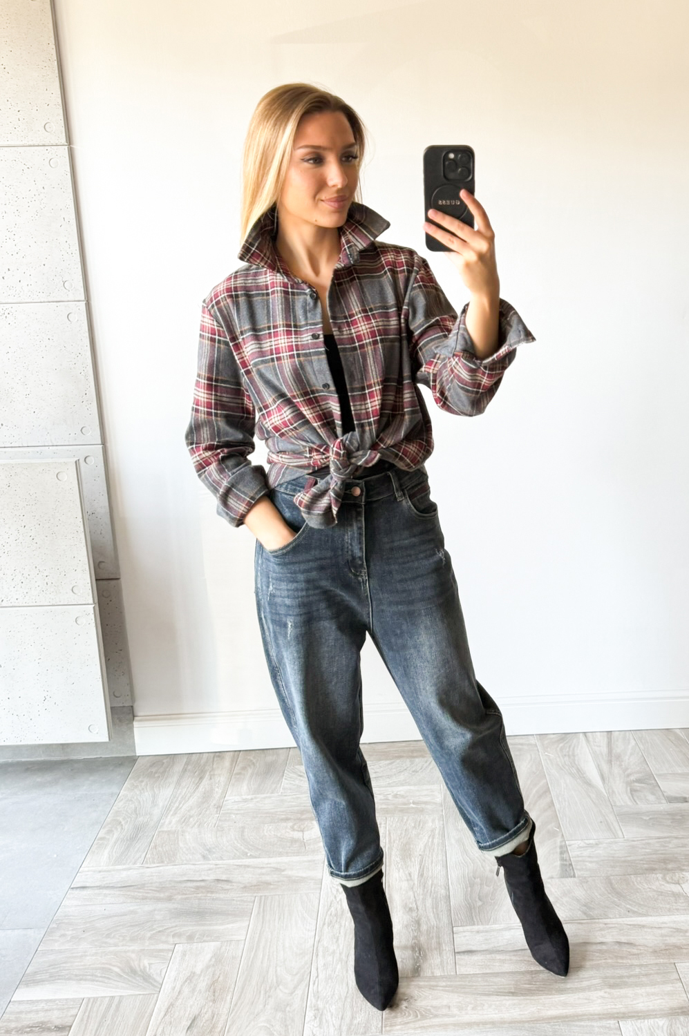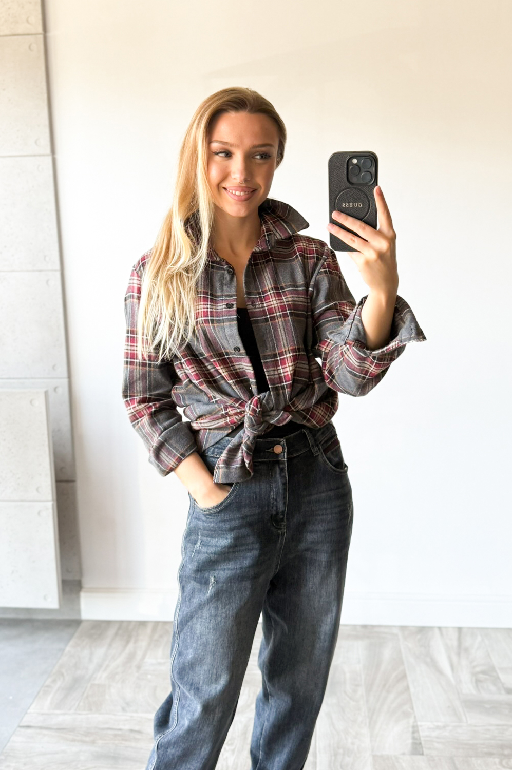 Bluzka koszulowa KARATA szaro śliwkowa159.00 zł Najniższa cena towaru, która obowiązywała w okresie 30 dni przed zastosowaniem obniżki: 159.00 zł Opis Piękna i elegancka koszula w kratę,idealnie pasująca do wielu stylizacji sportowych SKŁAD : 100%bawełna