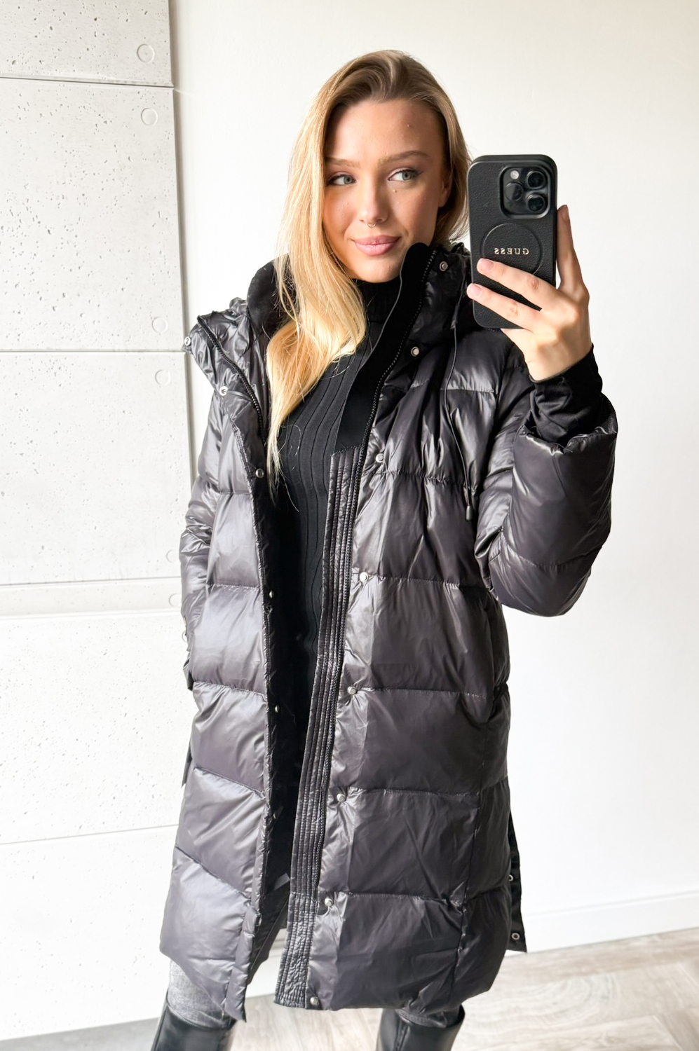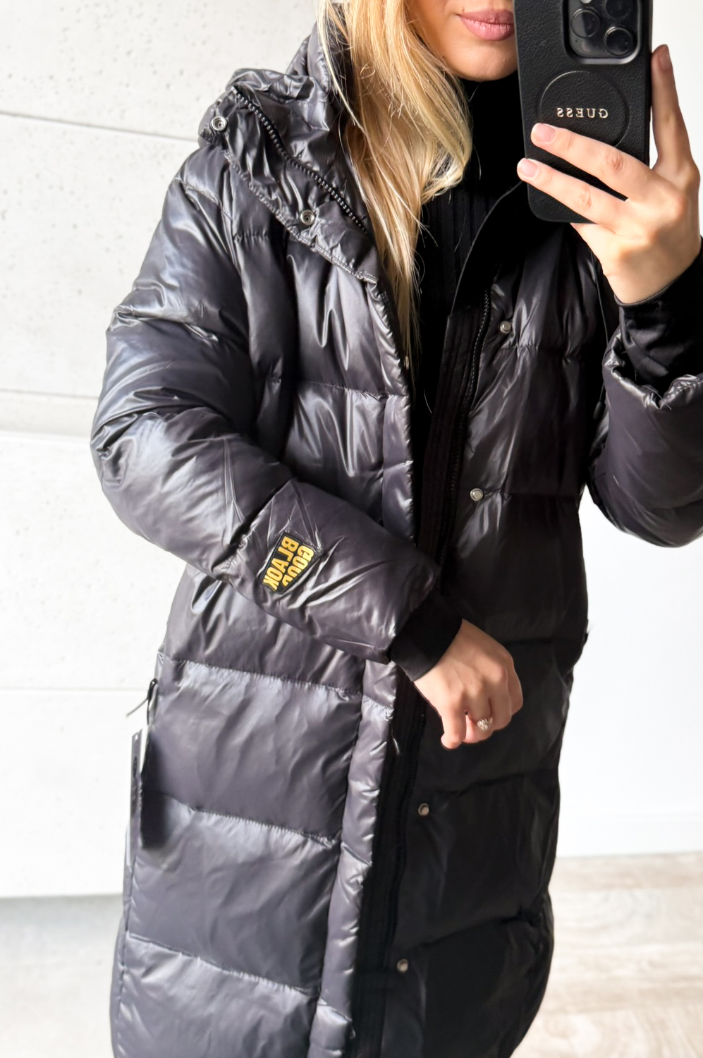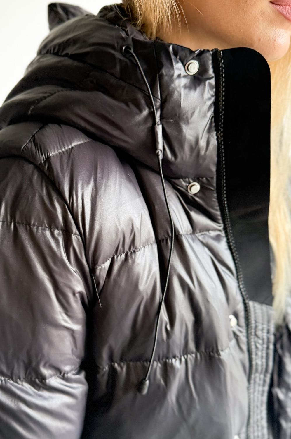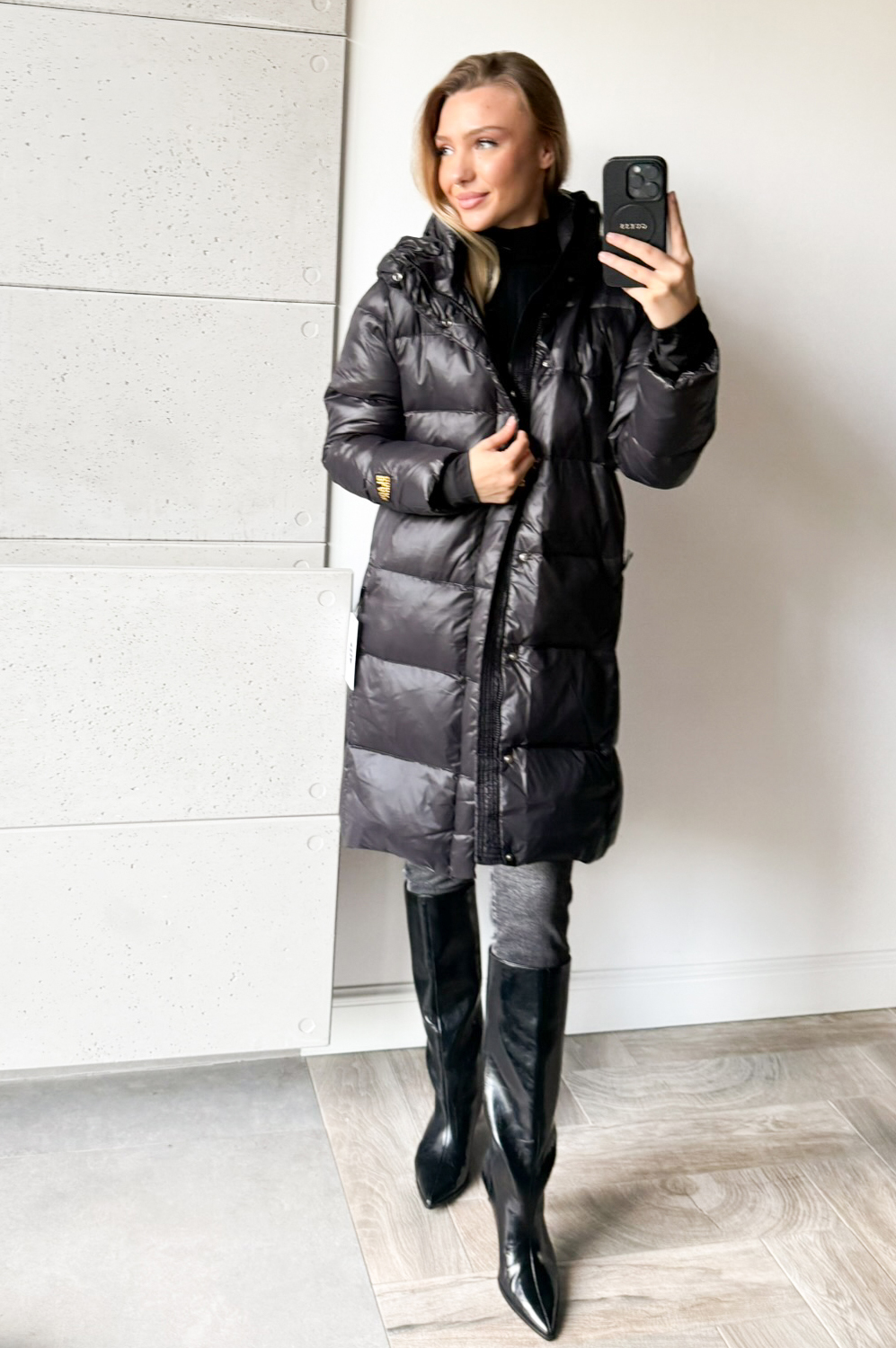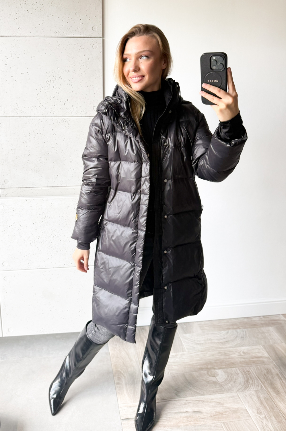 Płaszcz PUCHOWY GOLD NA SZELKACH czarny499.00 zł Najniższa cena towaru, która obowiązywała w okresie 30 dni przed zastosowaniem obniżki: 499.00 zł Opis Długa kurtka z kapturem i szelkami w podszewce. Wypełnienie puchem kaczym, posiada zamek. Złote elamenty w podszewce. ZASADY KONSERWACJI : PRANIE W 30 STOPNIACH.