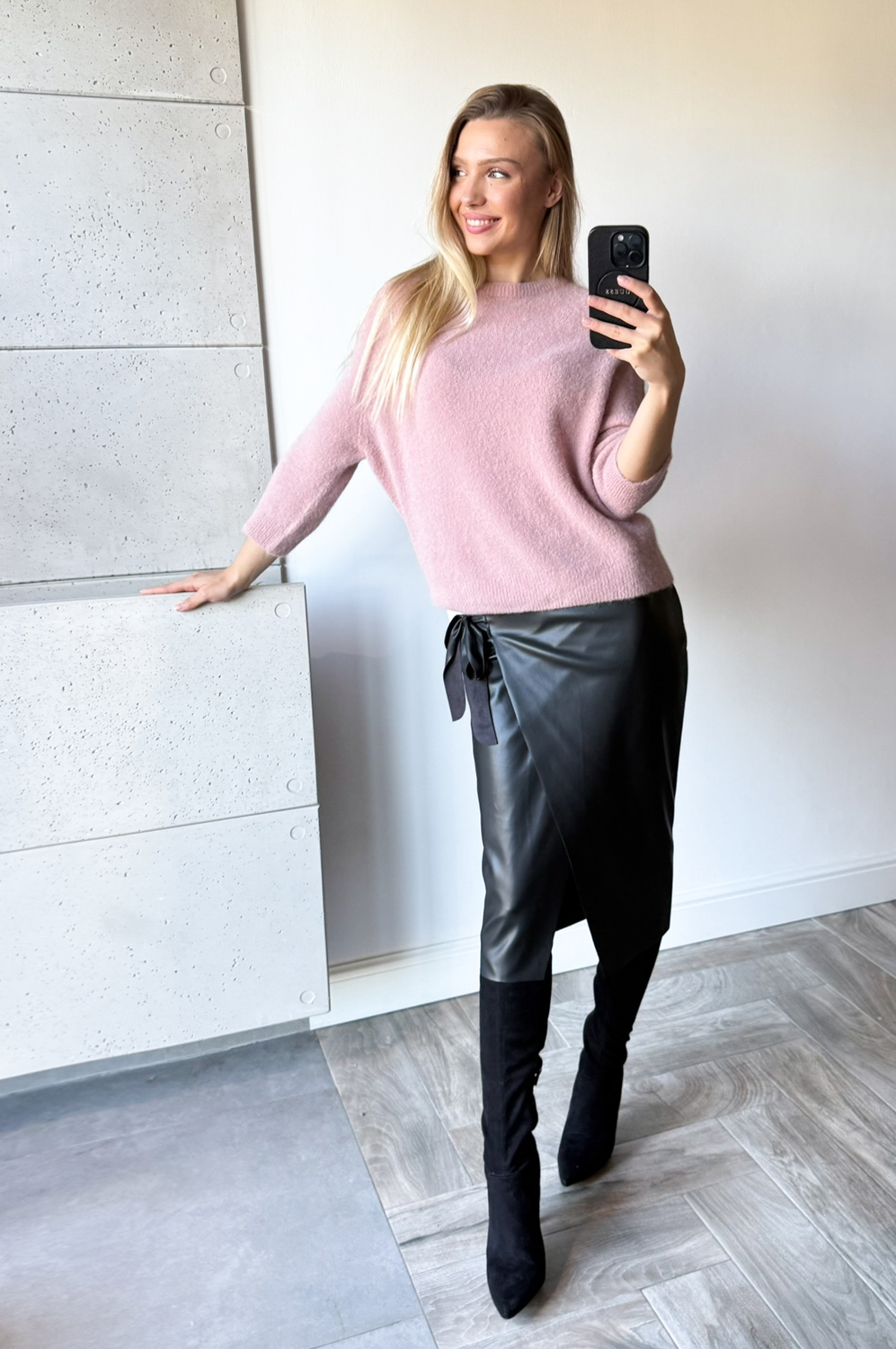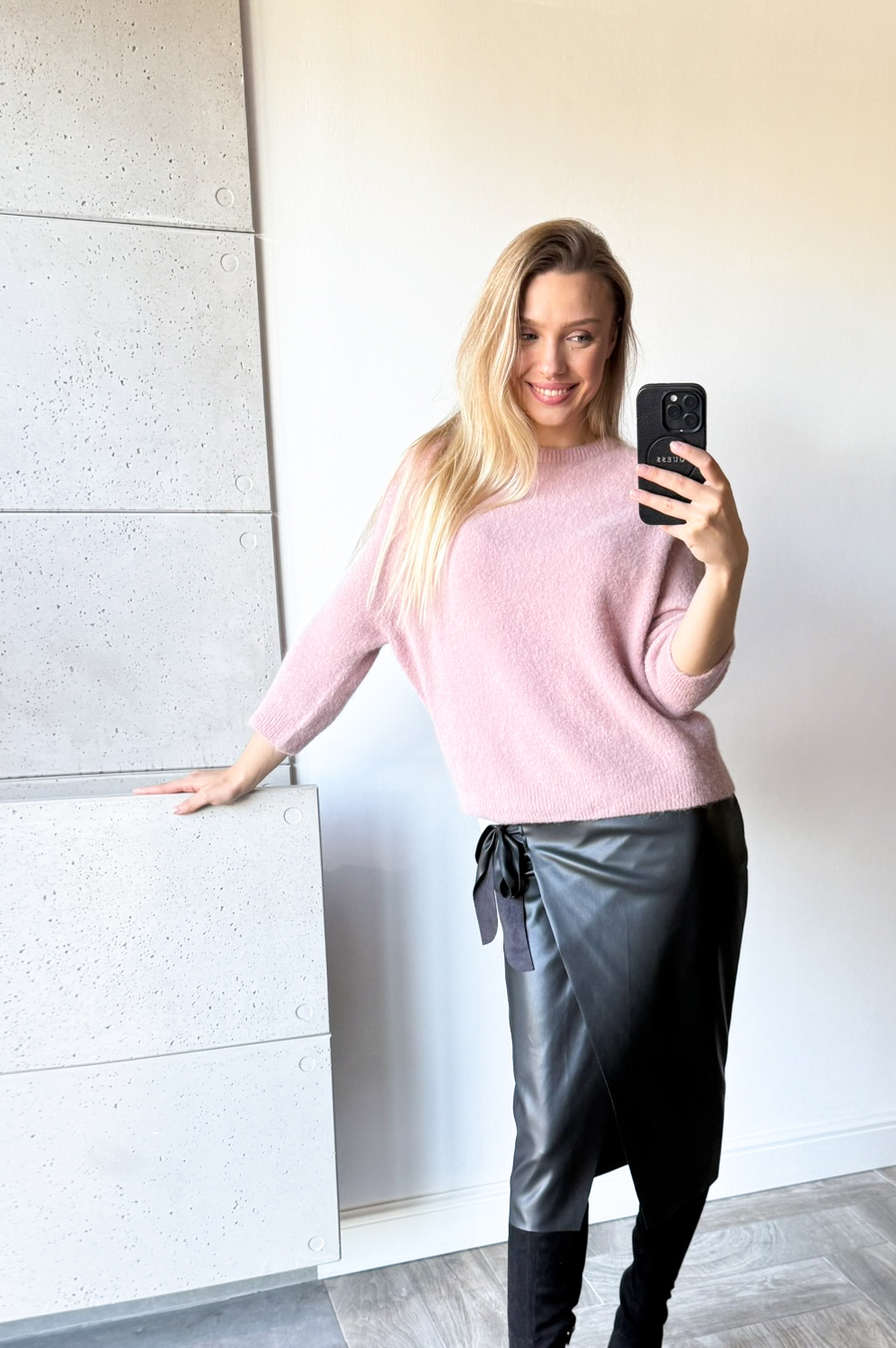 Sweterek BABY ALPAKA 3/4 pudrowy róż179.00 zł Najniższa cena towaru, która obowiązywała w okresie 30 dni przed zastosowaniem obniżki: 179.00 zł Opis Ciepły sweterek z baby alpaka, rękaw 3/4. SKŁAD: 30%baby alpaka 19% akryl 10%lana 38%poliamid 3% elastan