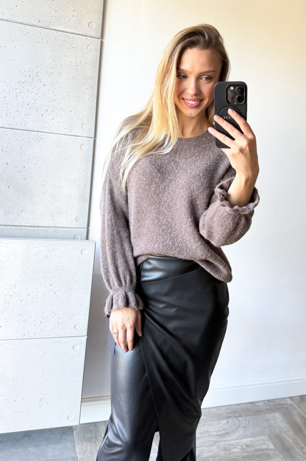 Sweterek BABY ALPAKA frękaw falbanka ango179.00 zł Najniższa cena towaru, która obowiązywała w okresie 30 dni przed zastosowaniem obniżki: 179.00 zł Opis Ciepły sweterek z baby alpaka, rękaw również z falbanką. SKŁAD: 30%baby alpaka 19% akryl 10%lana 38%poliamid 3% elastan