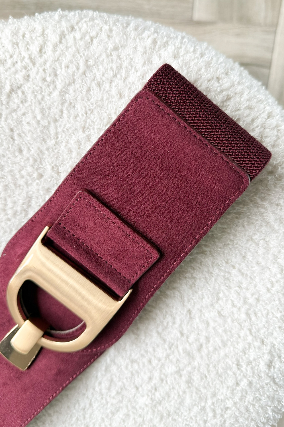 Pasek D ZAMSZ czerwone wino69.00 zł Najniższa cena towaru, która obowiązywała w okresie 30 dni przed zastosowaniem obniżki: 69.00 zł Opis Pasek zamszowy z gumą, uniwerslny rozmiar. Zapinany na złotą klamrę w kształcie litery D. Zwrot ZWROTY