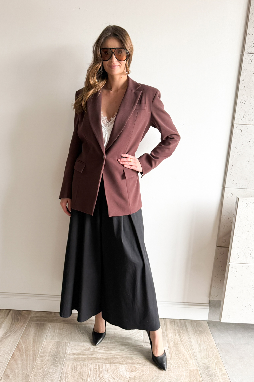 Marynarka łączy w sobie efektowny, nowoczesny krój z eleganckim wykończeniem, tworząc idealny wybór na wyjątkowe okazje. Jej klasyczna forma dodaje swobody, jednocześnie zachowując elegancję i ponadczasowy styl.