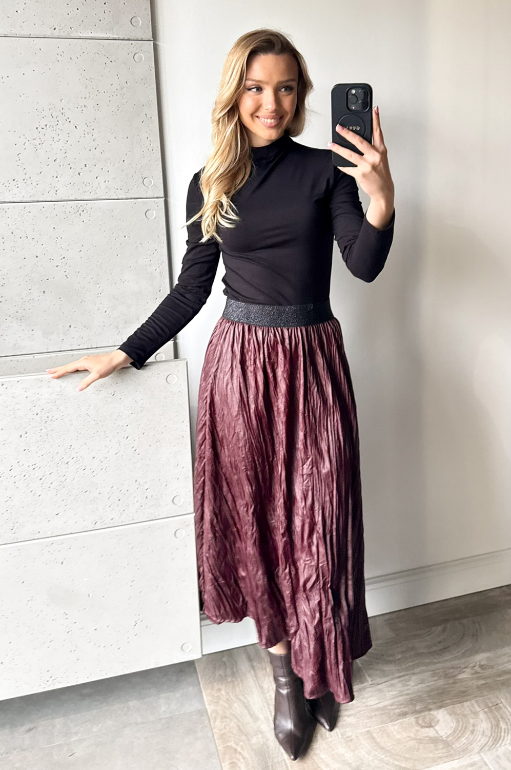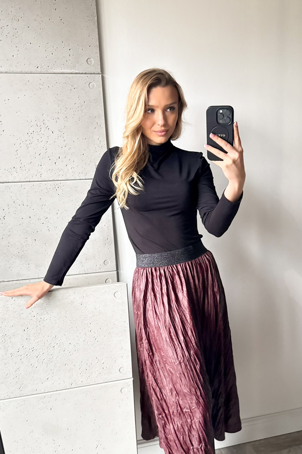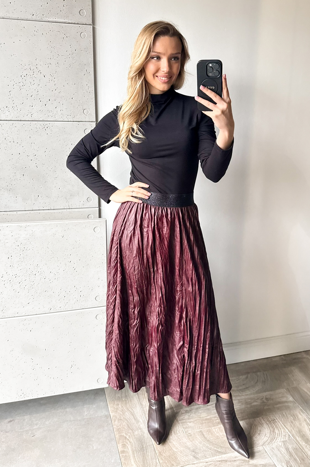 Spódniczka KRESZOWANA CIENKA SKÓRKA czerwone wino