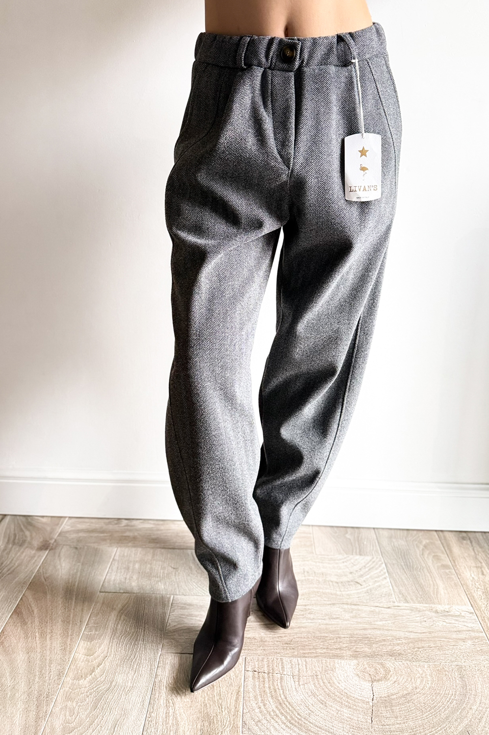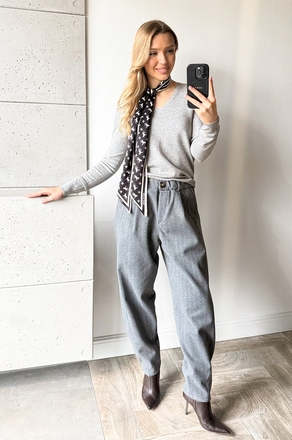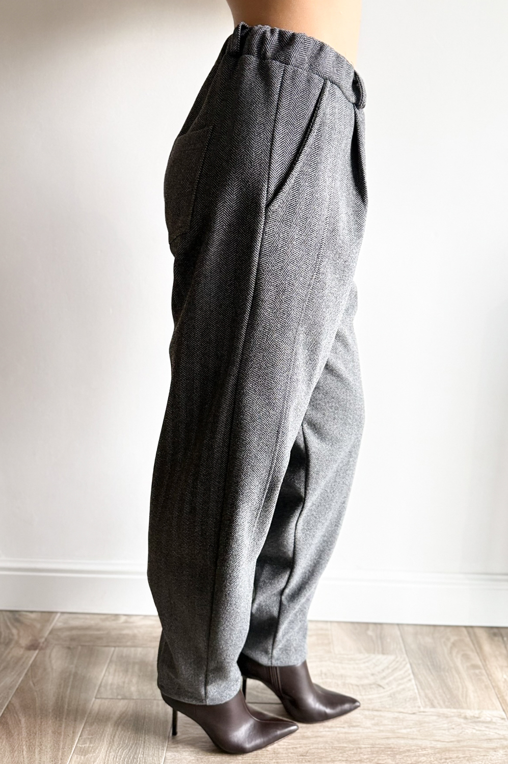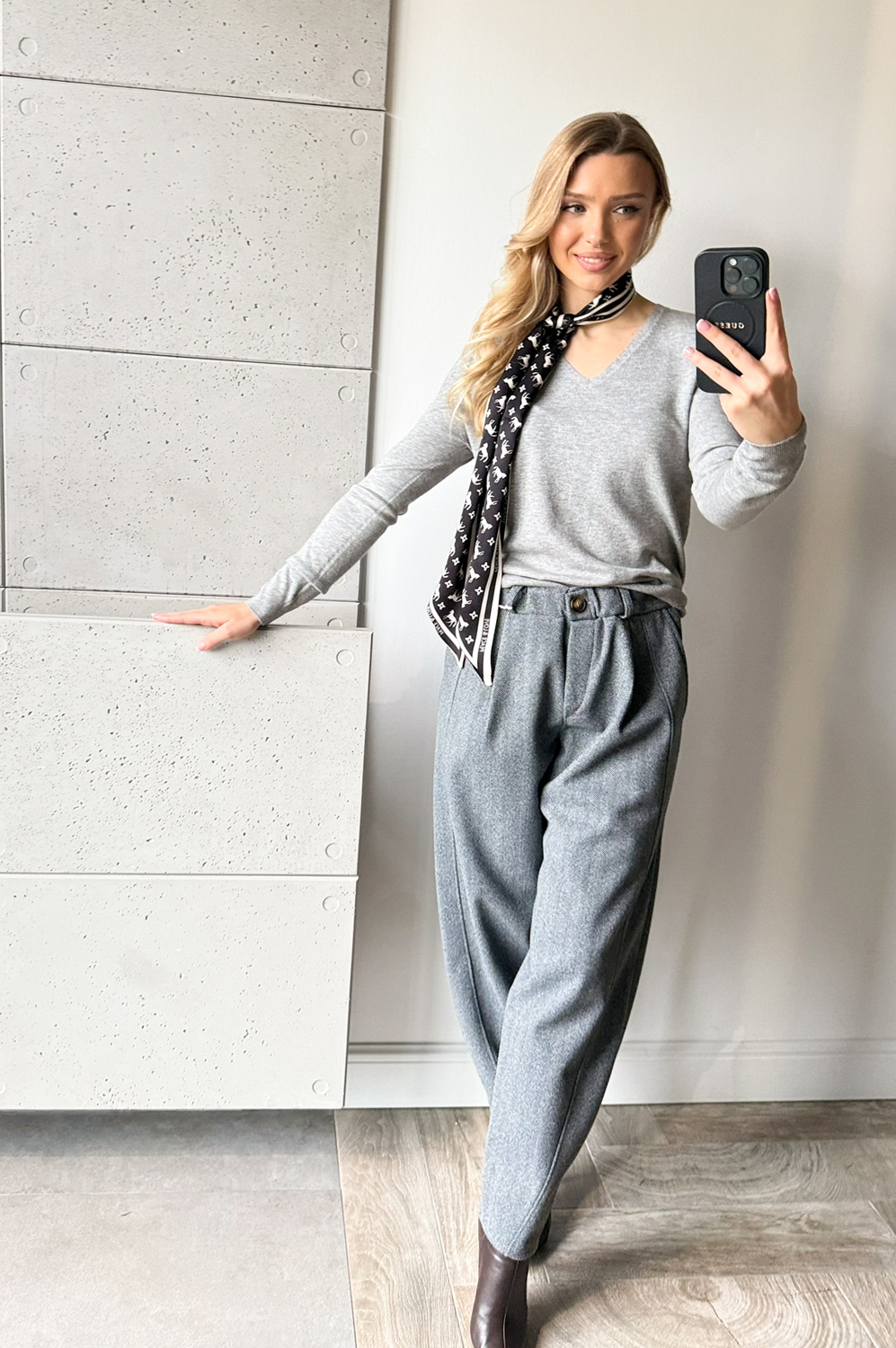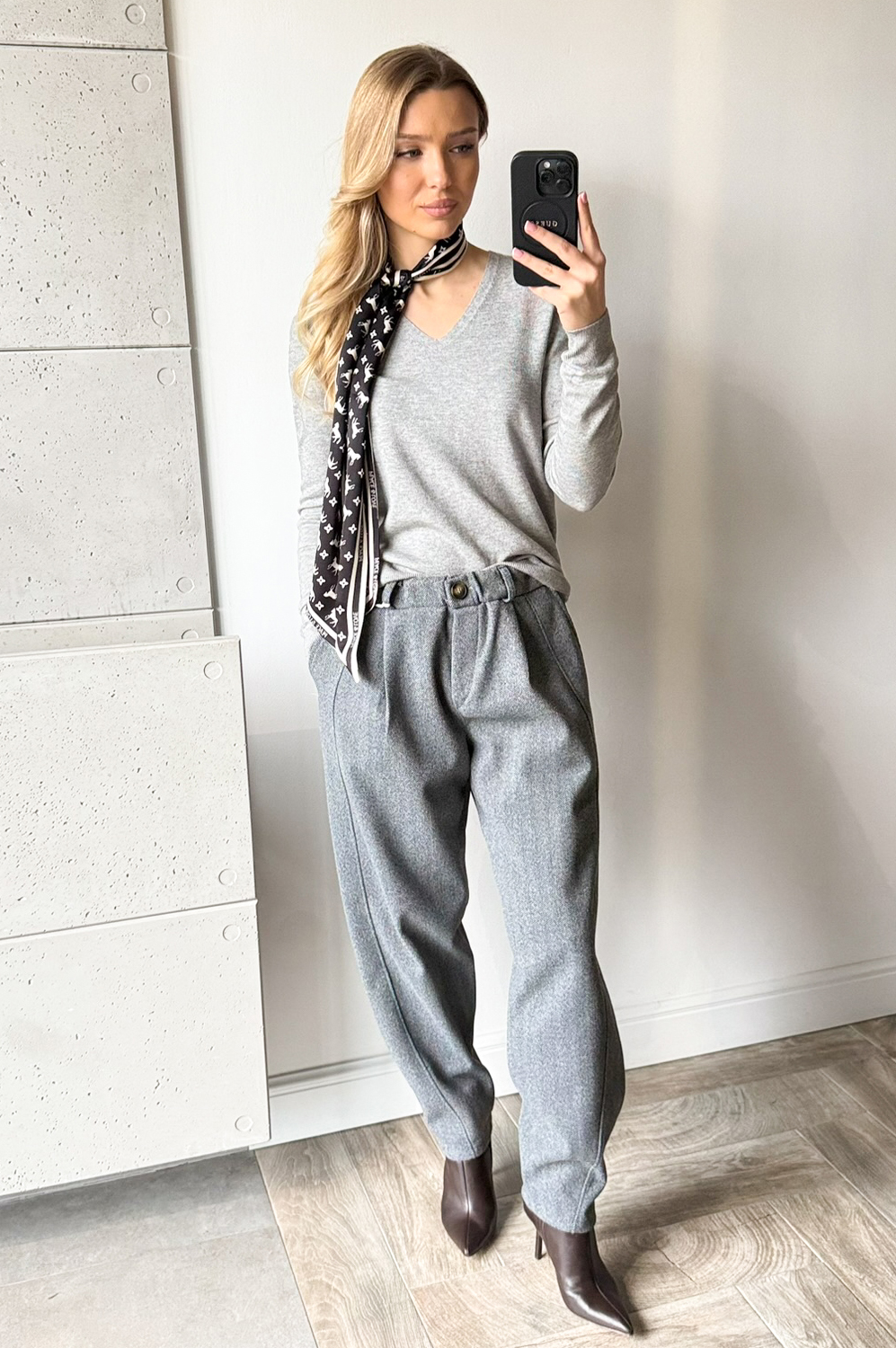 Spodnie YODEŁKA SZARA159.00 zł Najniższa cena towaru, która obowiązywała w okresie 30 dni przed zastosowaniem obniżki: 159.00 zł Opis Spodnie wykonane z grubszej dzianiny w jodełkę. SKŁAD: 95 % wiskoza , 32% elastan