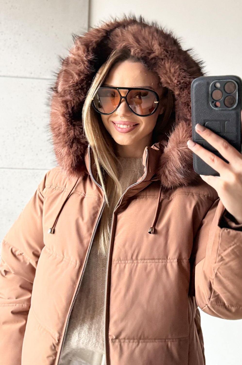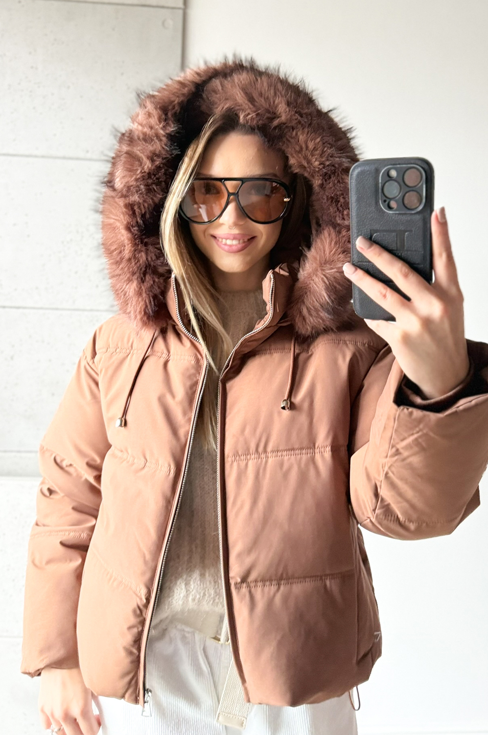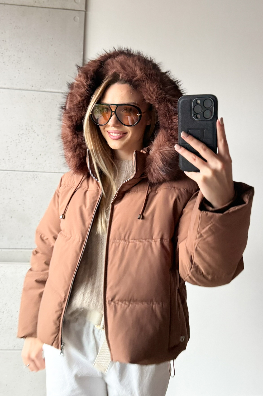 Kurtka KARMEL HOOD259.00 zł Najniższa cena towaru, która obowiązywała w okresie 30 dni przed zastosowaniem obniżki: 259.00 zł Opis Kurtka średniej długości zapinana na zamek z dużym kapturem z futerkiem. Ściągacze wszyte w rękawy. Kieszenie zapinane na zamki. Dół ściągany na troczki ze stoperami. WYMIARY: Rozmarówka wypada klasycznie. SKŁAD: 100% poliester
