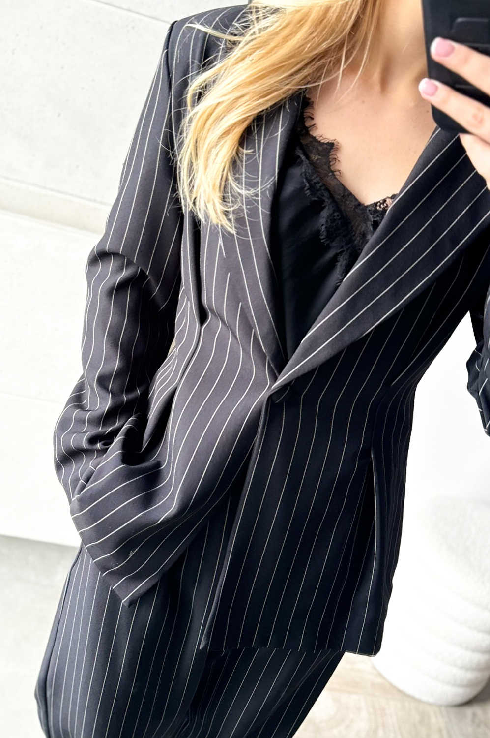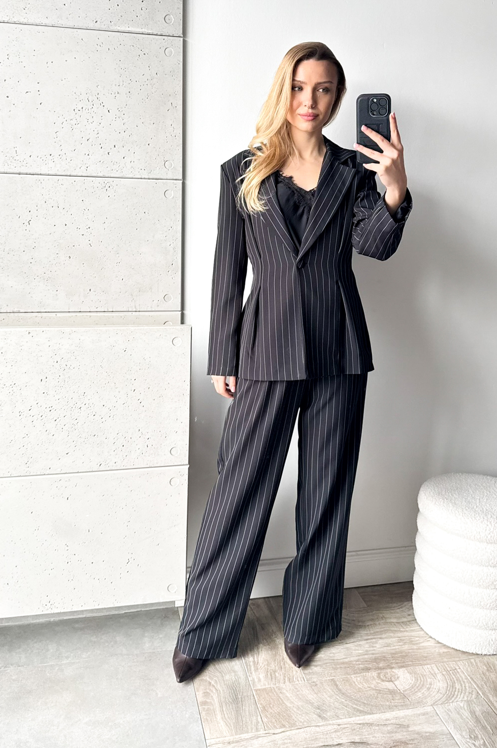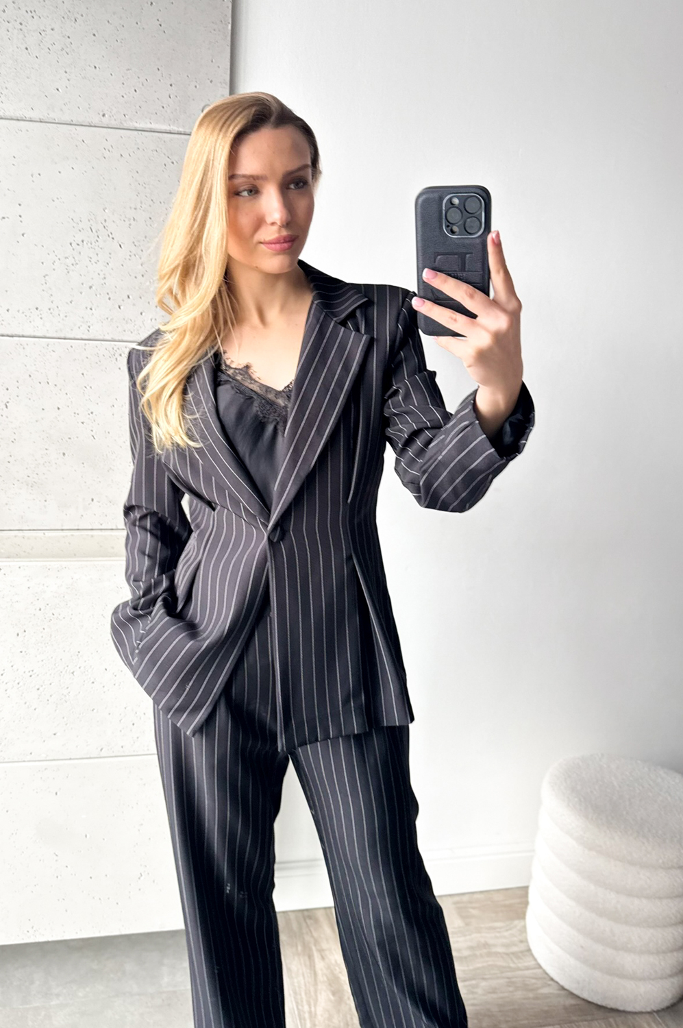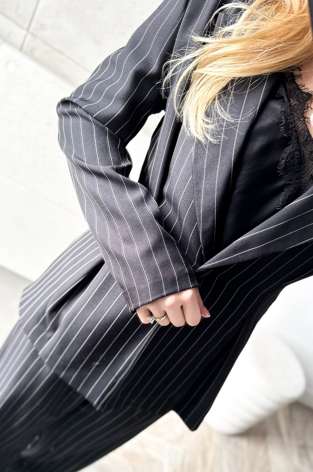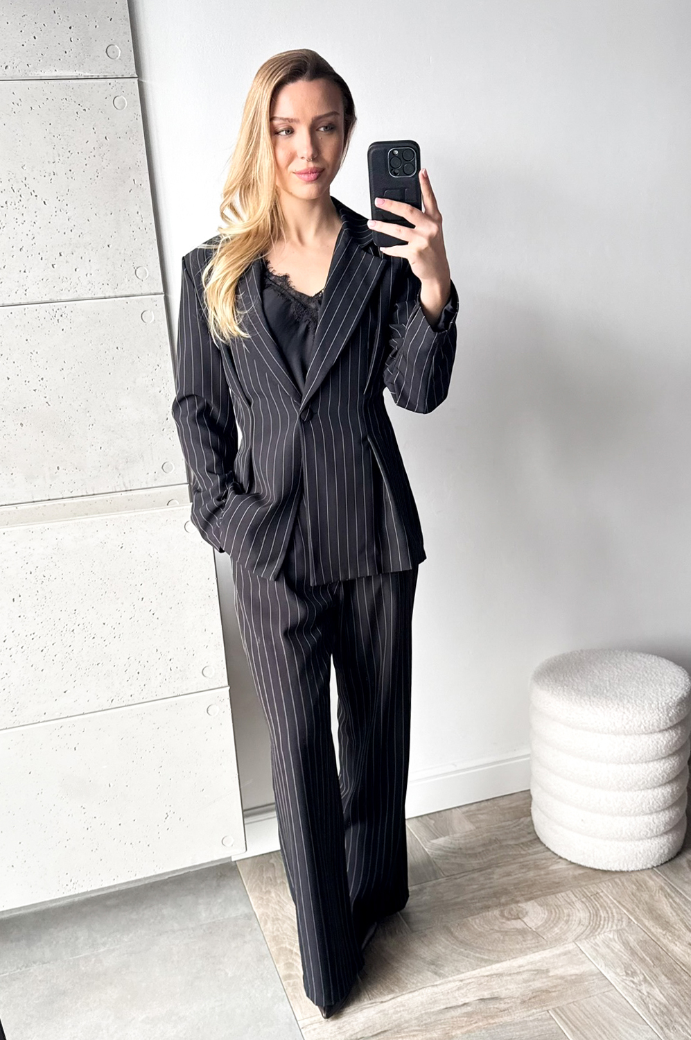 Garnitur TALIOWANY W PRĄŻEK czarny159.00 zł Najniższa cena towaru, która obowiązywała w okresie 30 dni przed zastosowaniem obniżki: 419.00 zł Opis Kalsyczny taliowany garnitur. Spodnie z prostą nogawką, po bokach kieszenie. ZASADY KONSERWACJI: PRAĆ W 30 STOPNIACH.