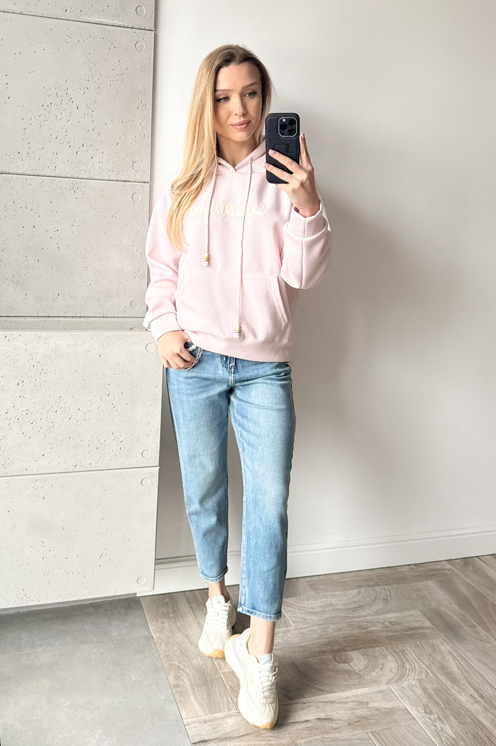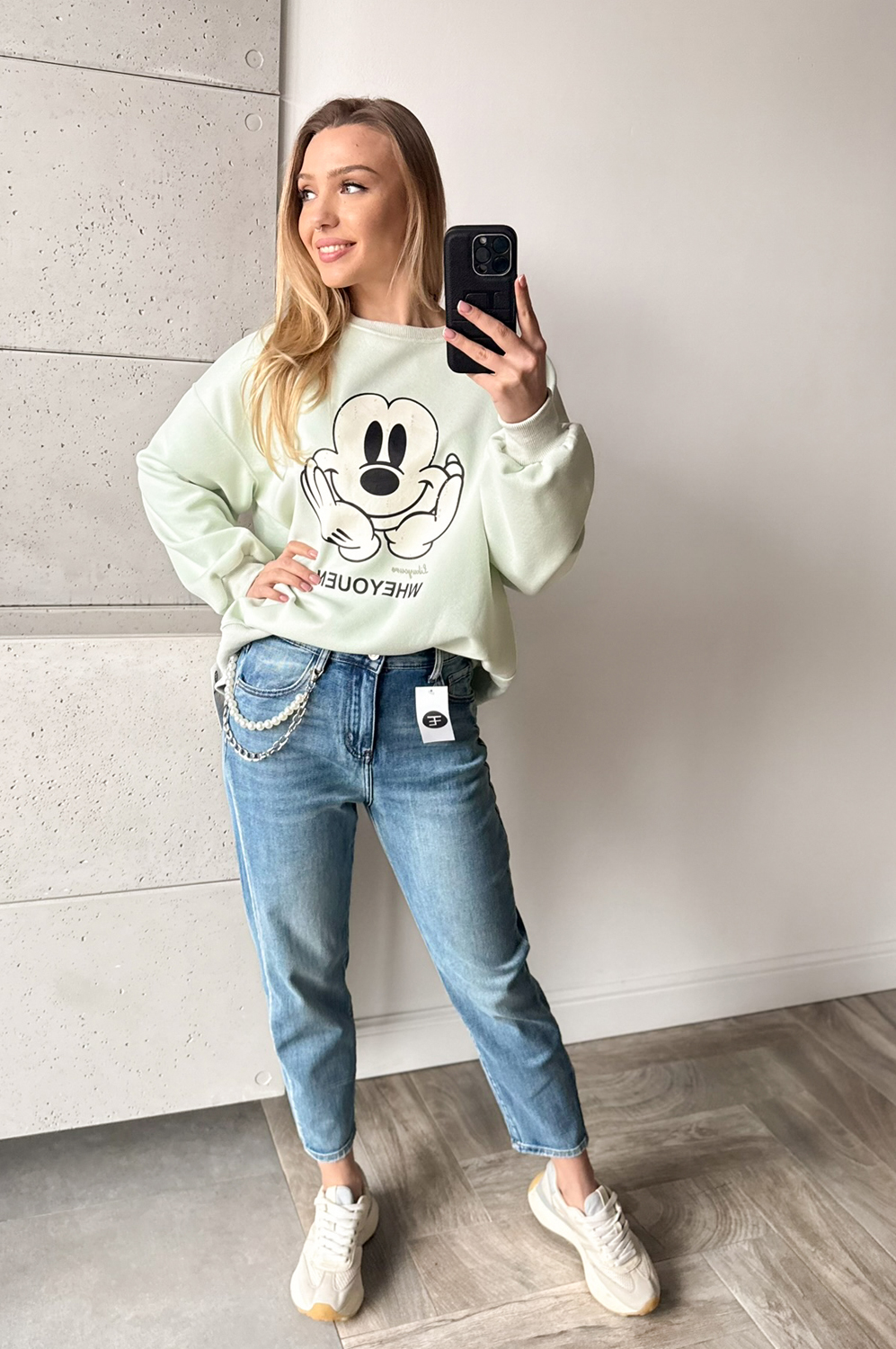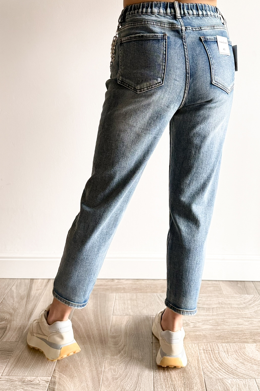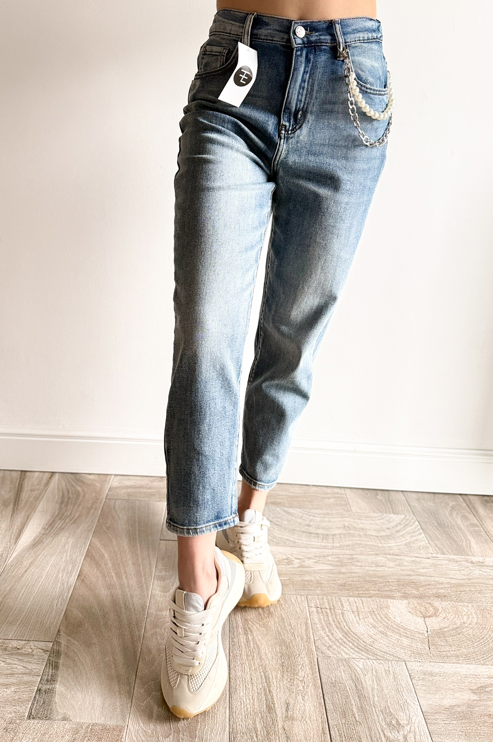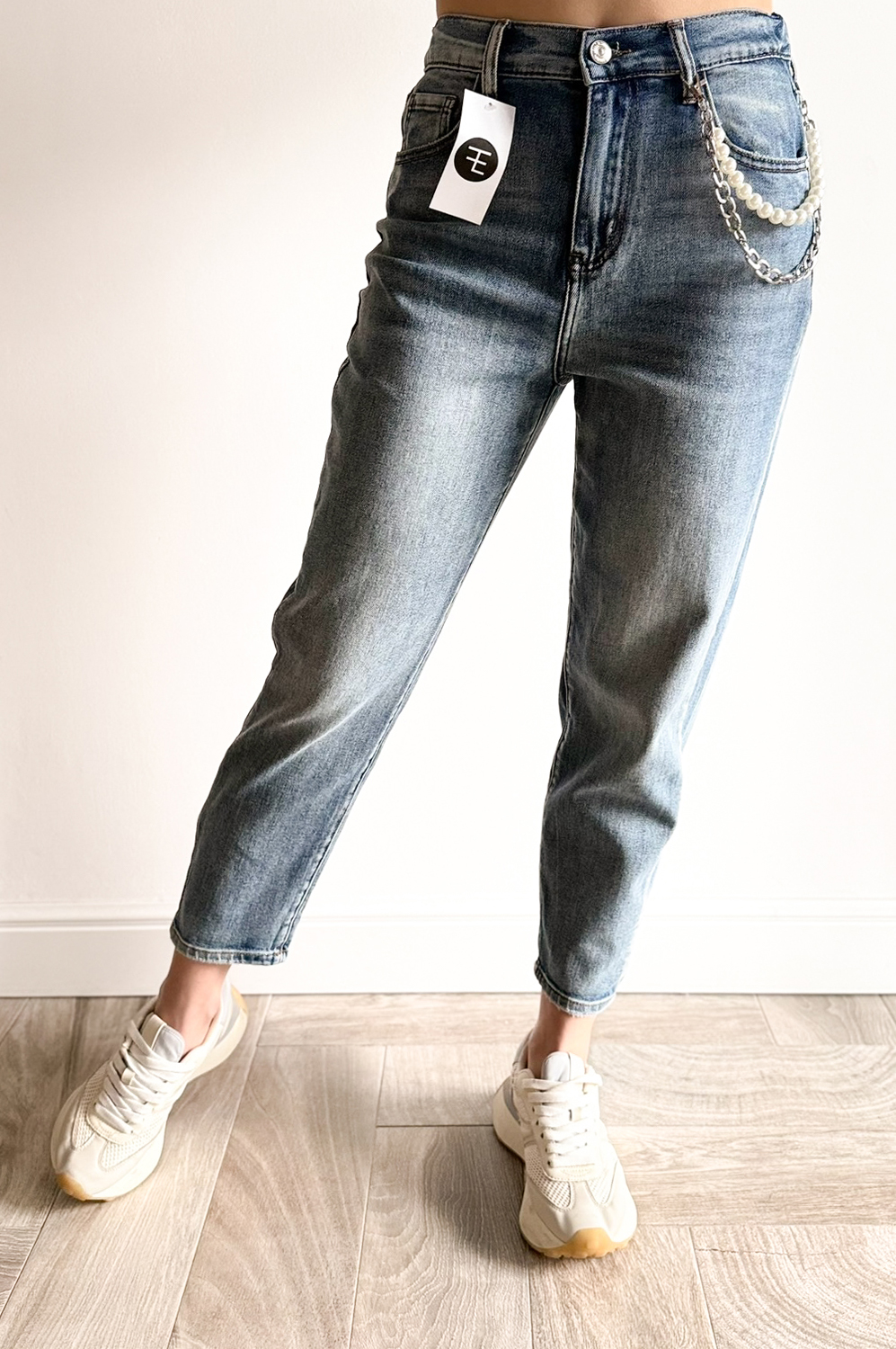 Spodnie JEANS Z PERŁĄ179.00 zł Najniższa cena towaru, która obowiązywała w okresie 30 dni przed zastosowaniem obniżki: 179.00 zł Opis Spodnie o modnym kroju balonowym z szerszą nogawką, łądnie modelujące figurę, wykonane z miękkiego superelastycznego jeansu. Wyższe w stanie. Łańcuszek z perłami odpinany. WYMIARY: