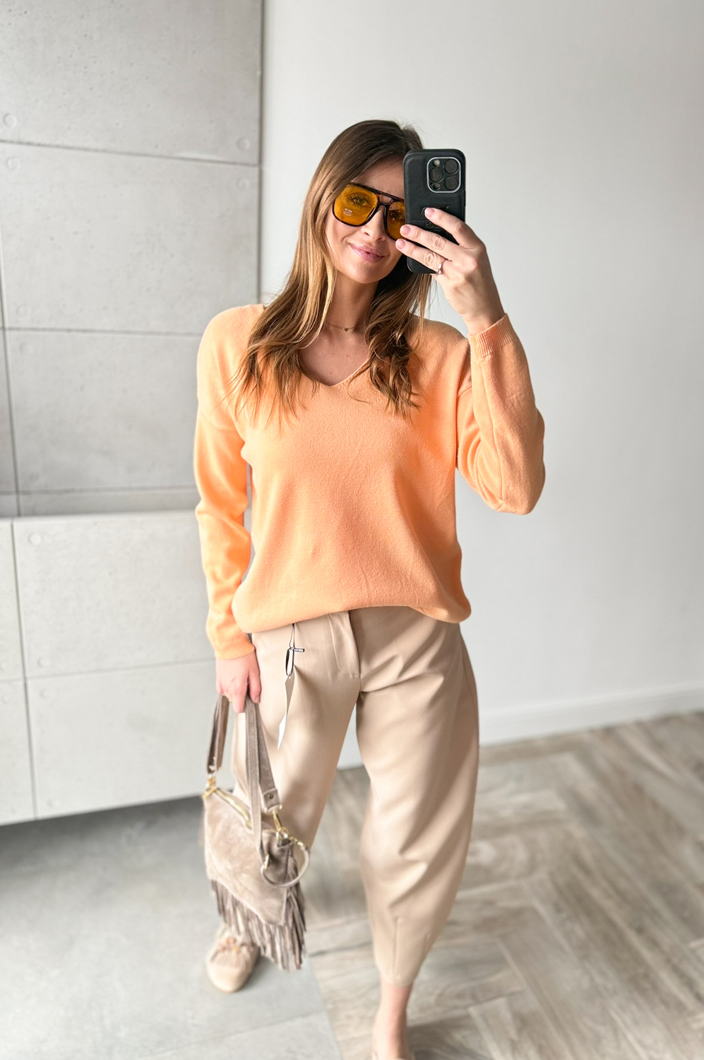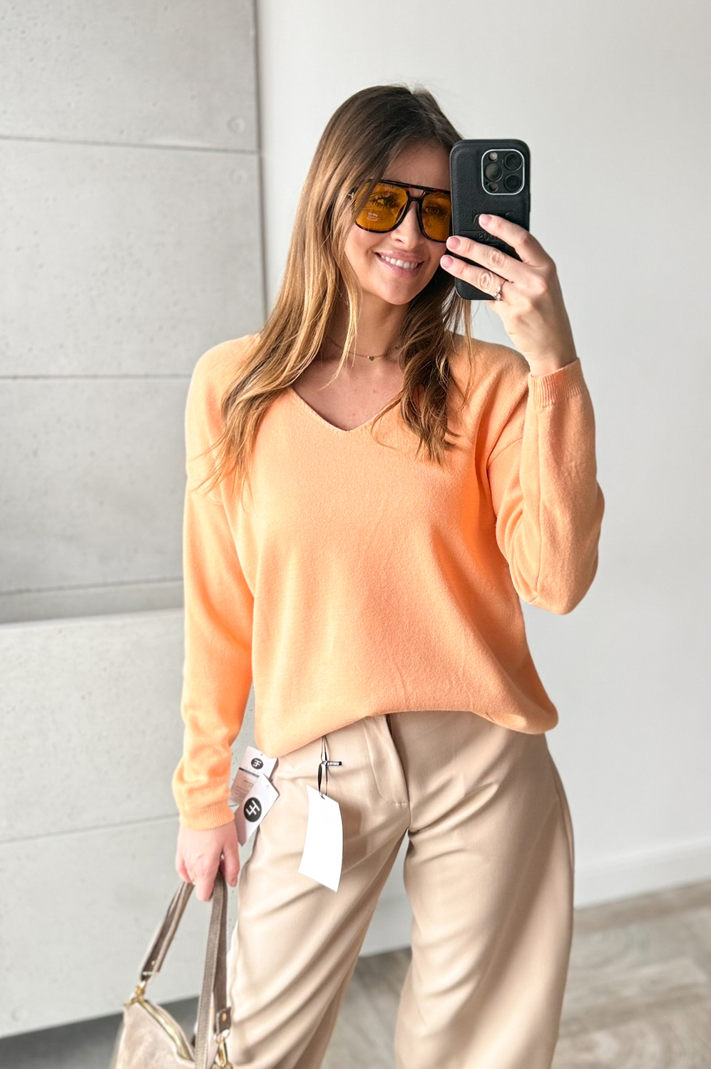 Sweterek BASIC SZPIC brzoskwinia111.20 zł Najniższa cena towaru, która obowiązywała w okresie 30 dni przed zastosowaniem obniżki: 139.00 zł Opis Bluzka-sweterek z długim rękawem i dekoltem w szpic. Milutka dla ciała, wyglądająco zjawiskowo i elegancko.