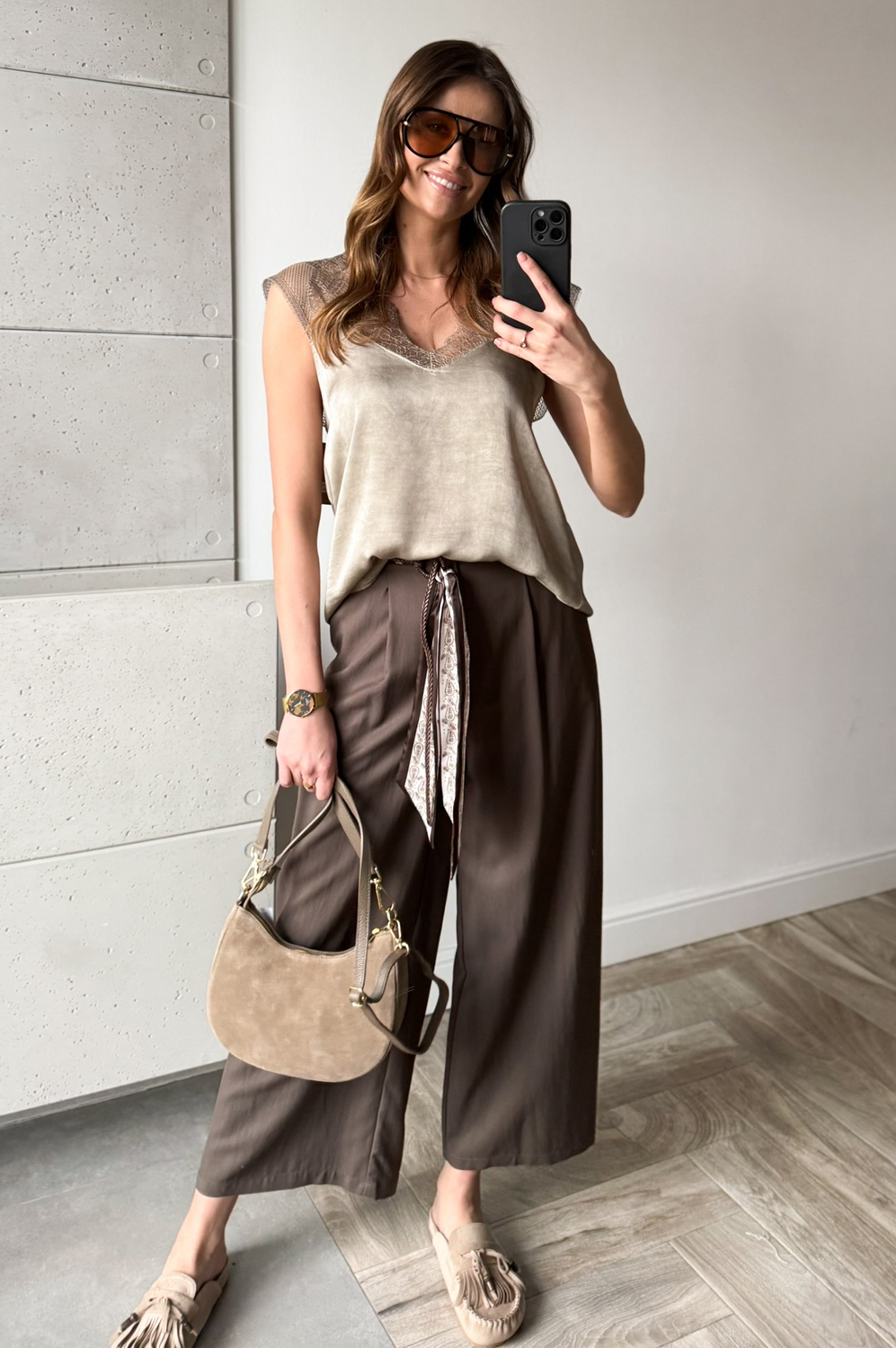 Spodnie PASEK Z ZAWIESZKĄ espresso199.00 zł Najniższa cena towaru, która obowiązywała w okresie 30 dni przed zastosowaniem obniżki: 199.00 zł Opis Proste ,klasyczne spodnie ,w tyle w pasie posiada gumę oraz dodadkowo delikatny paseczek z ozdobną zawieszką satynową WYMIARY: