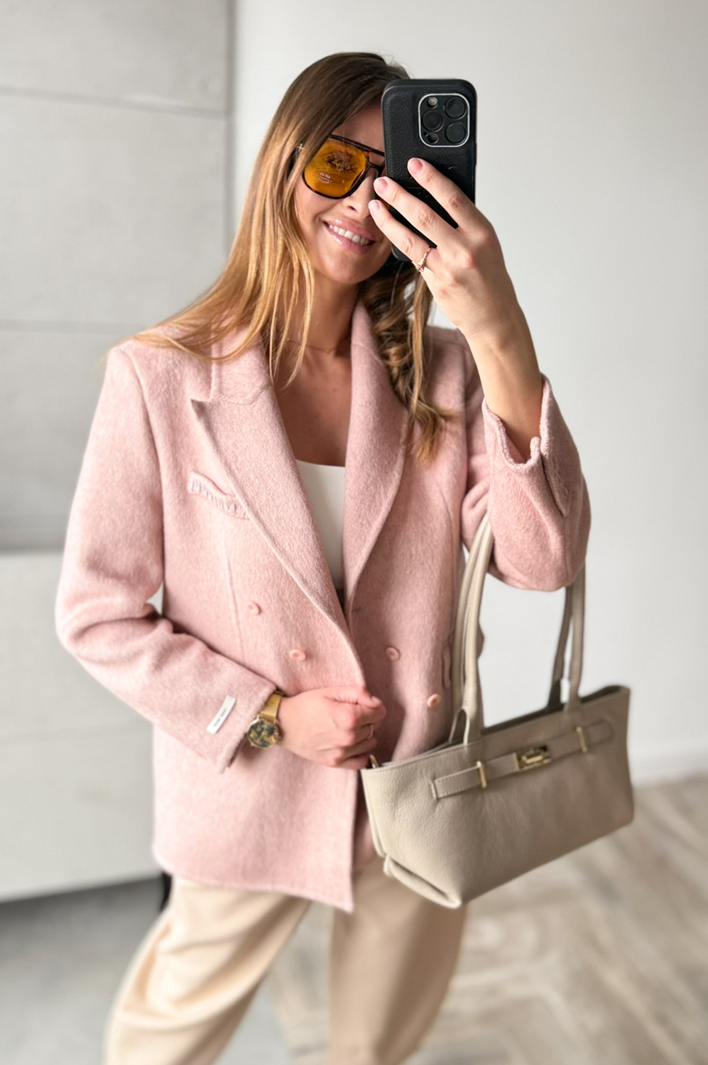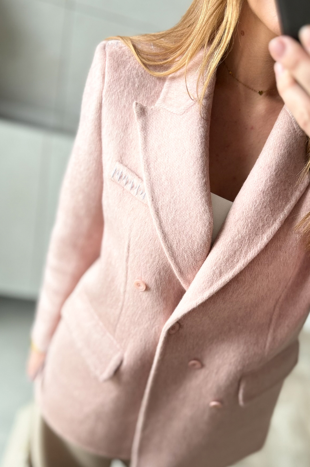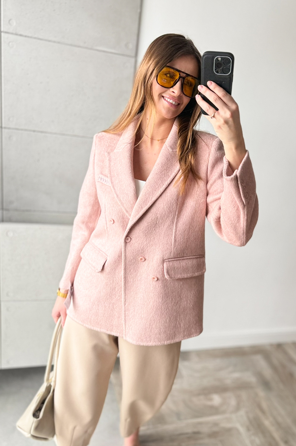 Marynarka WEŁNIANA pudrowy róż351.20 zł Najniższa cena towaru, która obowiązywała w okresie 30 dni przed zastosowaniem obniżki: 439.00 zł Opis Elegancka marynarka, zapinana na guziczki, posiada kieszenie i ozdobną butonierkę. WYMIARY: długość 72,szerokość do 112cm