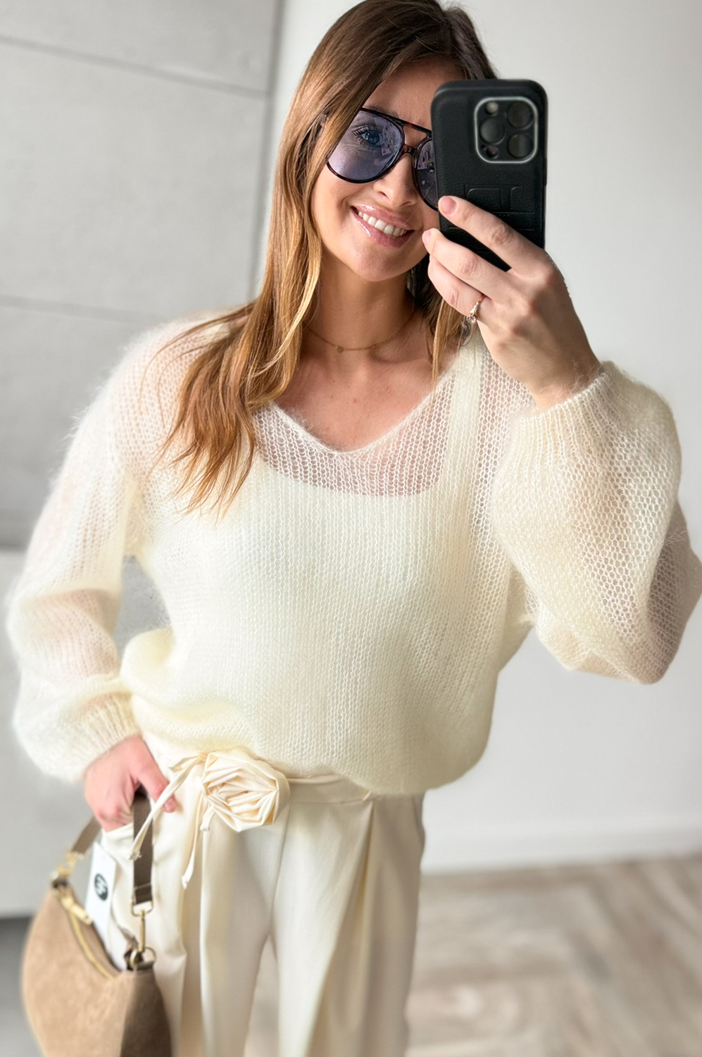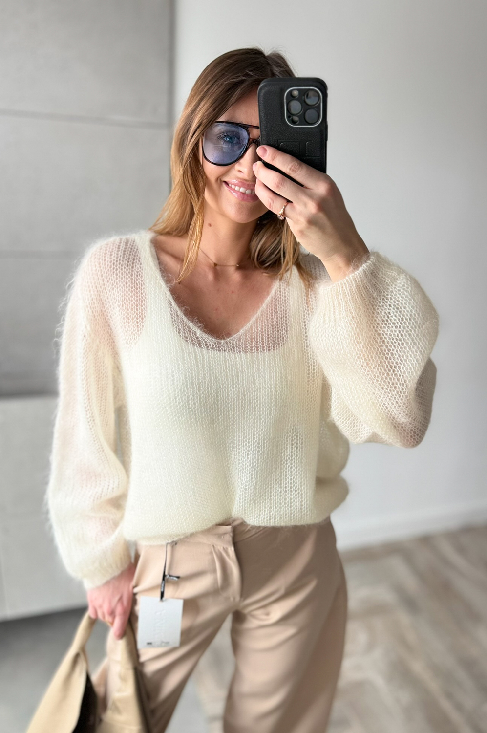 Sweterek MOHER 70% MGIEŁKA SZPIC śmietanka219.00 zł Najniższa cena towaru, która obowiązywała w okresie 30 dni przed zastosowaniem obniżki: 219.00 zł Opis Sweterek mgiełka z moherku delikatny i miękki w chwycie, nie drapie.
