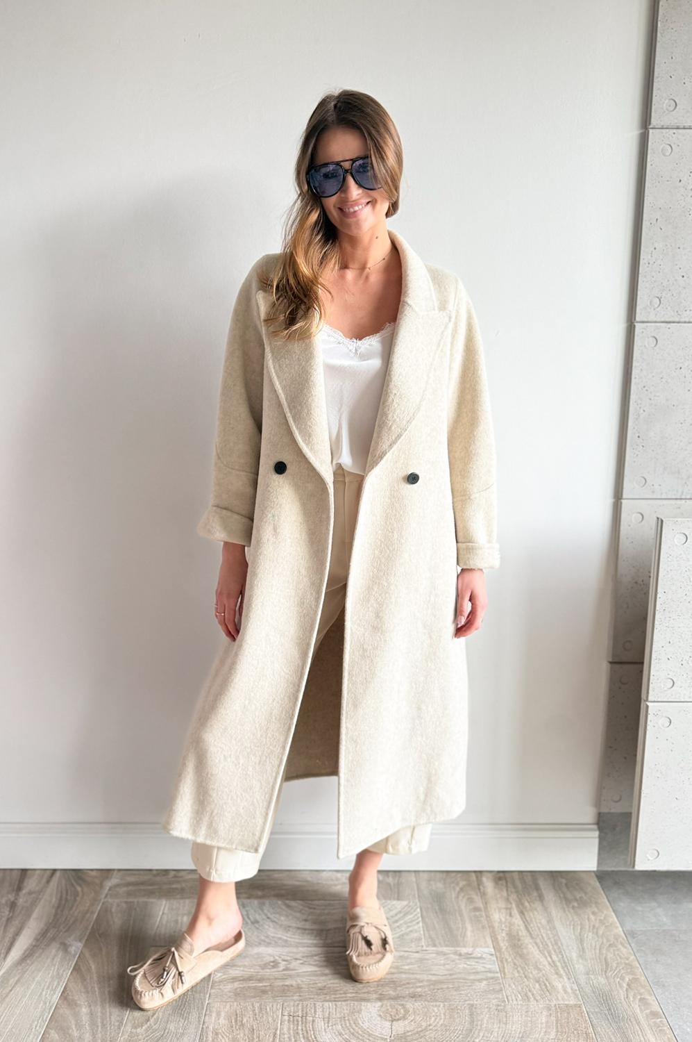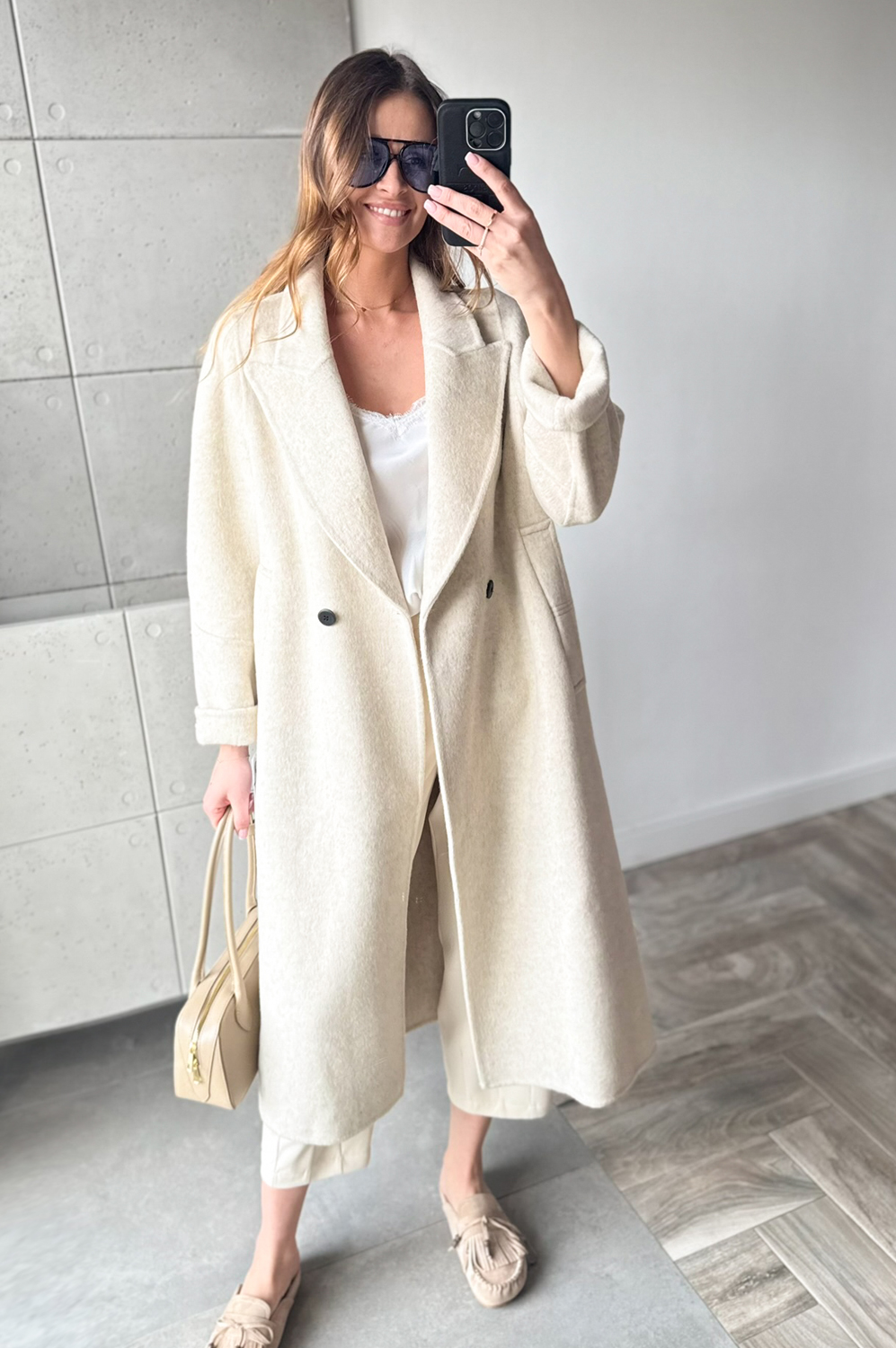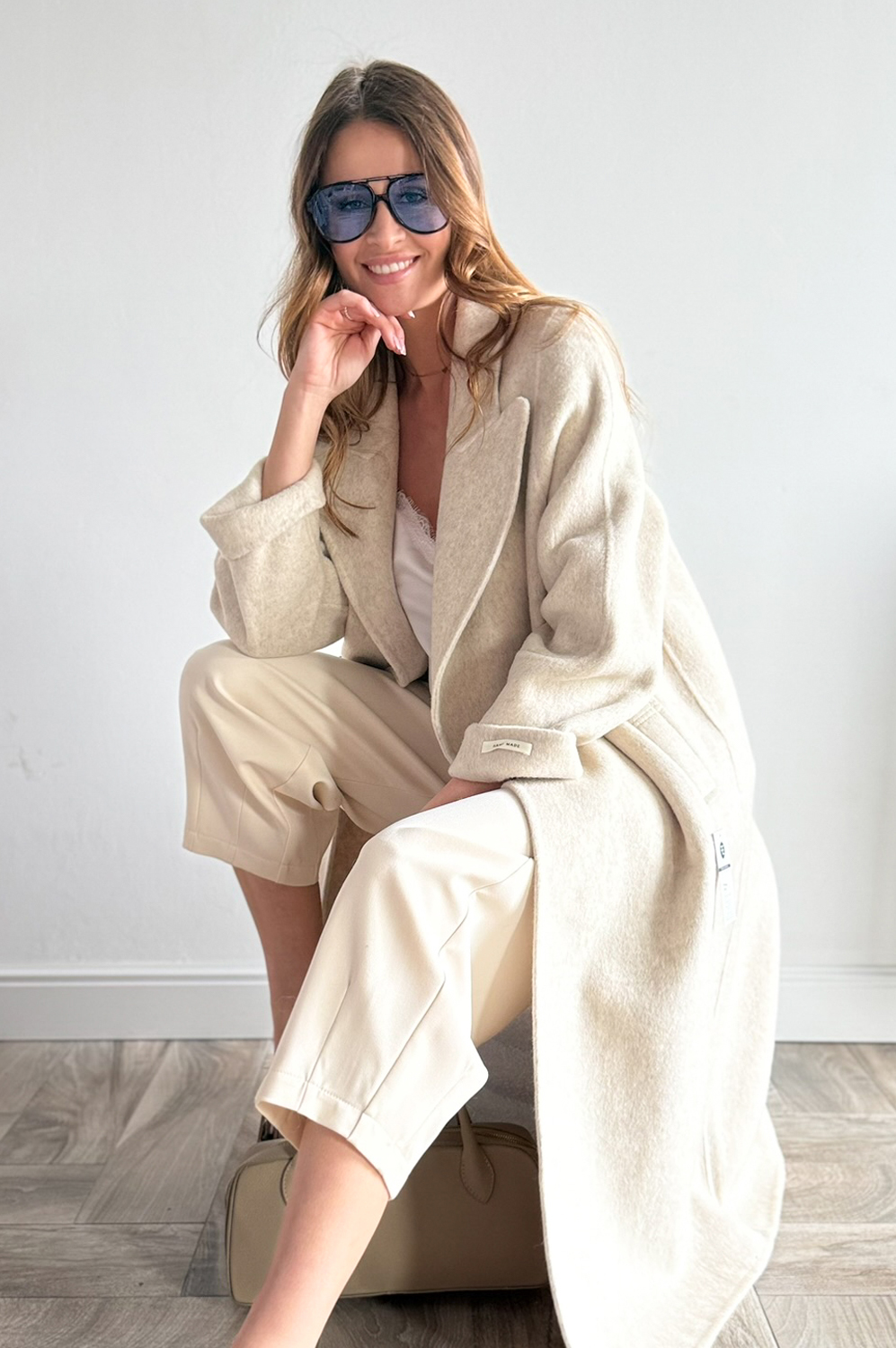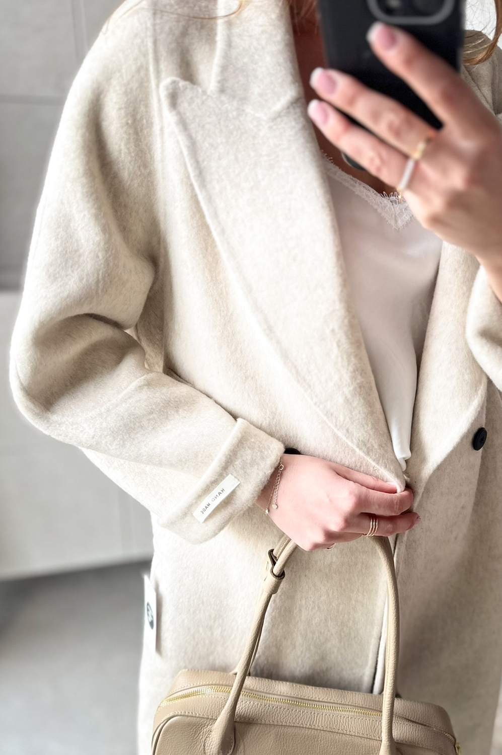 Płaszcz WOOL 73% LONG beż499.00 zł Najniższa cena towaru, która obowiązywała w okresie 30 dni przed zastosowaniem obniżki: 499.00 zł Opis Wełniany elegancki płaszcz świetnej jakości, doskonale wykonany. Jakość PREMIUM. Płaszcz jest bez podszewki.