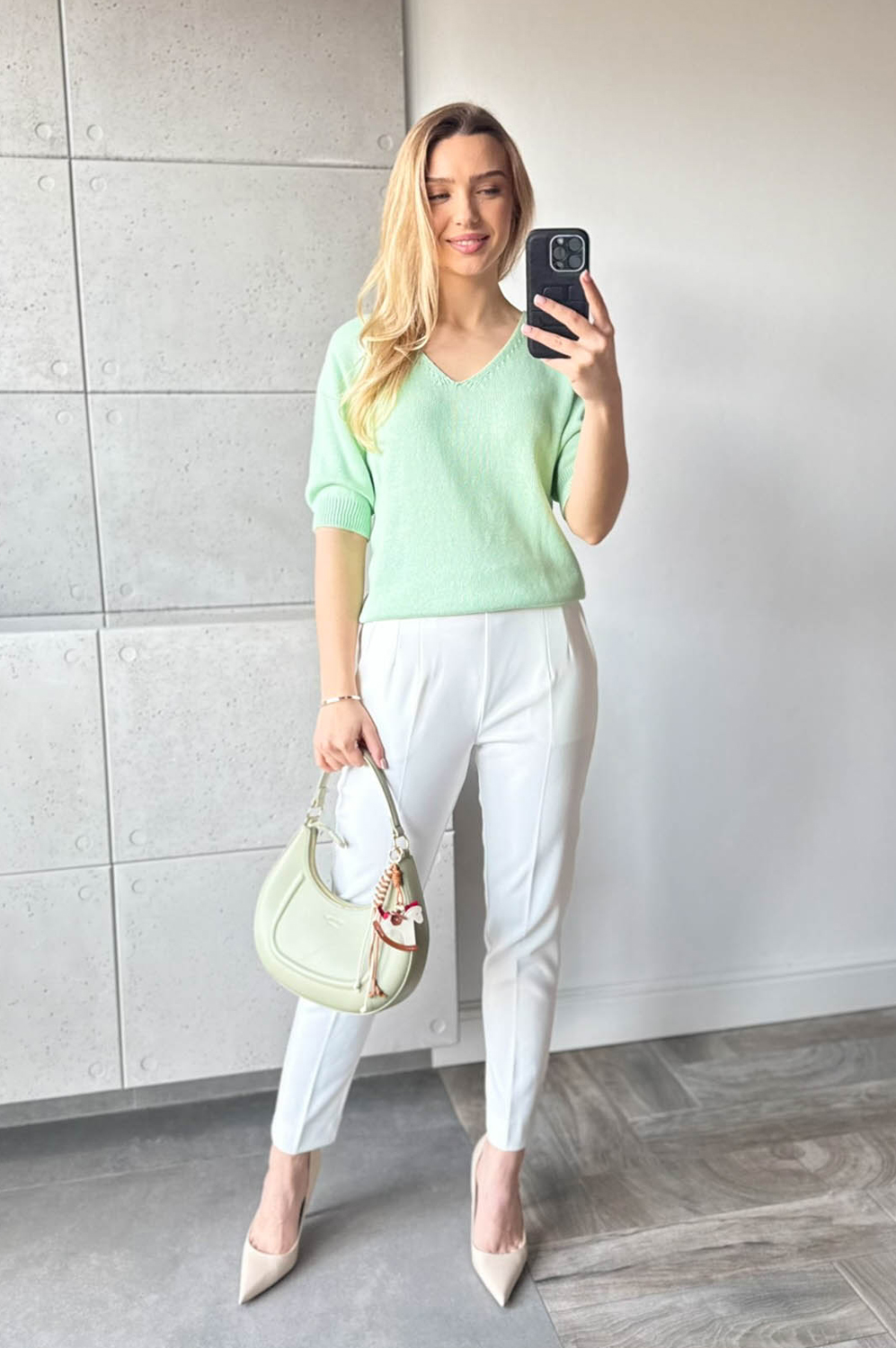 Sweterek COTTON SZPIC pistacja99.00 zł Najniższa cena towaru, która obowiązywała w okresie 30 dni przed zastosowaniem obniżki: 99.00 zł Opis Sweterek raglanowy z krótkim rękawkiem i dekoltem w szpic. Sweterek jest miękki i przyjemny w dotyku. Przewiewny i wykonany z bawełny. WYMIARY: długość: 62 cm, szerokość: 100-106 cm