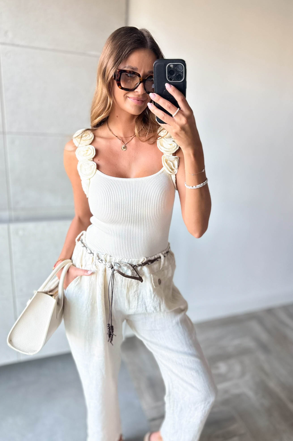 Bluzka KOSZULKA DZIANINA PRĄŻEK RÓŻA139.00 zł Najniższa cena towaru, która obowiązywała w okresie 30 dni przed zastosowaniem obniżki: 139.00 zł Opis Bluzka na ramiączkach z pięknymi różami w delikatny prążek .Idealnie nadaje się do wielu ciekawych stylizacji. WYMIARY: Pasuje na xs/s/m szerokość na płasko 62 cm z elastycznością do 86 cm,długość 56cm.