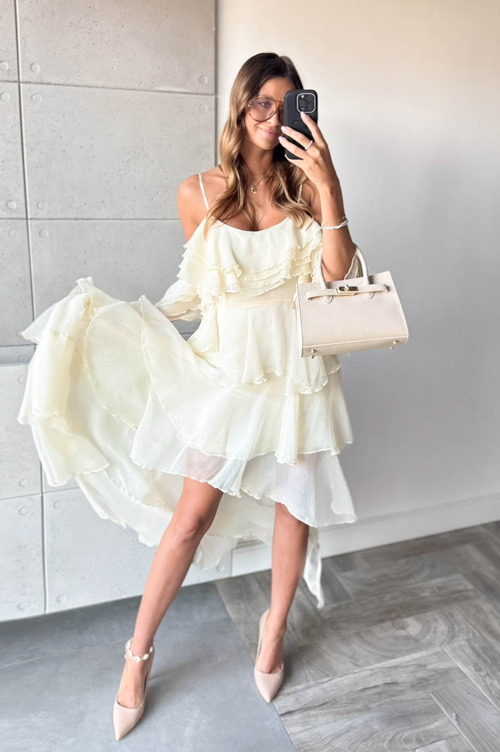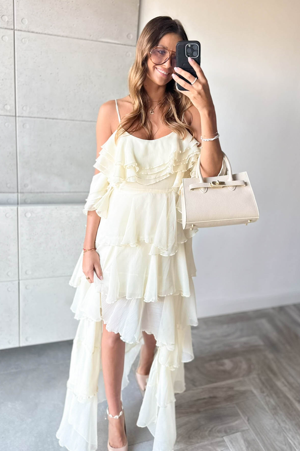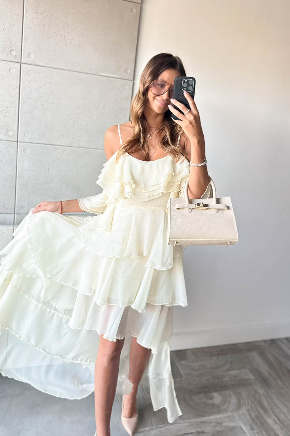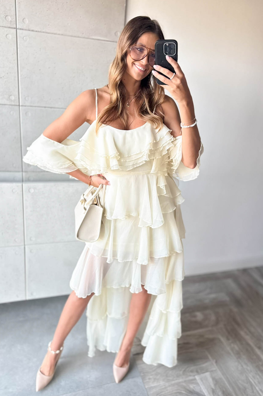 Sukienka HISZPANKA FALBANY ecru269.00 zł Najniższa cena towaru, która obowiązywała w okresie 30 dni przed zastosowaniem obniżki: 269.00 zł Opis Sukienka hiszpanka z falbanami. Wykonana z tkaniny. Zapinanana na kryty zamek z boku. SKŁAD : 100% POLIESTER