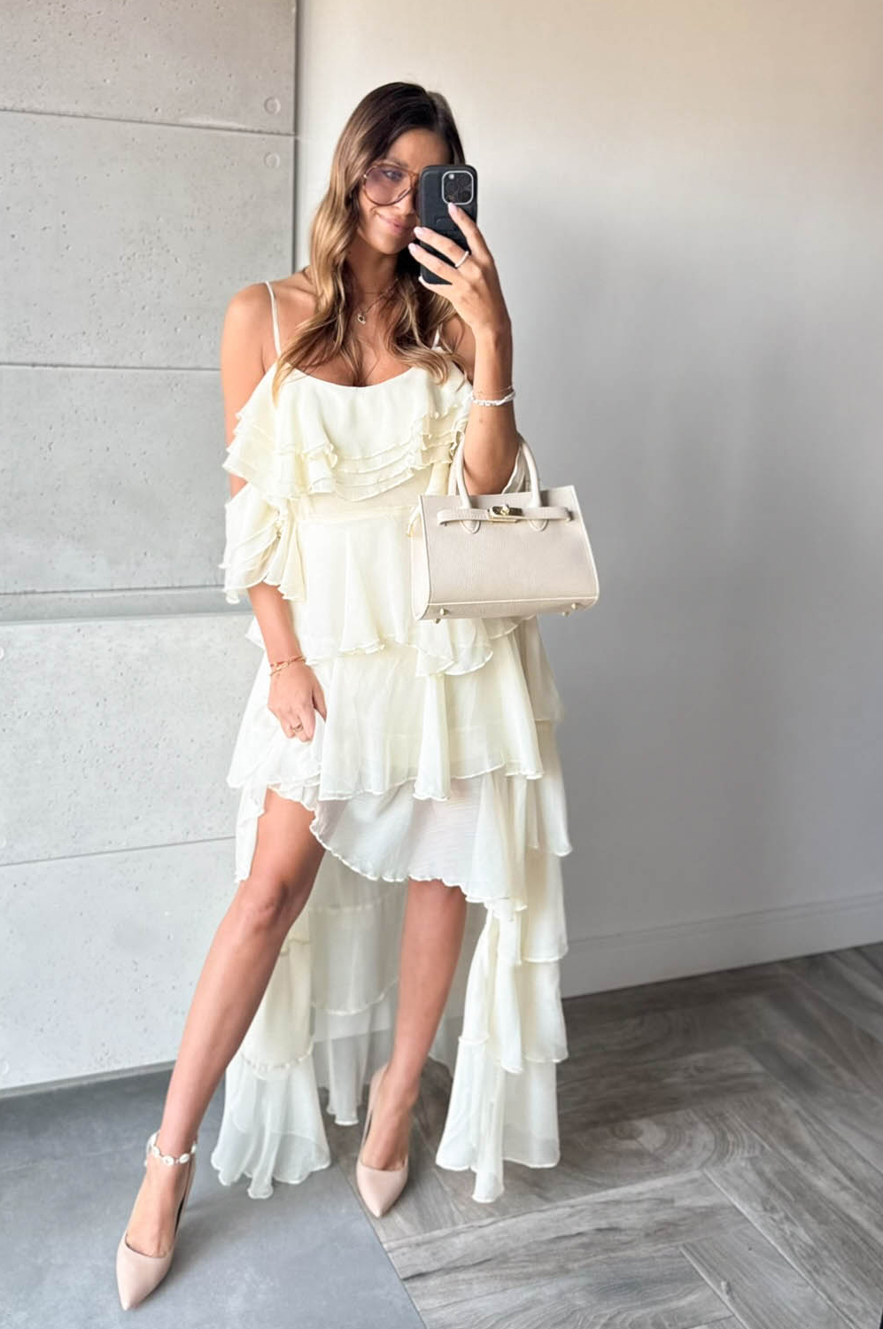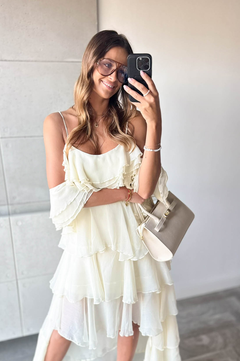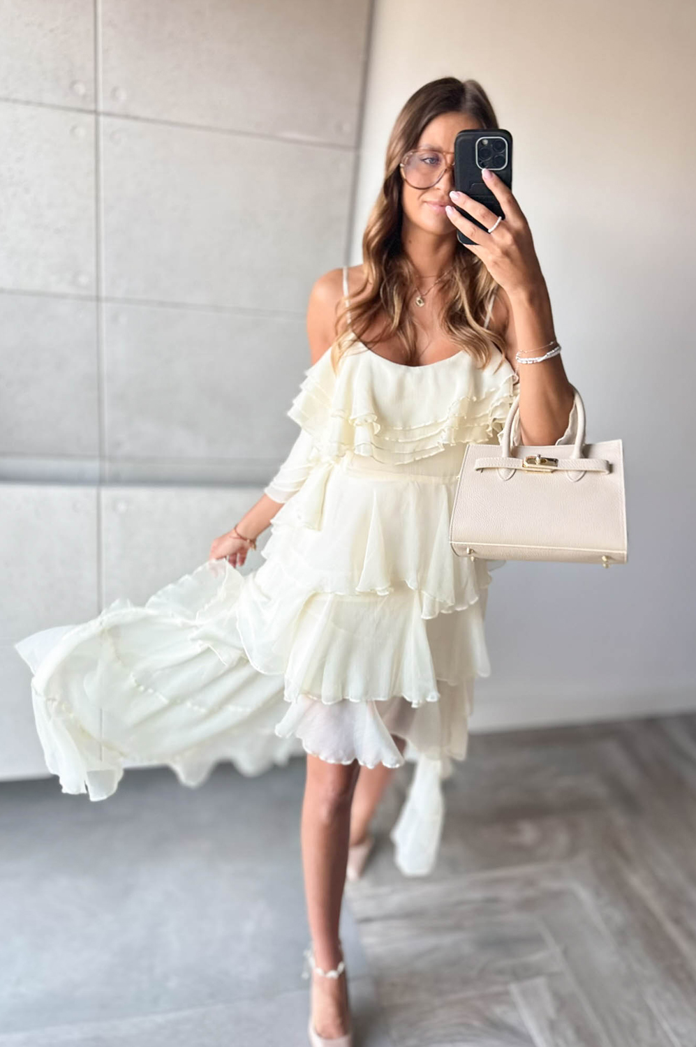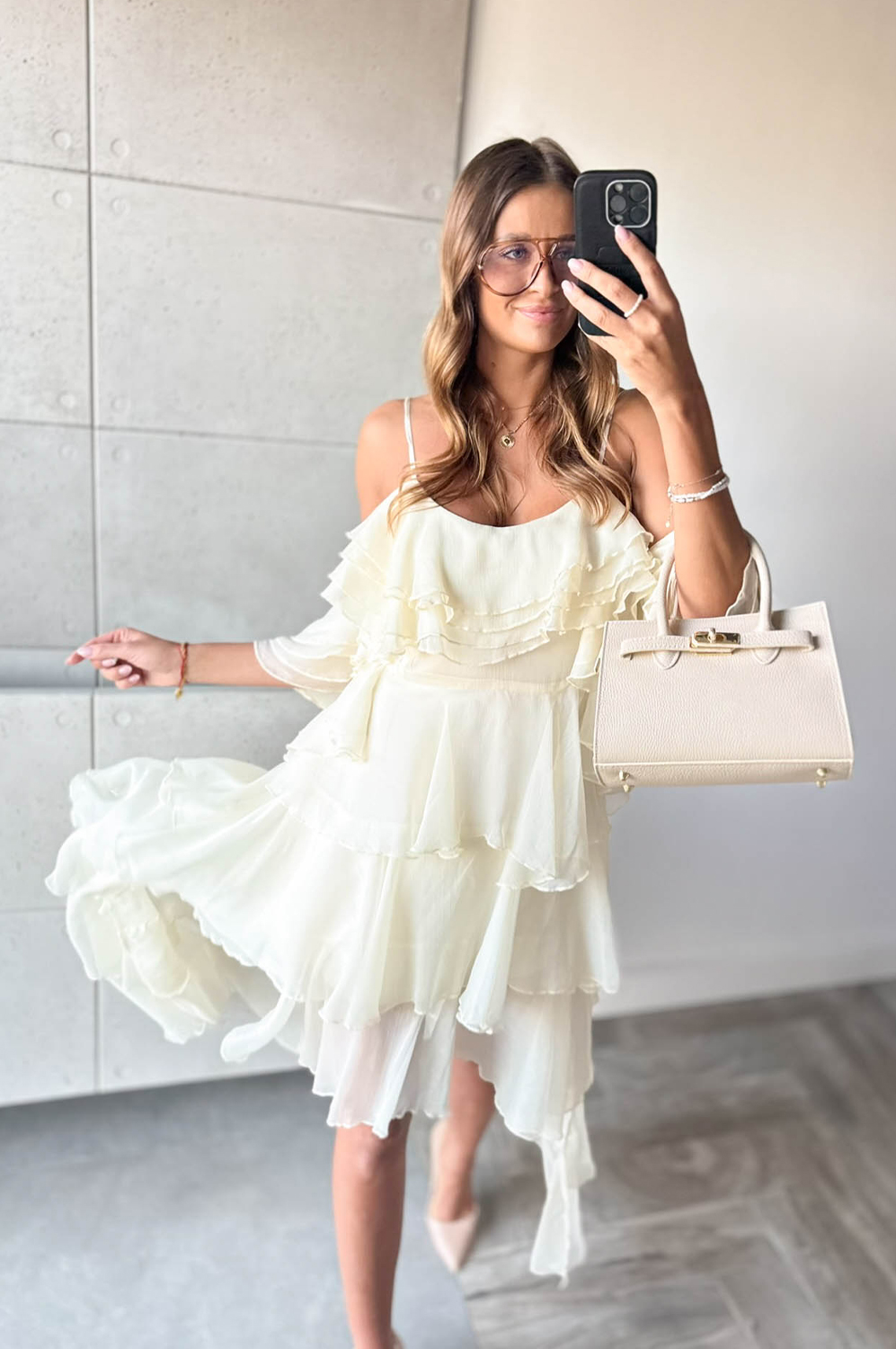 Sukienka HISZPANKA FALBANY ecru269.00 zł Najniższa cena towaru, która obowiązywała w okresie 30 dni przed zastosowaniem obniżki: 269.00 zł Opis Sukienka hiszpanka z falbanami. Wykonana z tkaniny. Zapinanana na kryty zamek z boku. SKŁAD : 100% POLIESTER