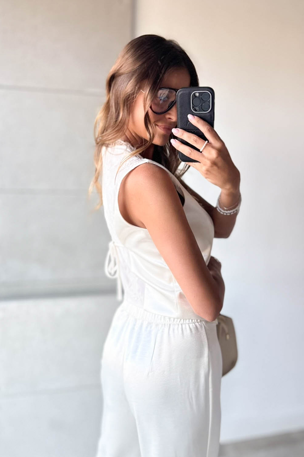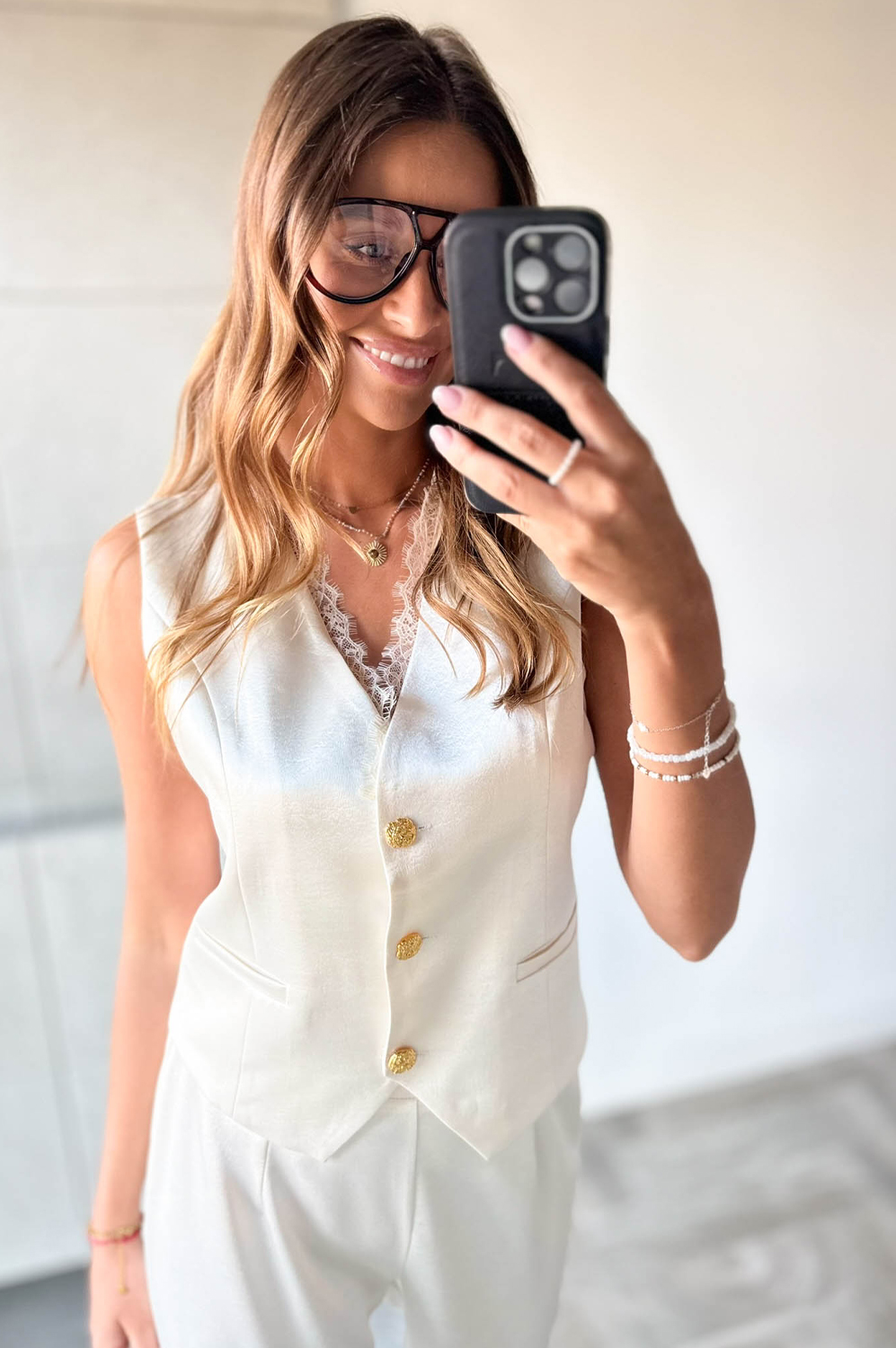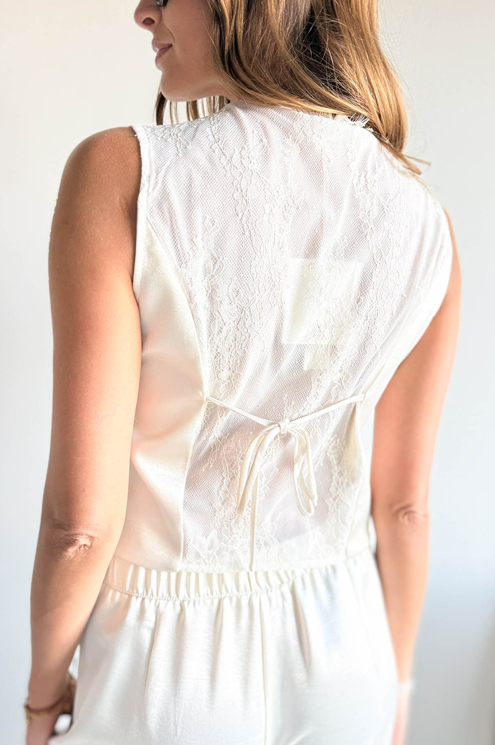 Komplet 2-częściowy SATYNOWY Z KORONKĄ249.00 zł Najniższa cena towaru, która obowiązywała w okresie 30 dni przed zastosowaniem obniżki: 249.00 zł Opis Piękny komplecik dwuczęściowy. Kamizelka w formie krótkiej marynarki na podszewce z koronkowym tyłem, zapinana na guziczki,spodnie z prostą długą nogawką z tyłu posiadają gumkę. WYMIARY: