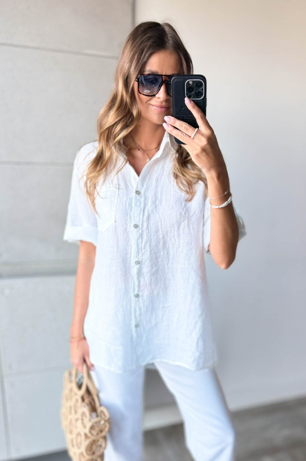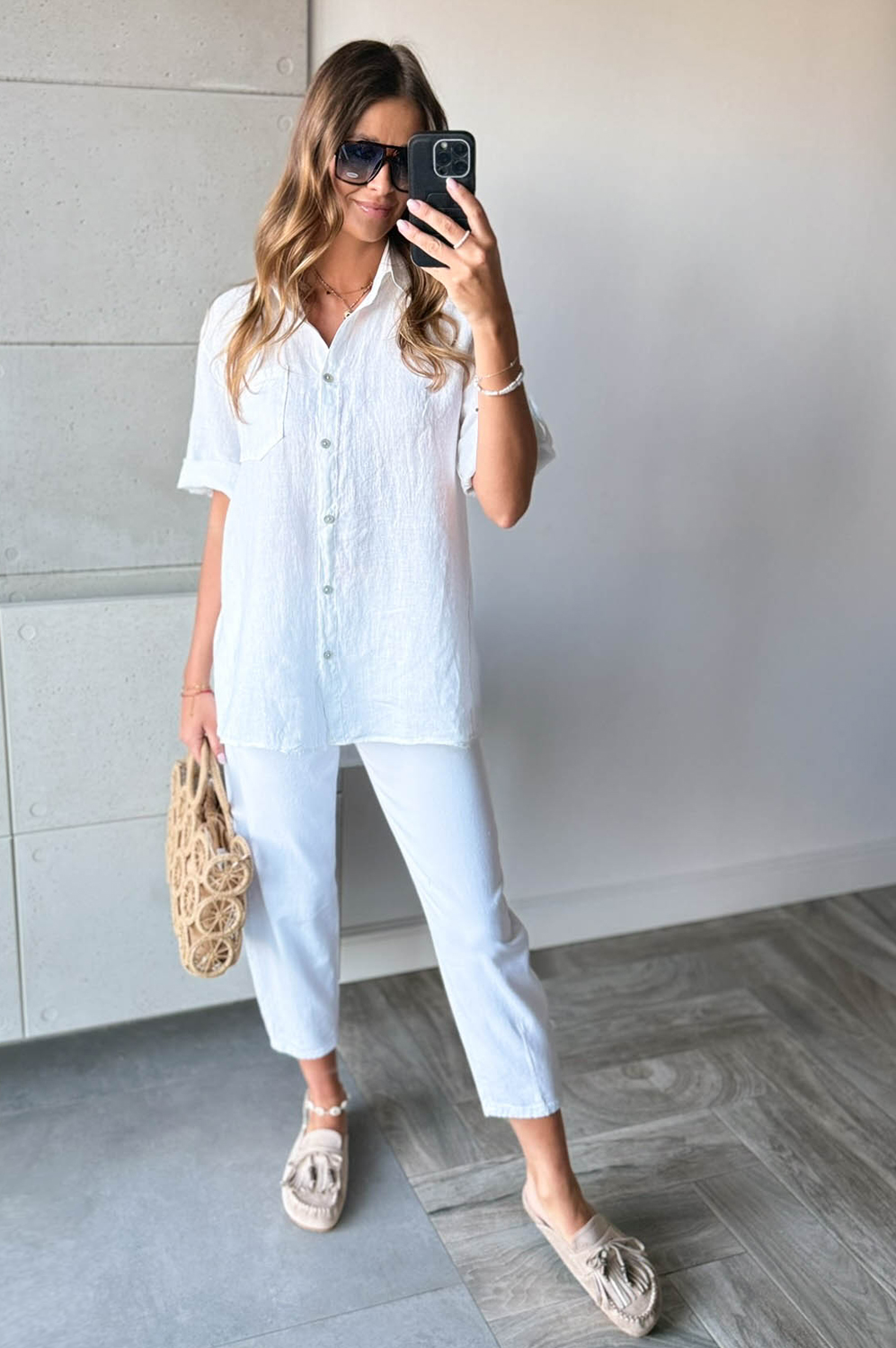 Bluzka koszulowa LEN DŁUGA biała149.00 zł Najniższa cena towaru, która obowiązywała w okresie 30 dni przed zastosowaniem obniżki: 149.00 zł Opis Długa bluzka koszulowa wykonana z lnu. WYMIARY: