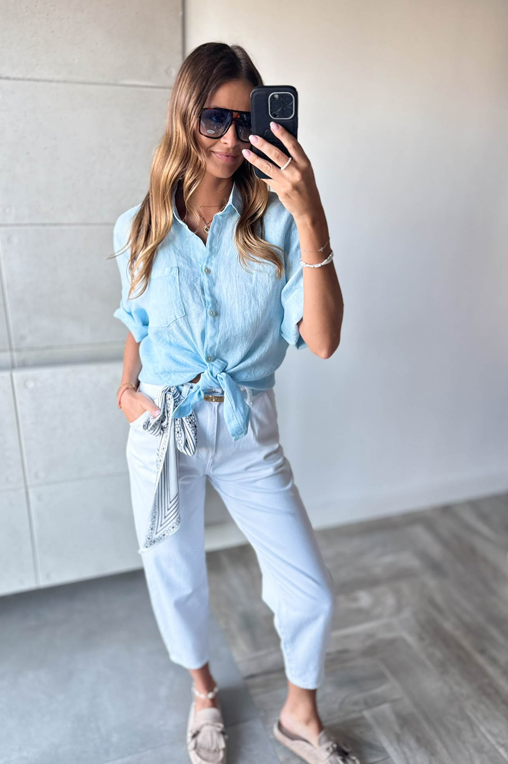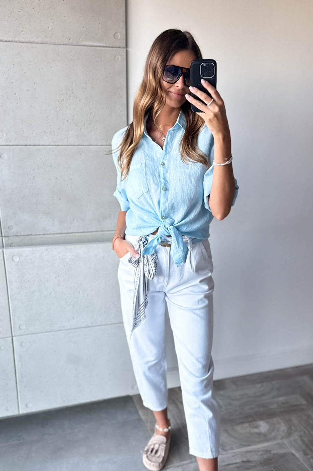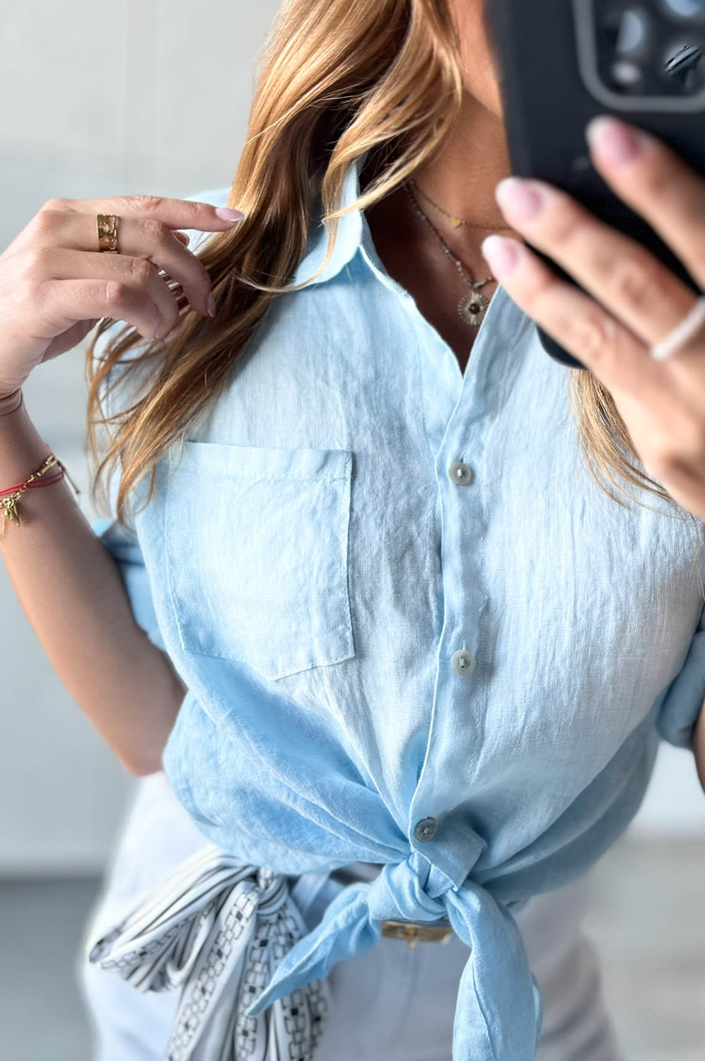 Bluzka koszulowa LEN DŁUGA błękit149.00 zł Najniższa cena towaru, która obowiązywała w okresie 30 dni przed zastosowaniem obniżki: 149.00 zł Opis Długa bluzka koszulowa wykonana z lnu. WYMIARY: