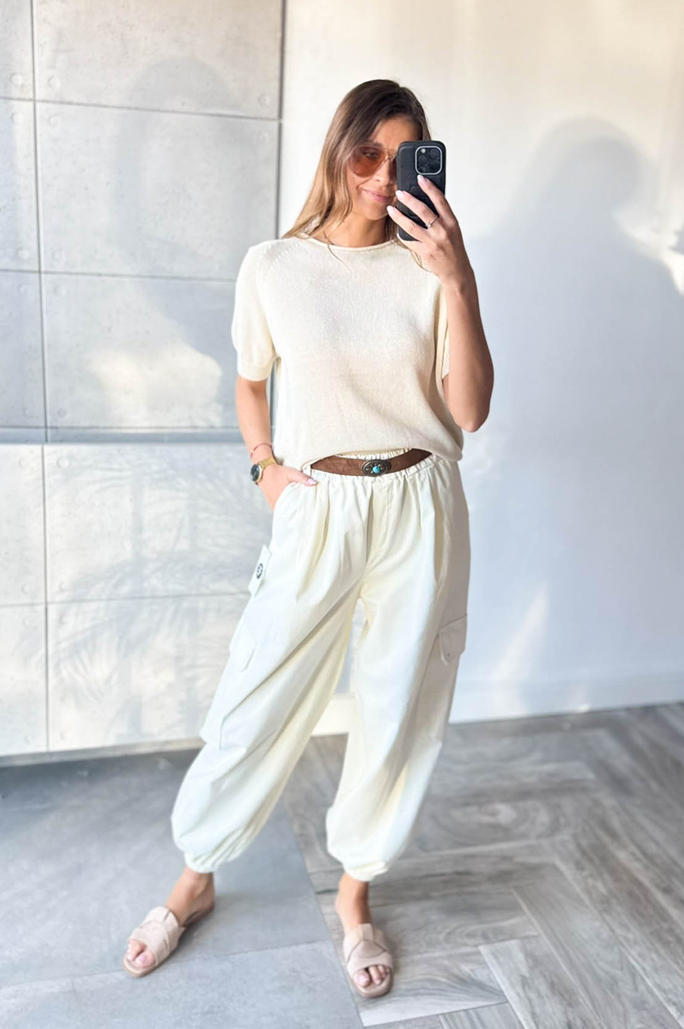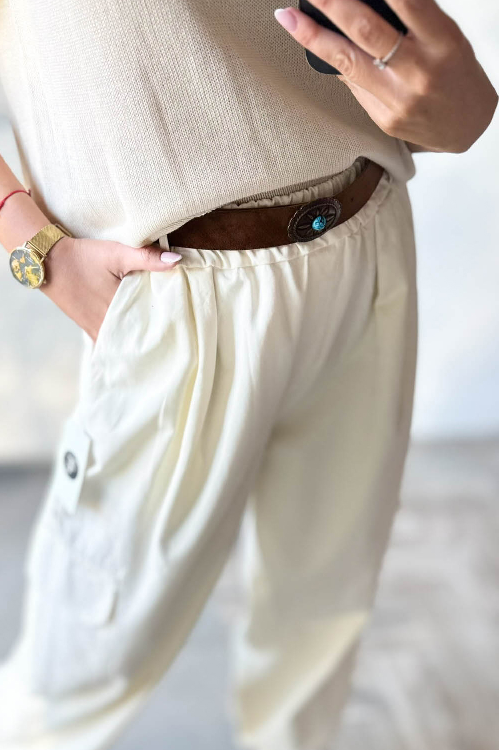 Spodnie SPODNIE BOJÓWKI beż budyniowy