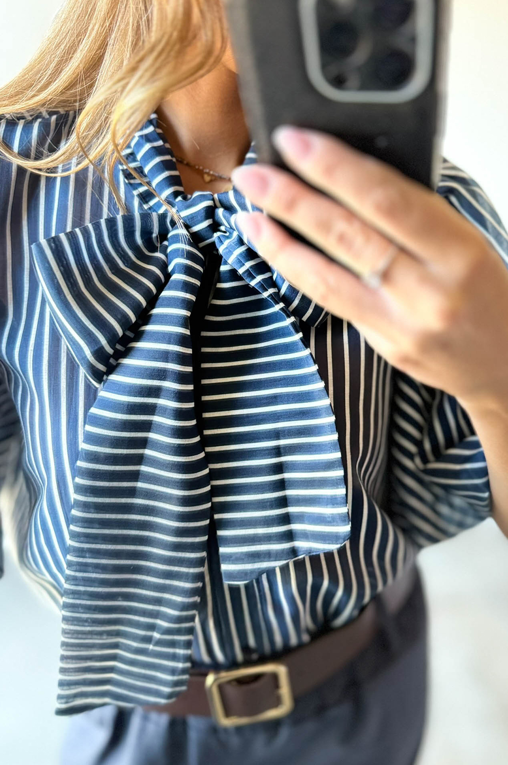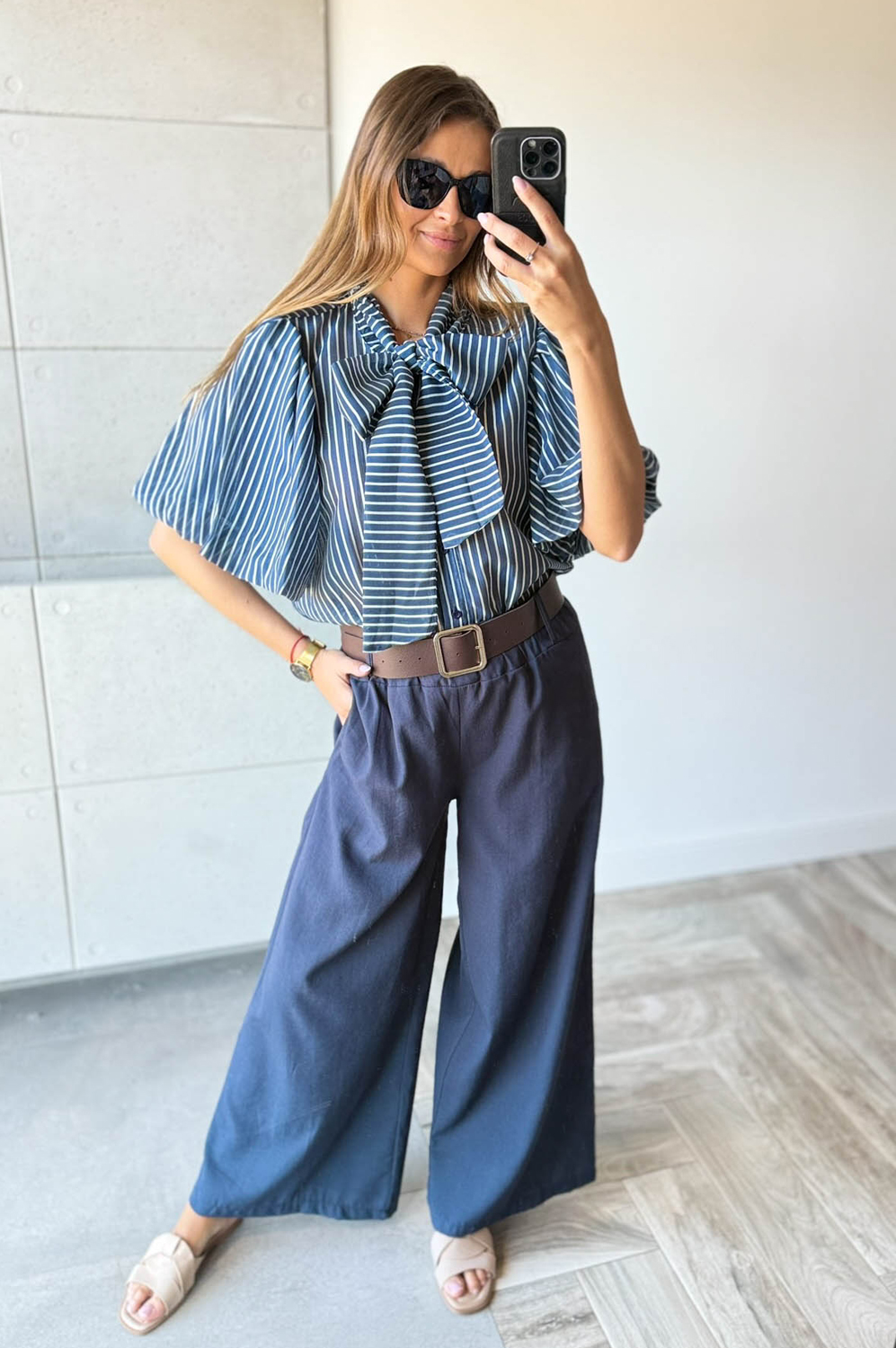 Bluzka koszulowa KOSZULOWA Z KOKARDĄ granat149.00 zł Najniższa cena towaru, która obowiązywała w okresie 30 dni przed zastosowaniem obniżki: 149.00 zł Opis Koszula z wiązaną kokardą. SKŁAD : 85% tencel, 15% poliester
