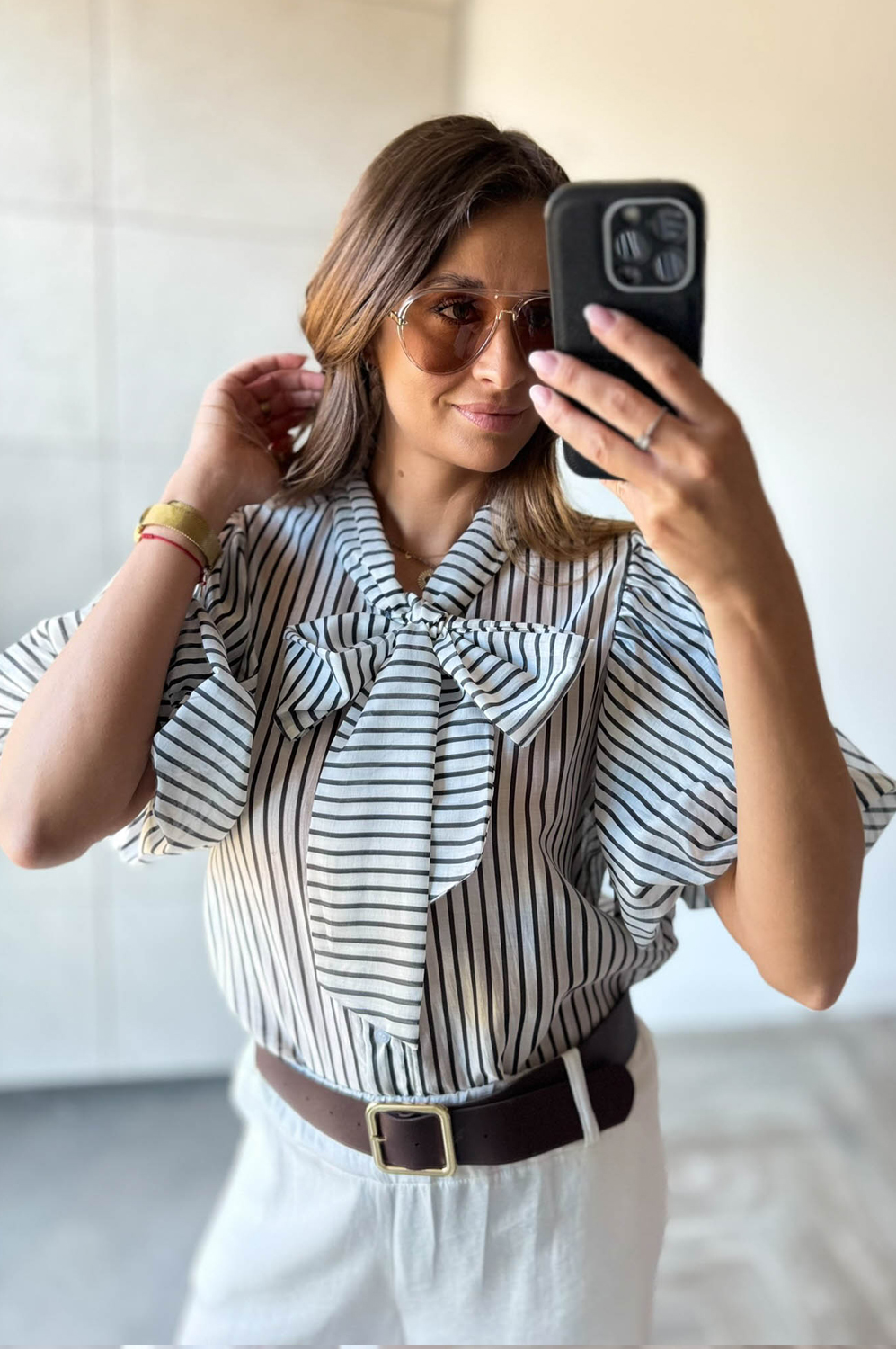Bluzka koszulowa KOSZULOWA Z KOKARDĄ śmietanka149.00 zł Najniższa cena towaru, która obowiązywała w okresie 30 dni przed zastosowaniem obniżki: 149.00 zł Opis Koszula z wiązaną kokardą. SKŁAD : 85% tencel, 15% poliester