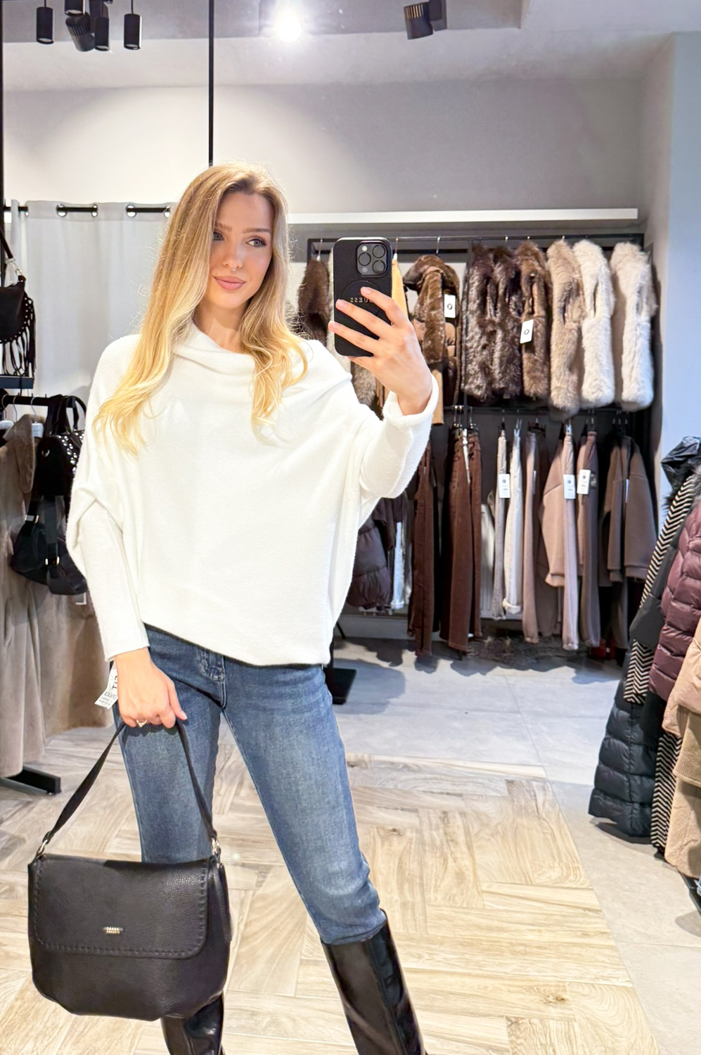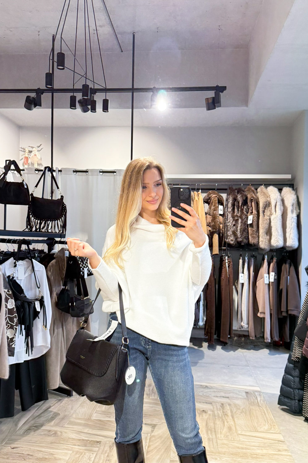 Sweterek ASYMETRIX śmietanka169.00 zł Najniższa cena towaru, która obowiązywała w okresie 30 dni przed zastosowaniem obniżki: 169.00 zł Opis Sweterek o asymetrycznym luźnym kroju - można go nosić jako tunikę lub krótszy sweter. Rewelacyjnie układa się na każdej sylwetce. Sweterek wykonany jest z przemiłej w dotyku, elastycznej dzianiny. SKŁAD : 42% wiskoza 30% poliamid 28% poliester