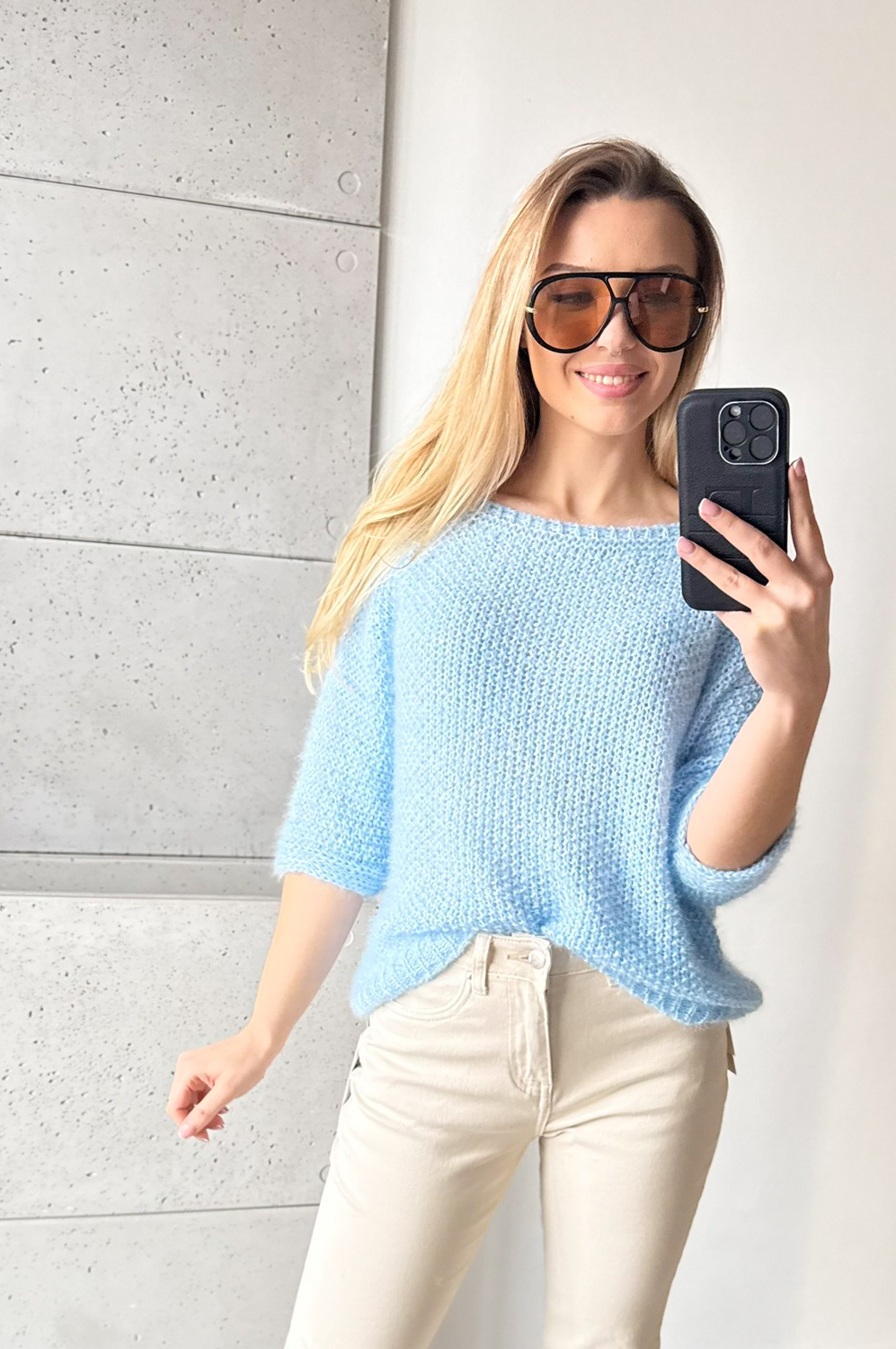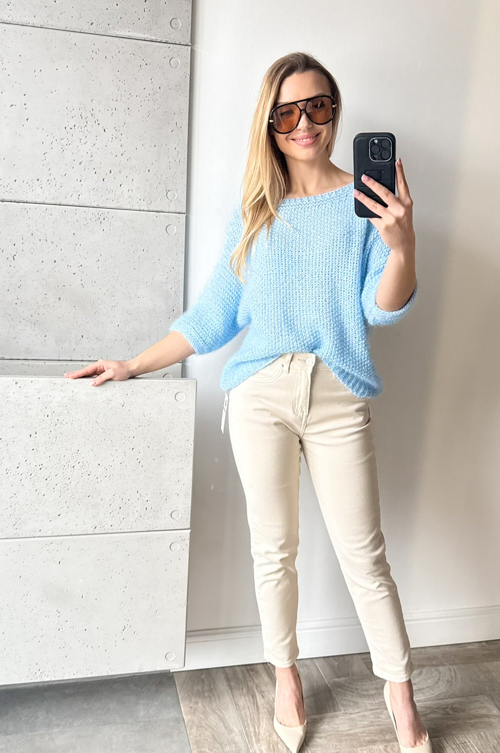 Sweterek PLECIONY Z CEKINEM błękit