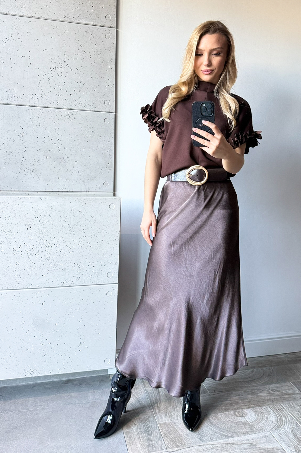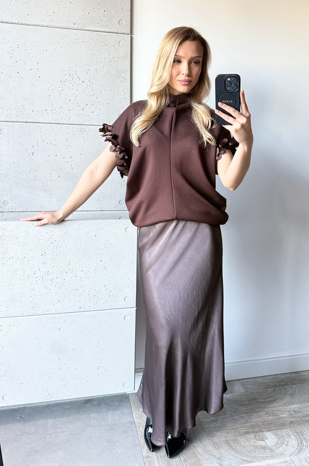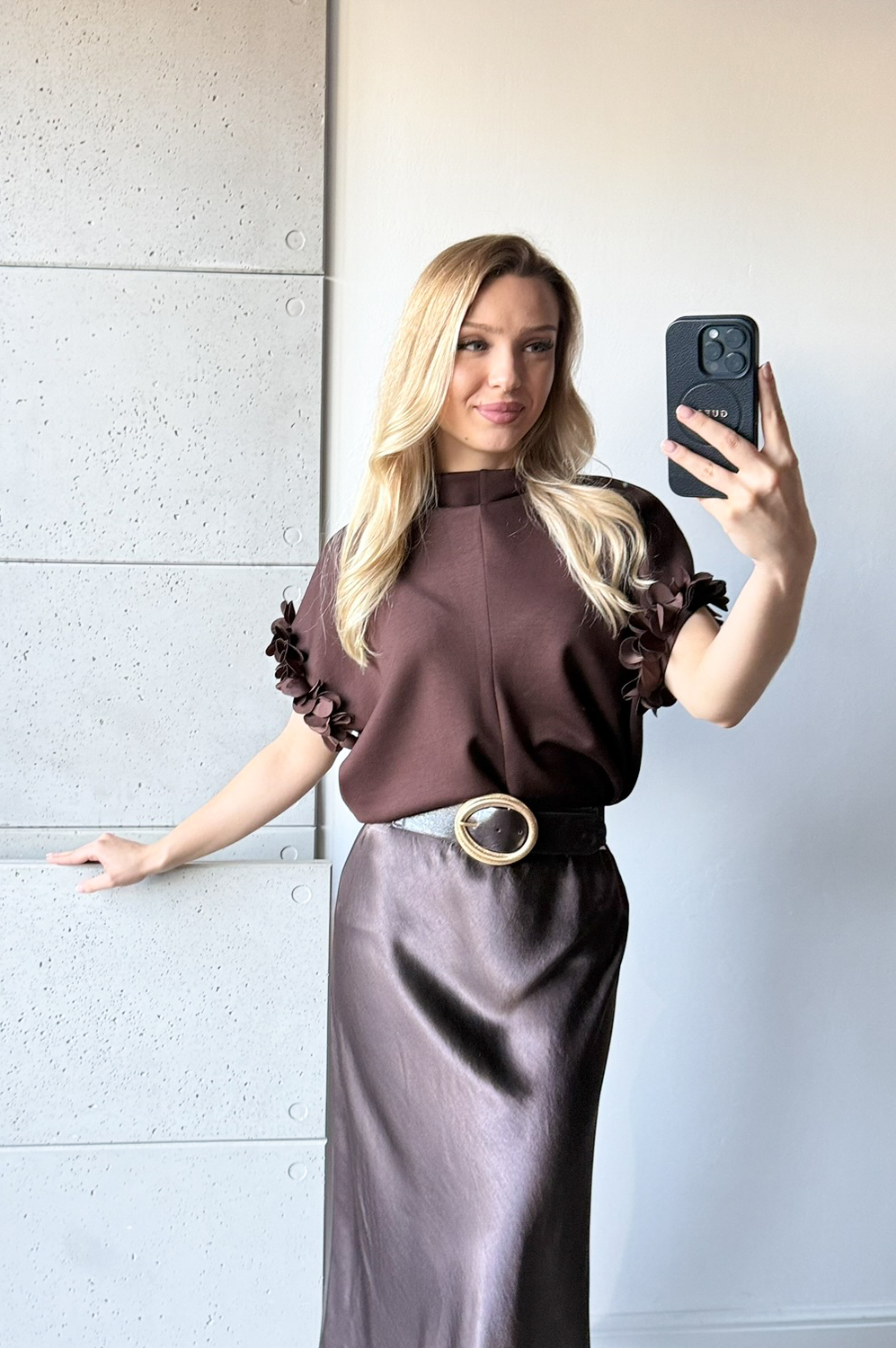 Bluzka KIMONO- KWIATKI ATŁAS NA RĘKAWKU- CZEKOLADA179.00 zł Najniższa cena towaru, która obowiązywała w okresie 30 dni przed zastosowaniem obniżki: 179.00 zł Opis Zwrot ZWROTY