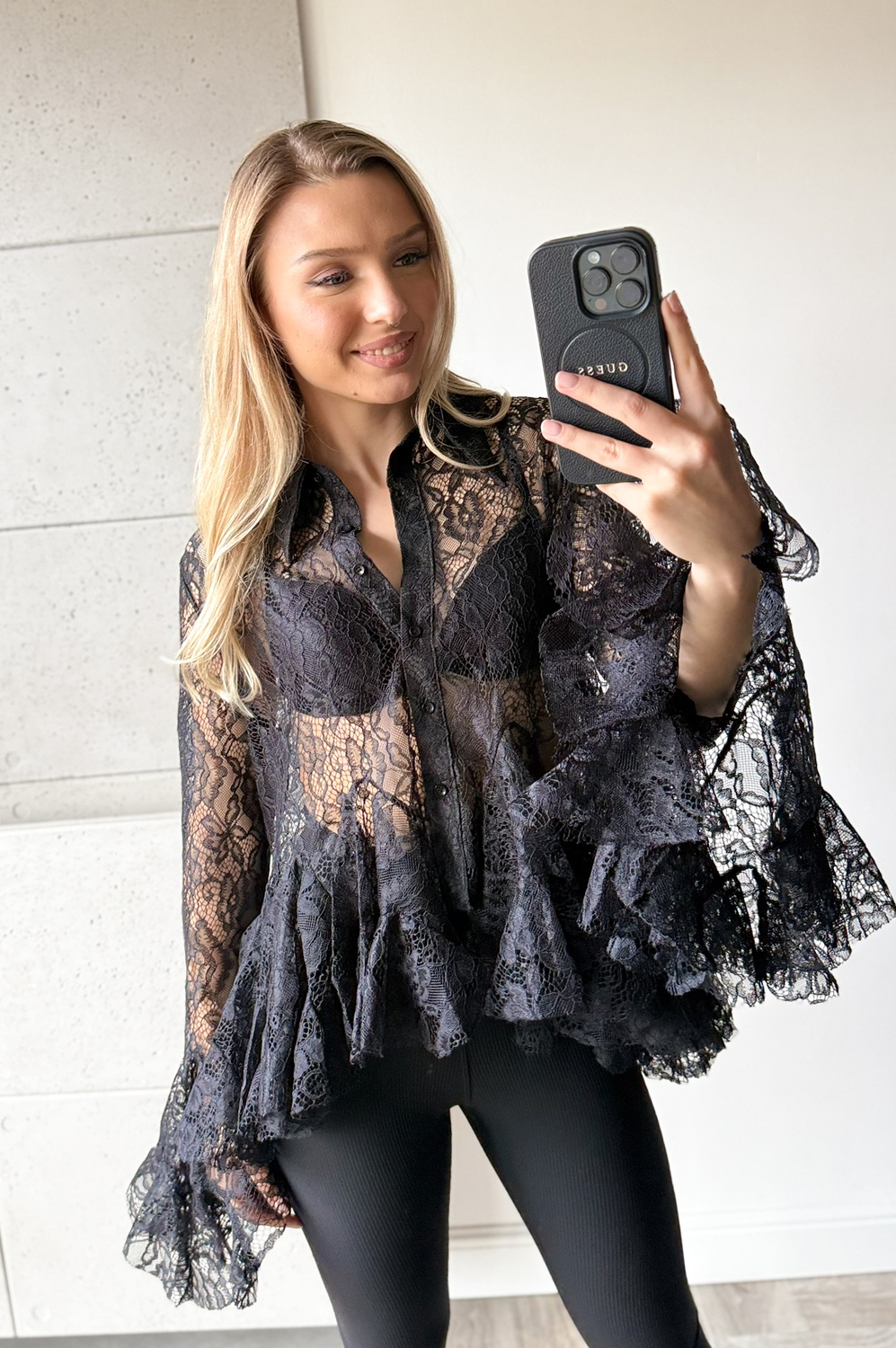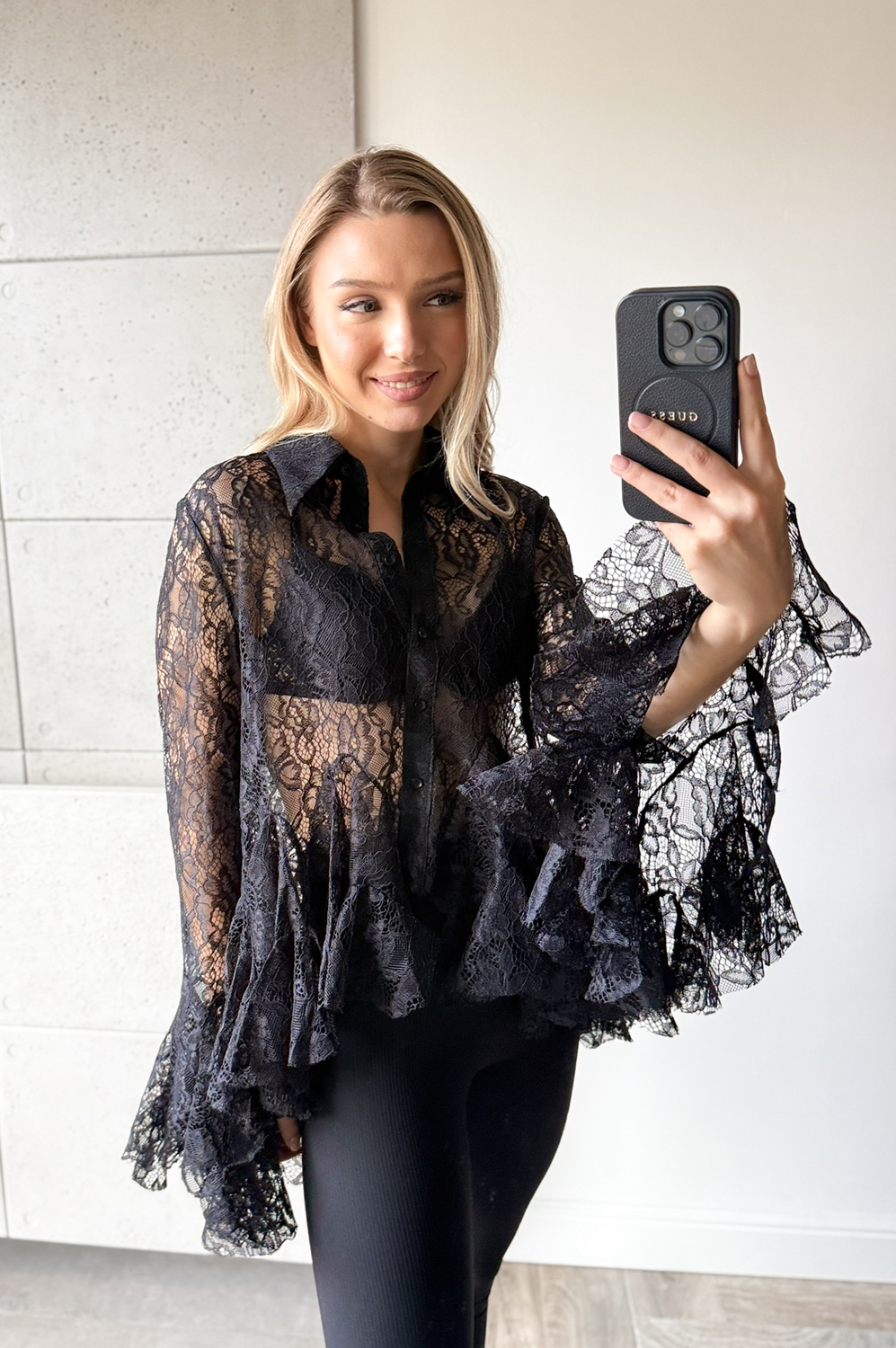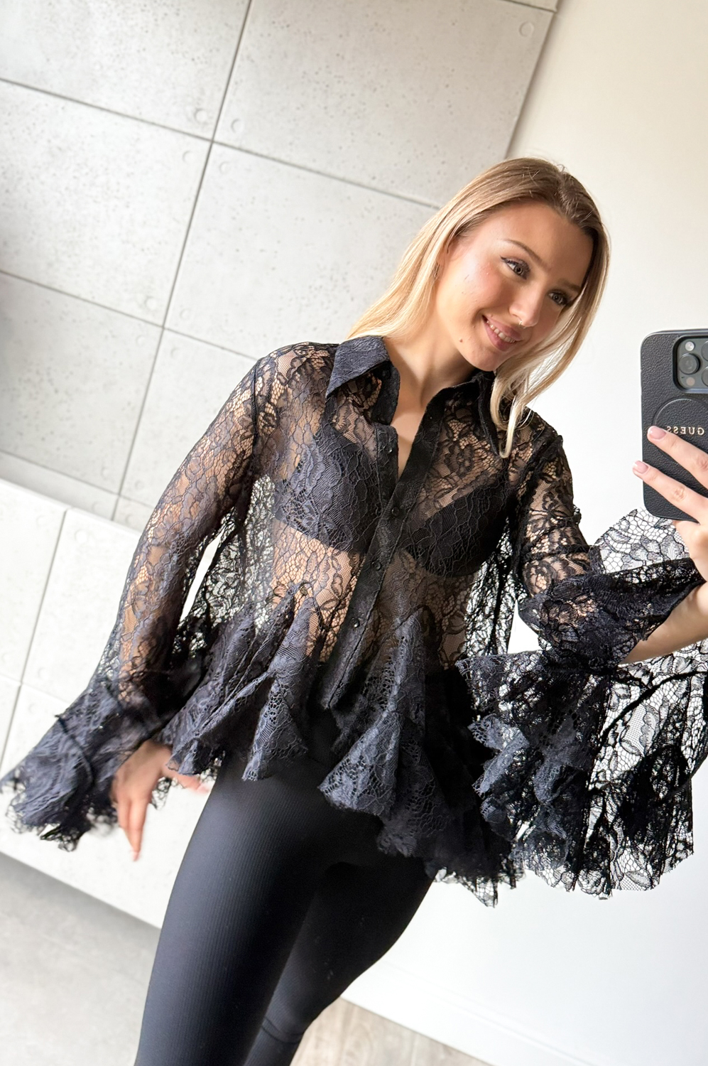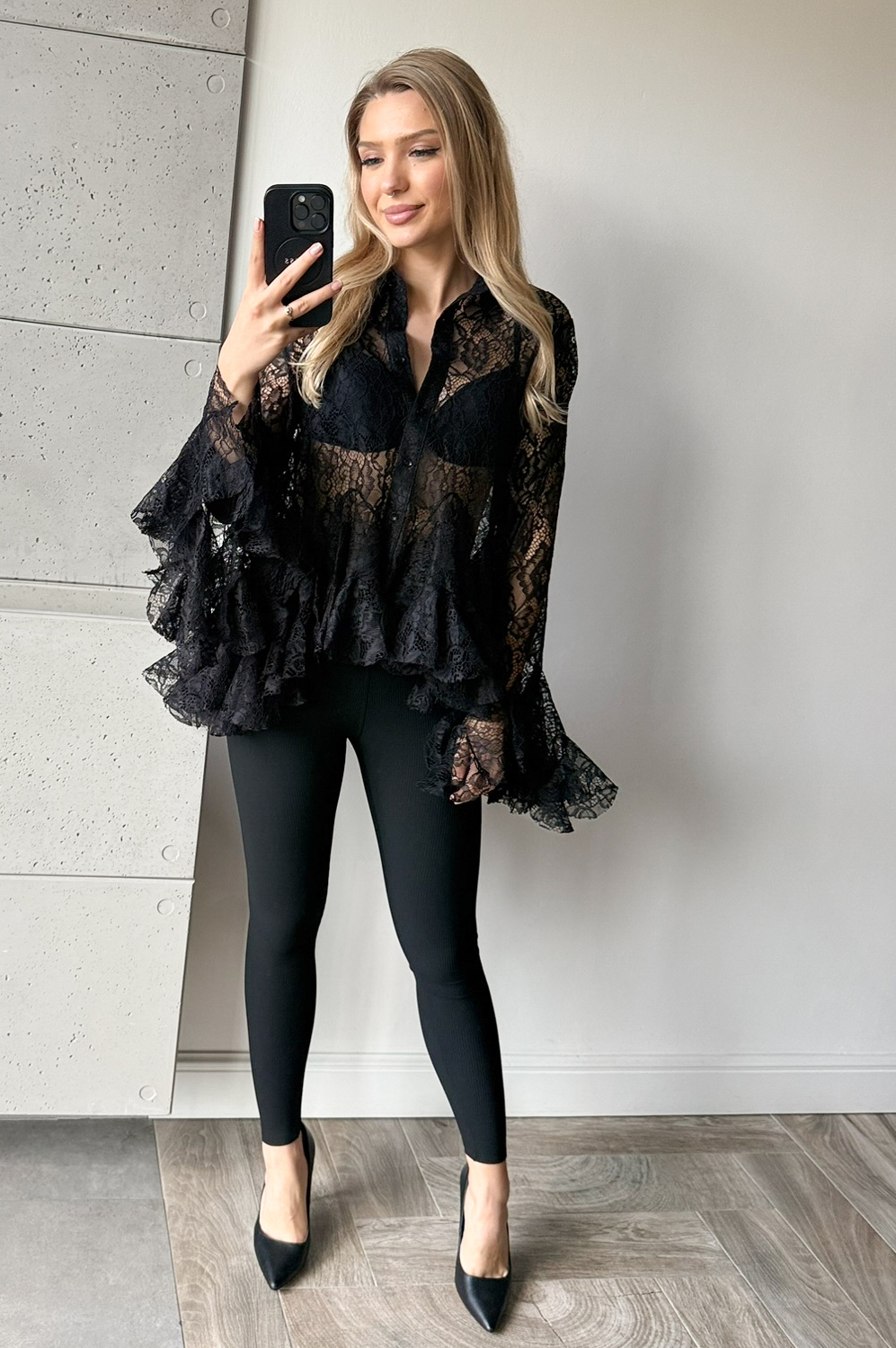 Bluzka koszulowa KORONKOWA OLEEEE czarna229.00 zł Najniższa cena towaru, która obowiązywała w okresie 30 dni przed zastosowaniem obniżki: 229.00 zł Opis Efektowna koronkowa bluzka kozulowa. Wykonana z eleganckiej koronki. ZOBACZ FILM: www.facebook.com/share/v/17F5dM5a9p/ WYMIARY: Pasuje na XS/S/M/L