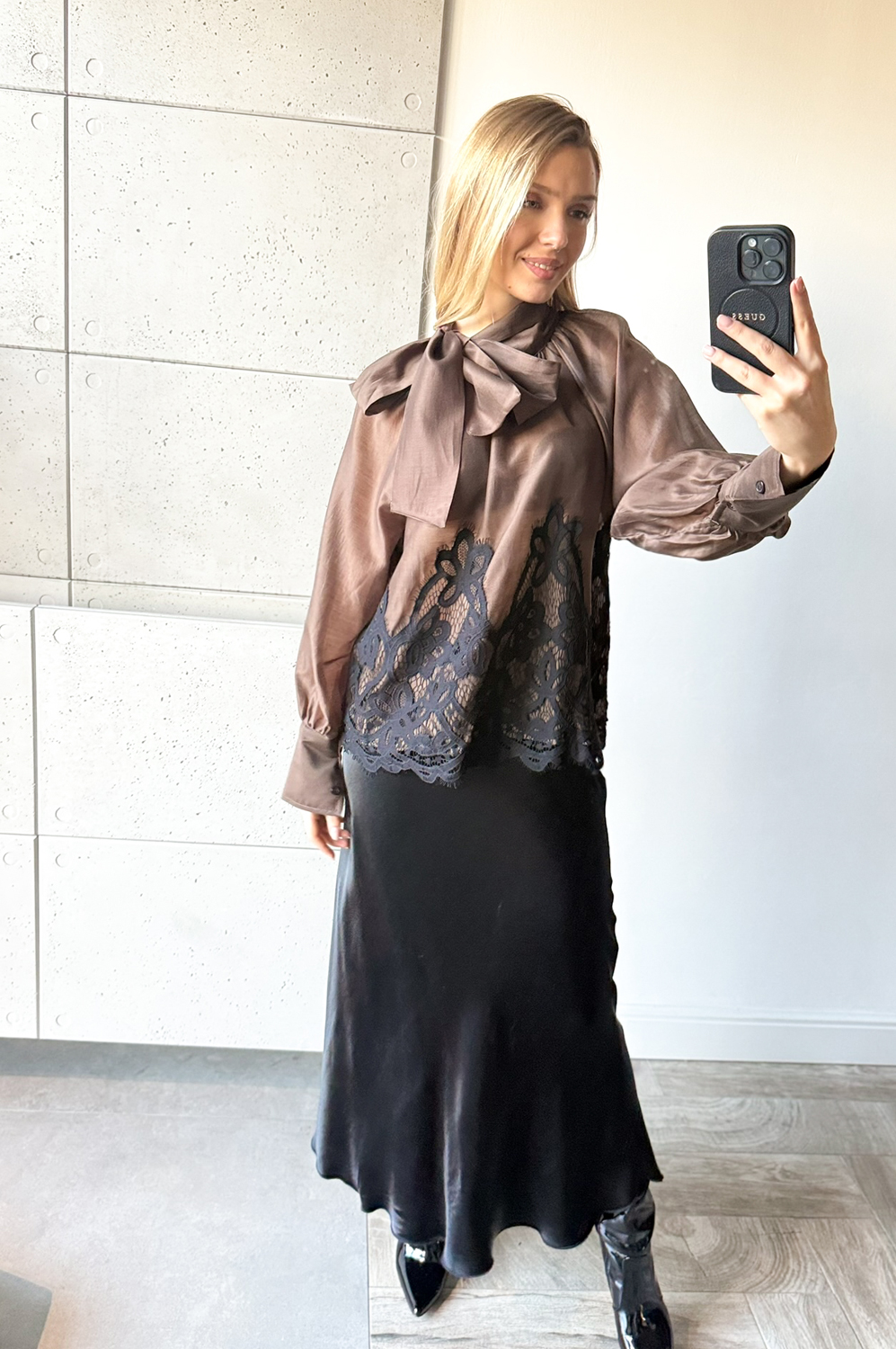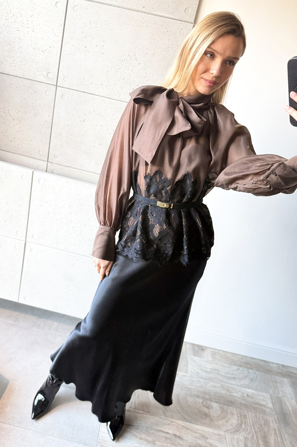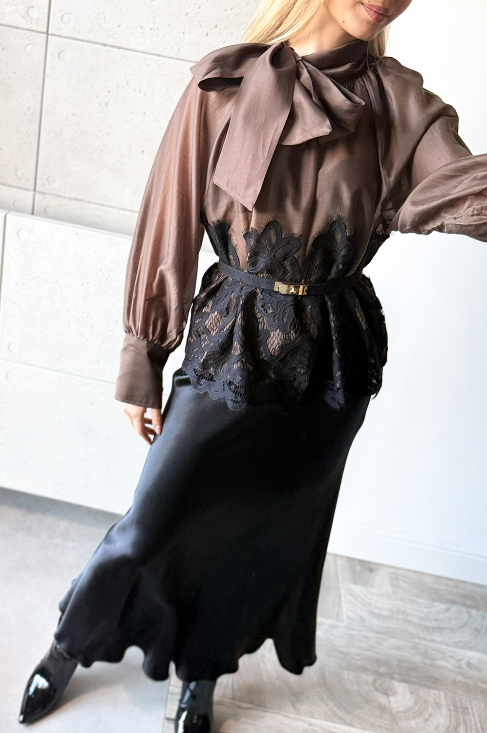 Bluzka koszulowa MICHOS czekolada Z KORONKĄ219.00 zł Najniższa cena towaru, która obowiązywała w okresie 30 dni przed zastosowaniem obniżki: 219.00 zł Opis Zwrot ZWROTY