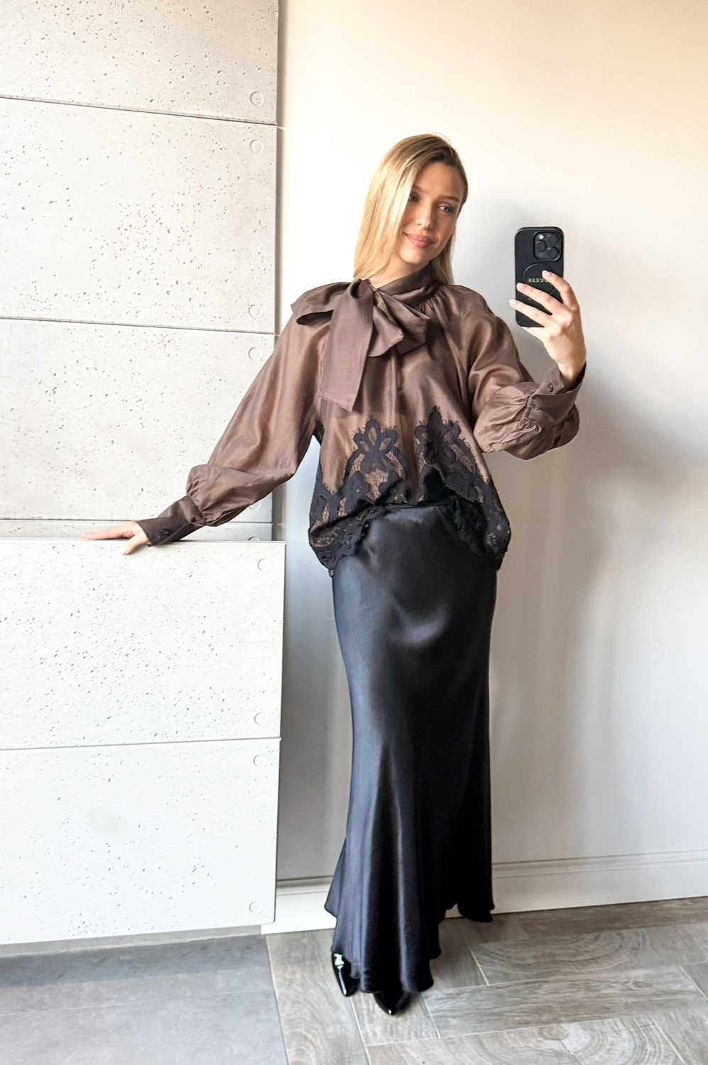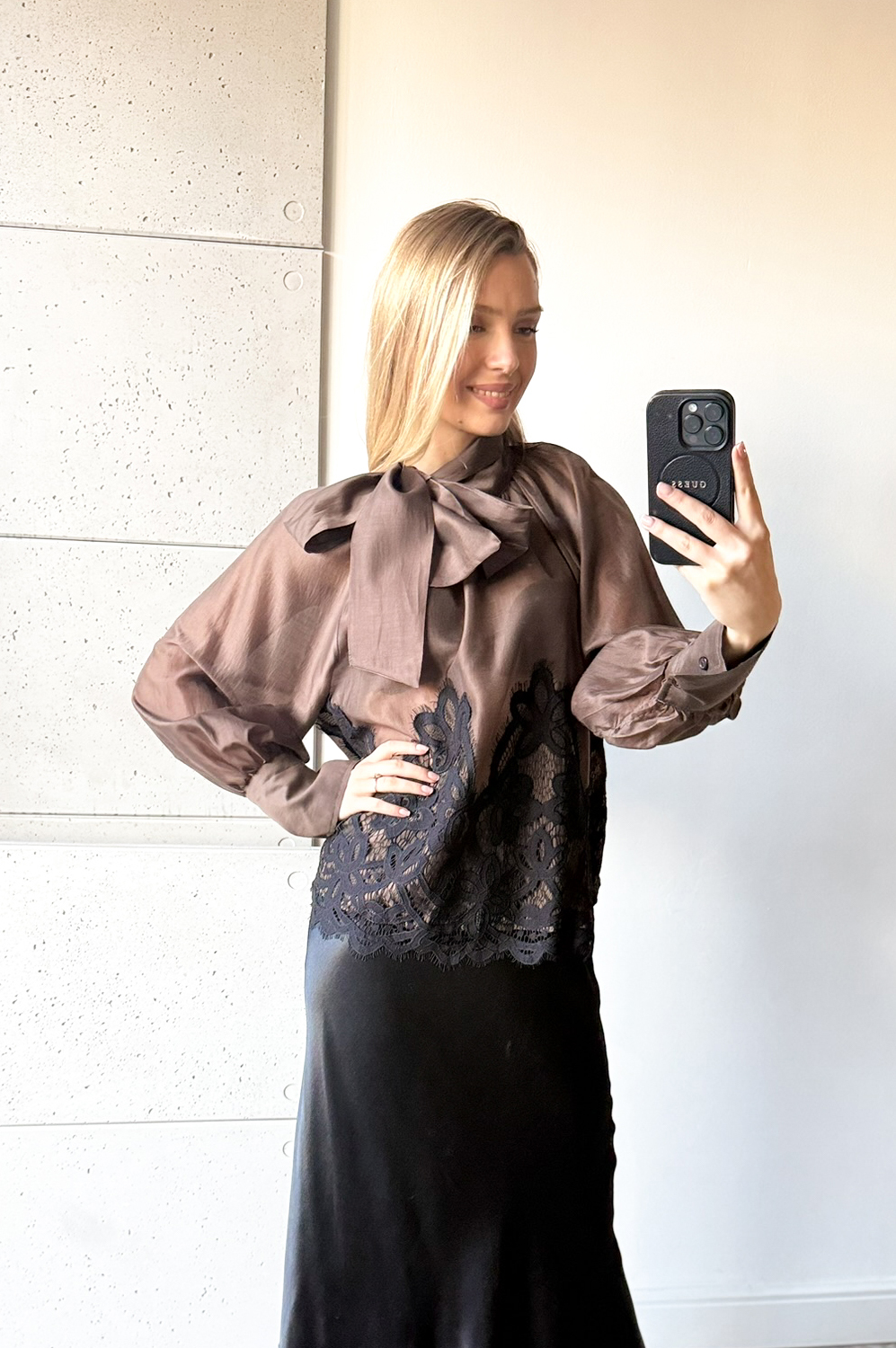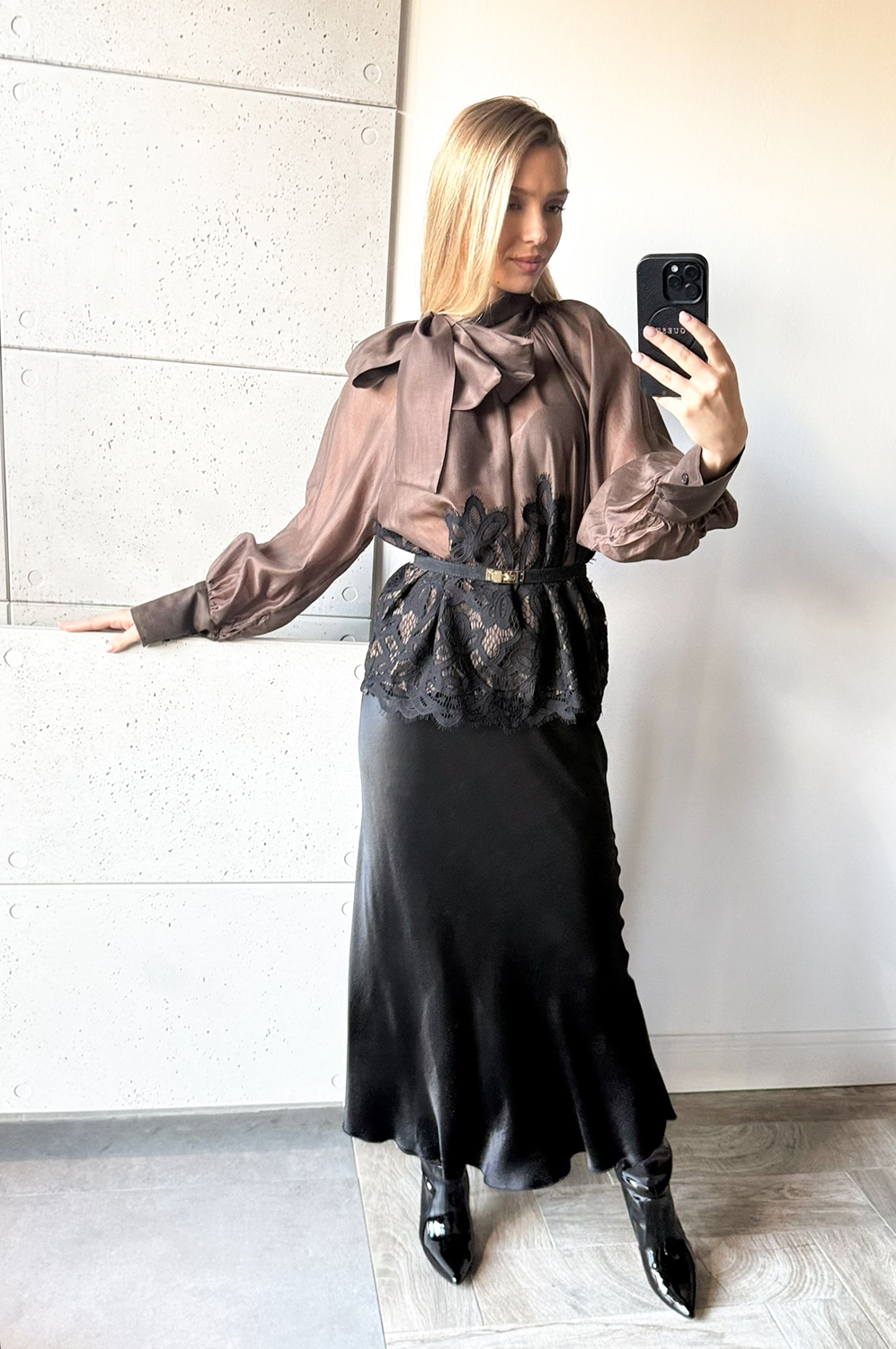 Bluzka koszulowa MICHOS czekolada Z KORONKĄ219.00 zł Najniższa cena towaru, która obowiązywała w okresie 30 dni przed zastosowaniem obniżki: 219.00 zł Opis Zwrot ZWROTY