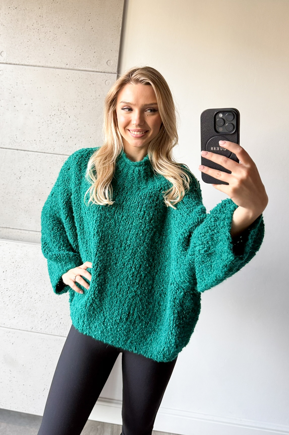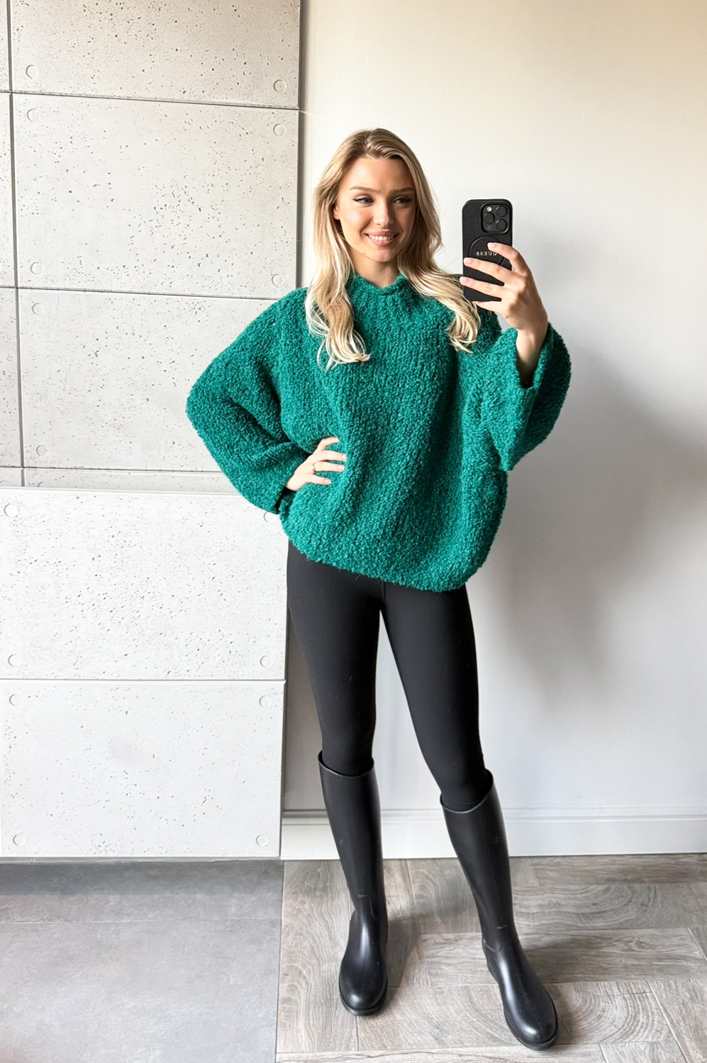 Sweterek BOUCLE PÓŁGOLF szmaragd179.00 zł Najniższa cena towaru, która obowiązywała w okresie 30 dni przed zastosowaniem obniżki: 179.00 zł Opis SKŁAD : 62% akryl,8% wiskoza,8%wełna 18% polyester,4& alpaka MODELKA : Martyna-wzrost 170 cm, biodra 96 cm, pas 66 cm, biust 90 cm. Ma na sobie ONE SIZE Zwrot ZWROTY