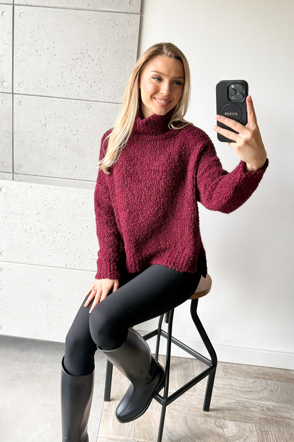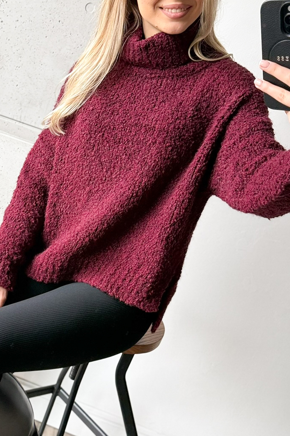 Sweterek GOLF BOUCLE czerwone wino179.00 zł Najniższa cena towaru, która obowiązywała w okresie 30 dni przed zastosowaniem obniżki: 179.00 zł Opis SKŁAD : 62% akryl,8% wiskoza,8%wełna 18% polyester,4& alpaka MODELKA : Martyna-wzrost 170 cm, biodra 96 cm, pas 66 cm, biust 90 cm. Ma na sobie ONE SIZE Zwrot ZWROTY