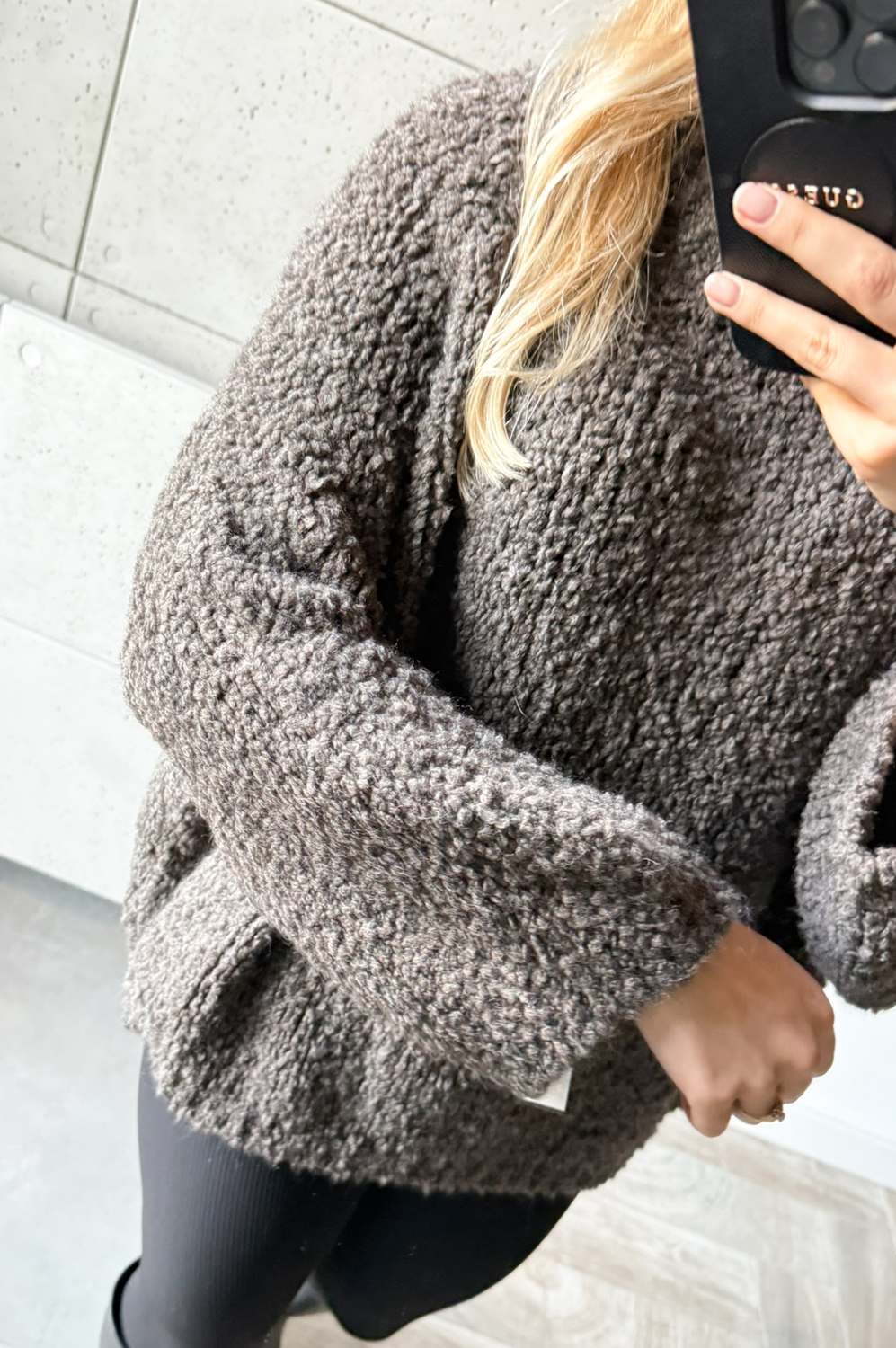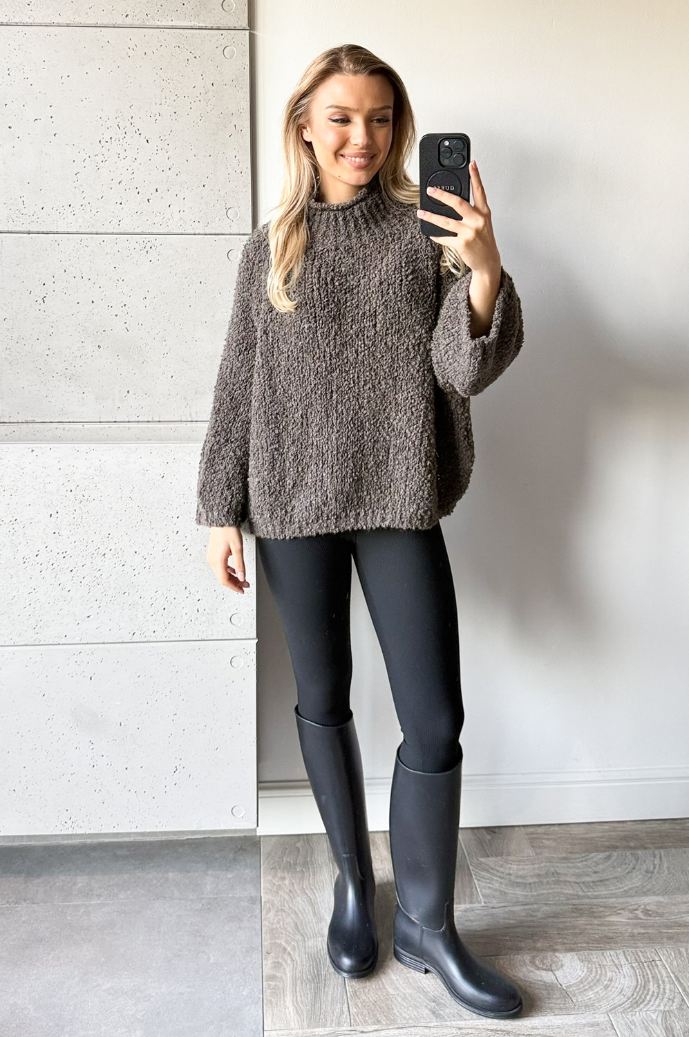Sweterek BOUCLE PÓŁGOLF ciemne fango179.00 zł Najniższa cena towaru, która obowiązywała w okresie 30 dni przed zastosowaniem obniżki: 179.00 zł Opis SKŁAD : 62% akryl,8% wiskoza,8%wełna 18% polyester,4& alpaka MODELKA : Martyna-wzrost 170 cm, biodra 96 cm, pas 66 cm, biust 90 cm. Ma na sobie ONE SIZE Zwrot ZWROTY