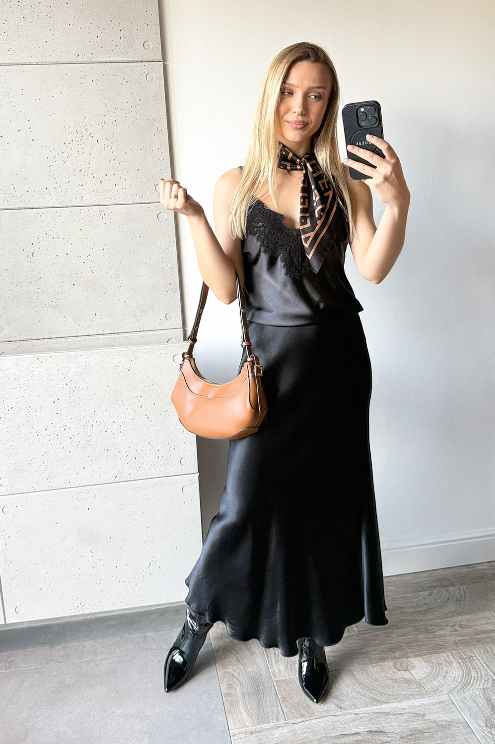 Spódniczka GŁADKA SATYNOWA czarna109.00 zł Najniższa cena towaru, która obowiązywała w okresie 30 dni przed zastosowaniem obniżki: 129.00 zł Opis Zwrot ZWROTY