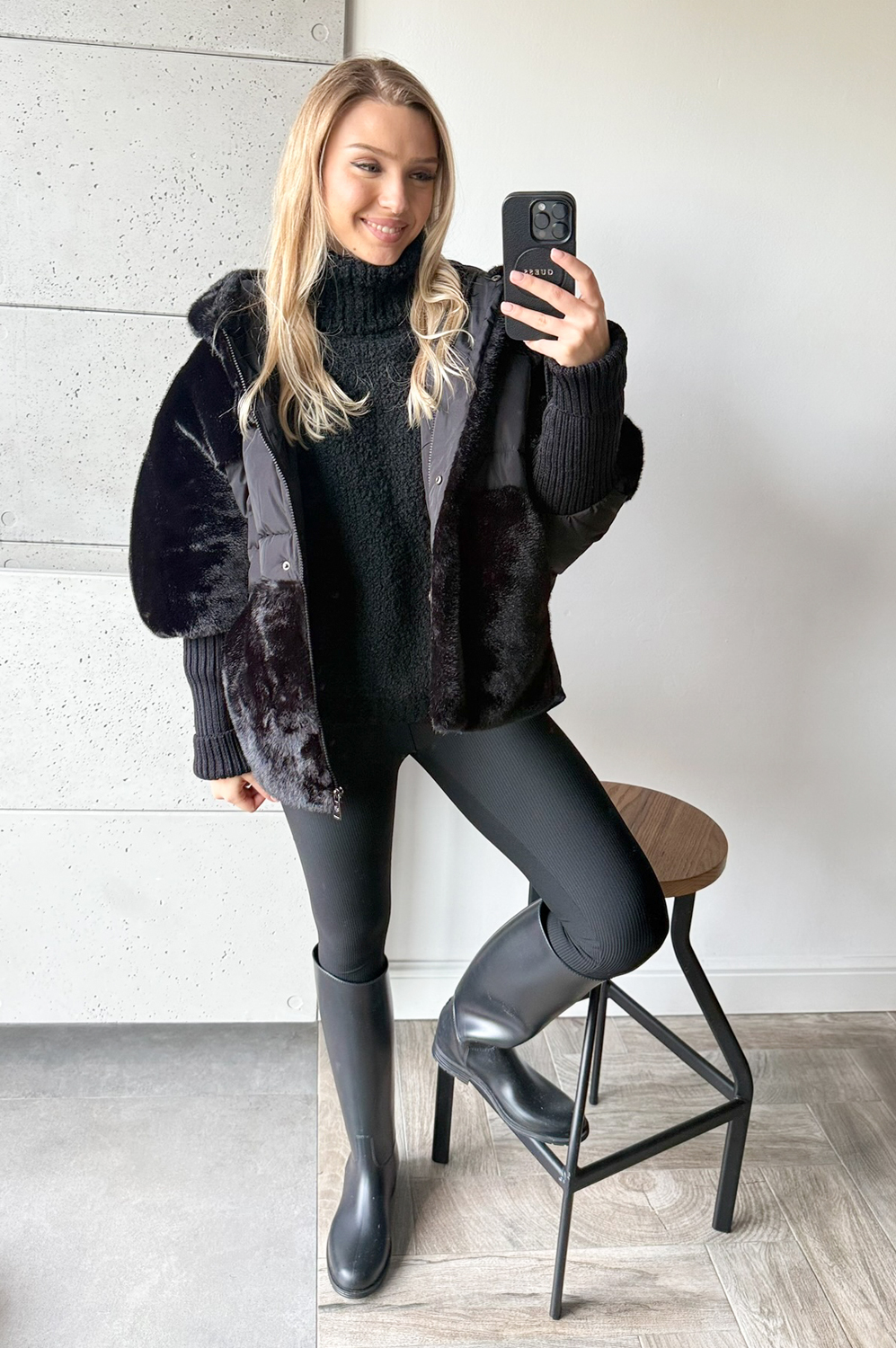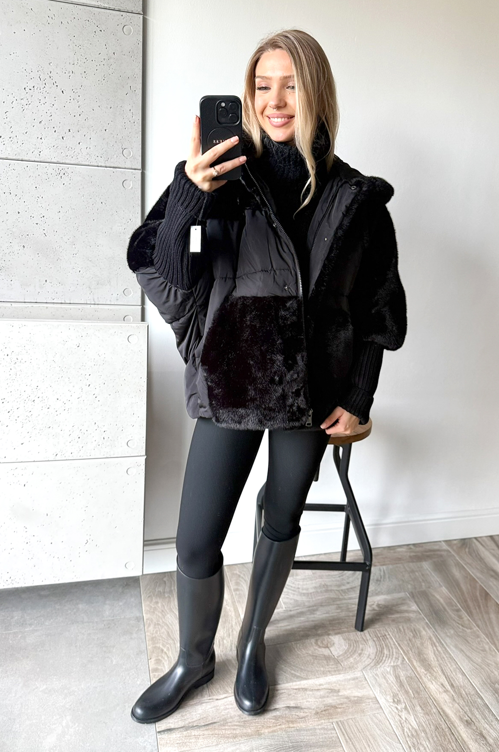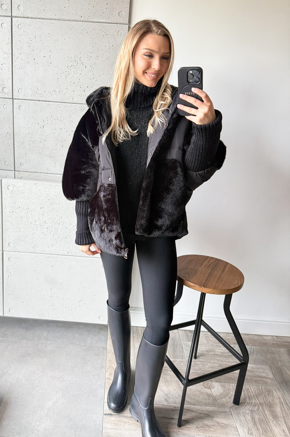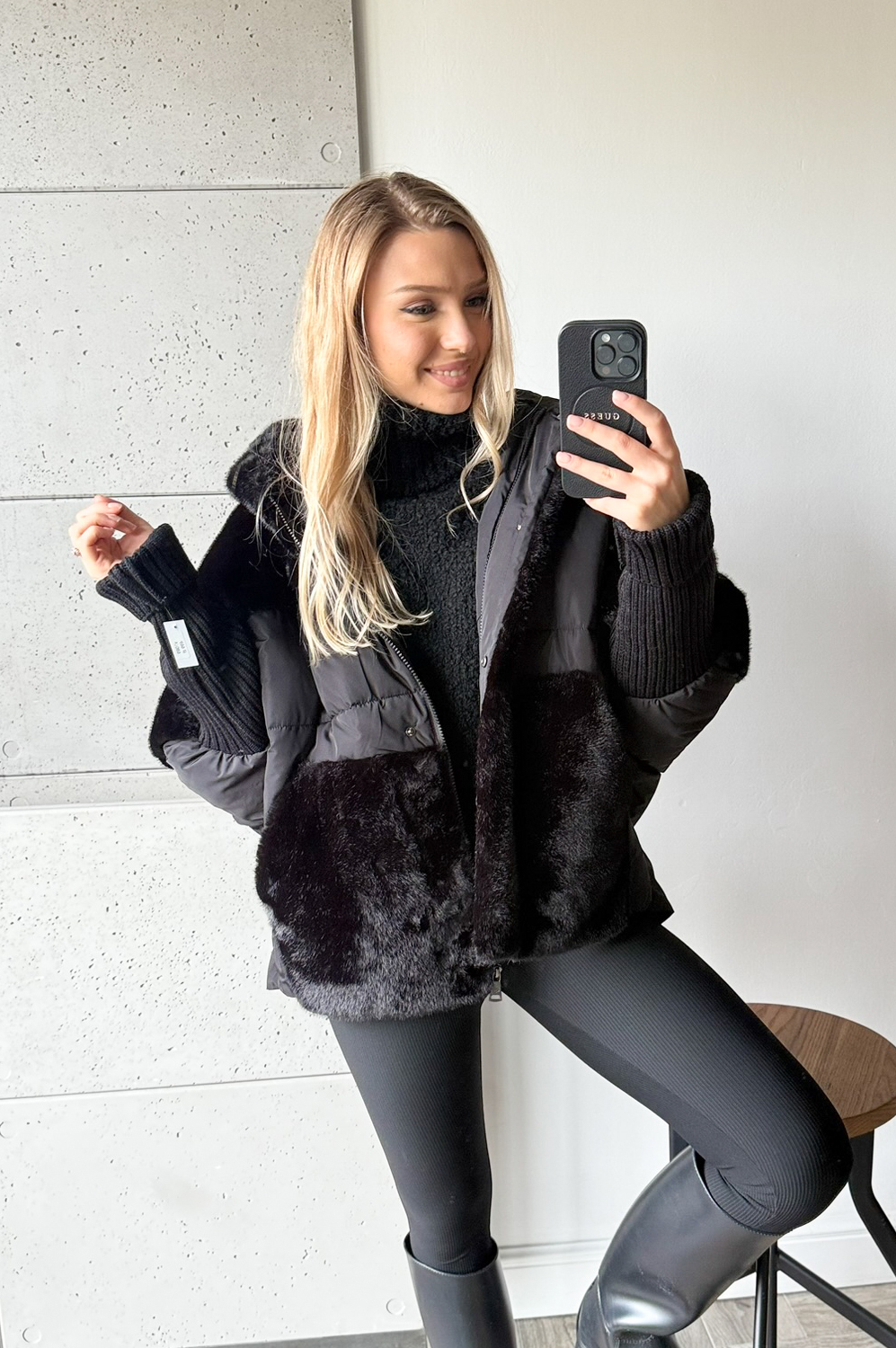 Kurtka FUTERKO I PIKÓWKA czarna499.00 zł Najniższa cena towaru, która obowiązywała w okresie 30 dni przed zastosowaniem obniżki: 499.00 zł Opis Kurtka futerkowo-pikówkowa oversizowa z kieszeniami, zapinana na zamek. Przy rękawach ciągacze. Kurtka ma kaptur. Bardzo dobrze wykonana - JAKOŚĆ PREMIUM ZOBACZ FILM: SKŁAD : 100% poliester