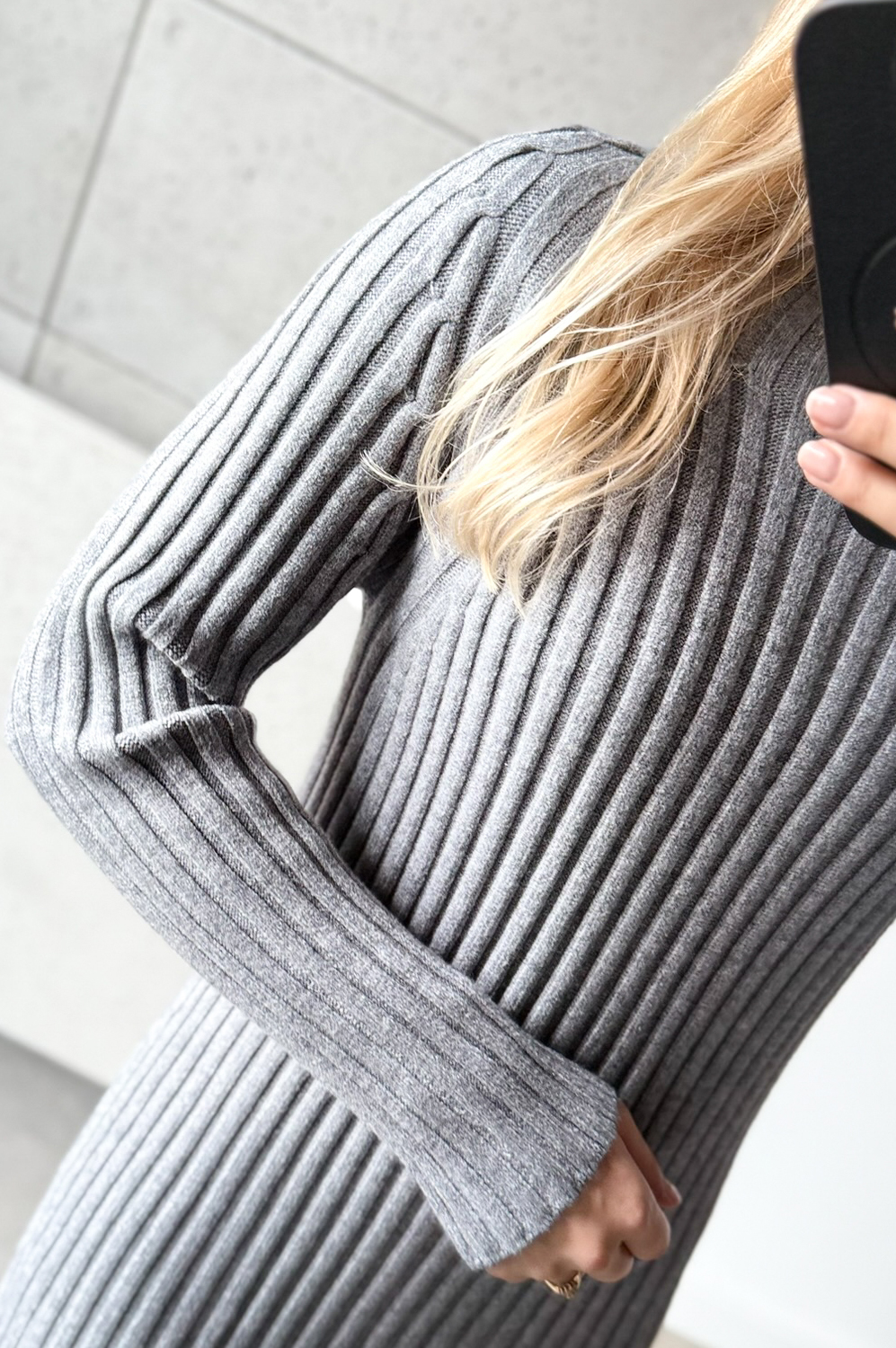 Sukienka CHIC PRĄŻEK szara199.00 zł Najniższa cena towaru, która obowiązywała w okresie 30 dni przed zastosowaniem obniżki: 199.00 zł Opis Sukienka w gruby prążek rewelacyjnie układa się na każdej sylwetce. Sukienka wykonana jest z przemiłej w dotyku, elastycznej dzianiny. WYMIARY: Pasuje do rozmiaru XS do L SKŁAD : wiskoza poliamid poliester