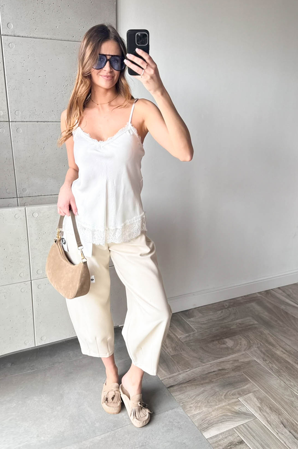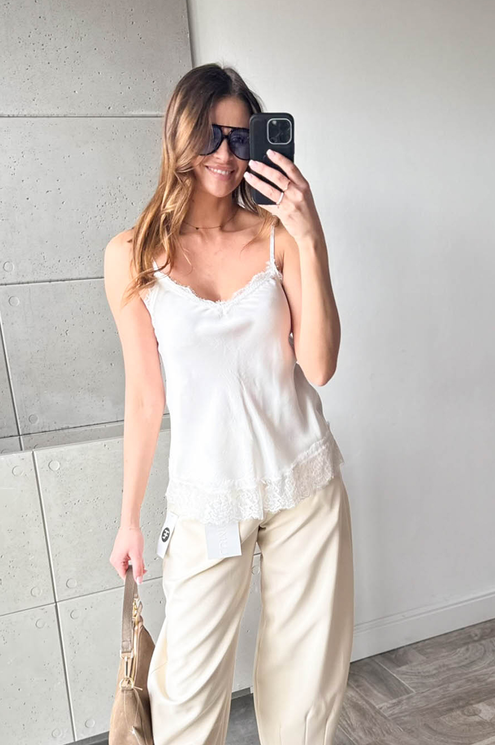 Bluzka Top SATYNOWY NA RAMIĄCZKACH śmietanka