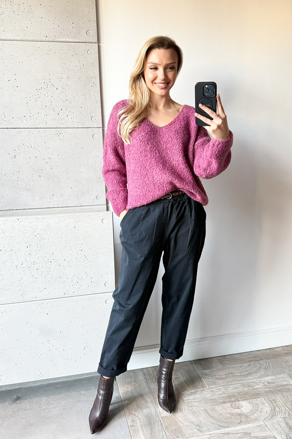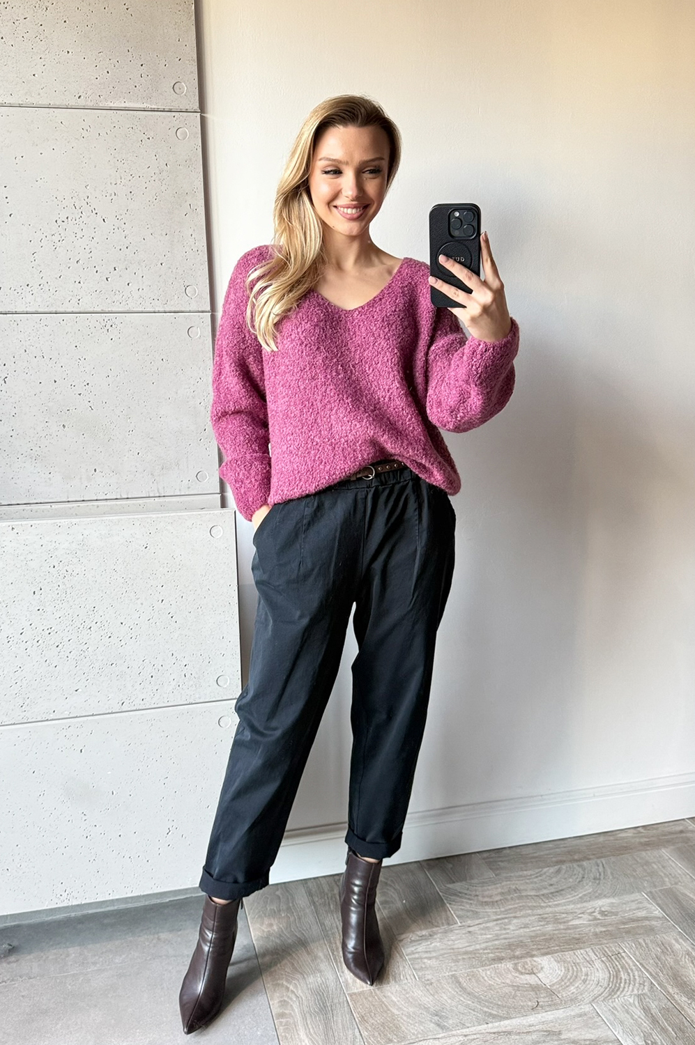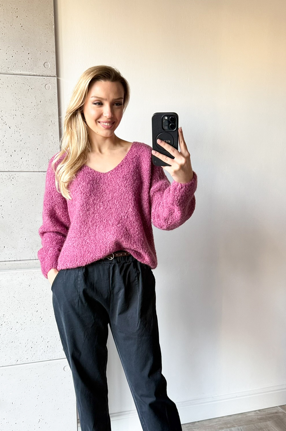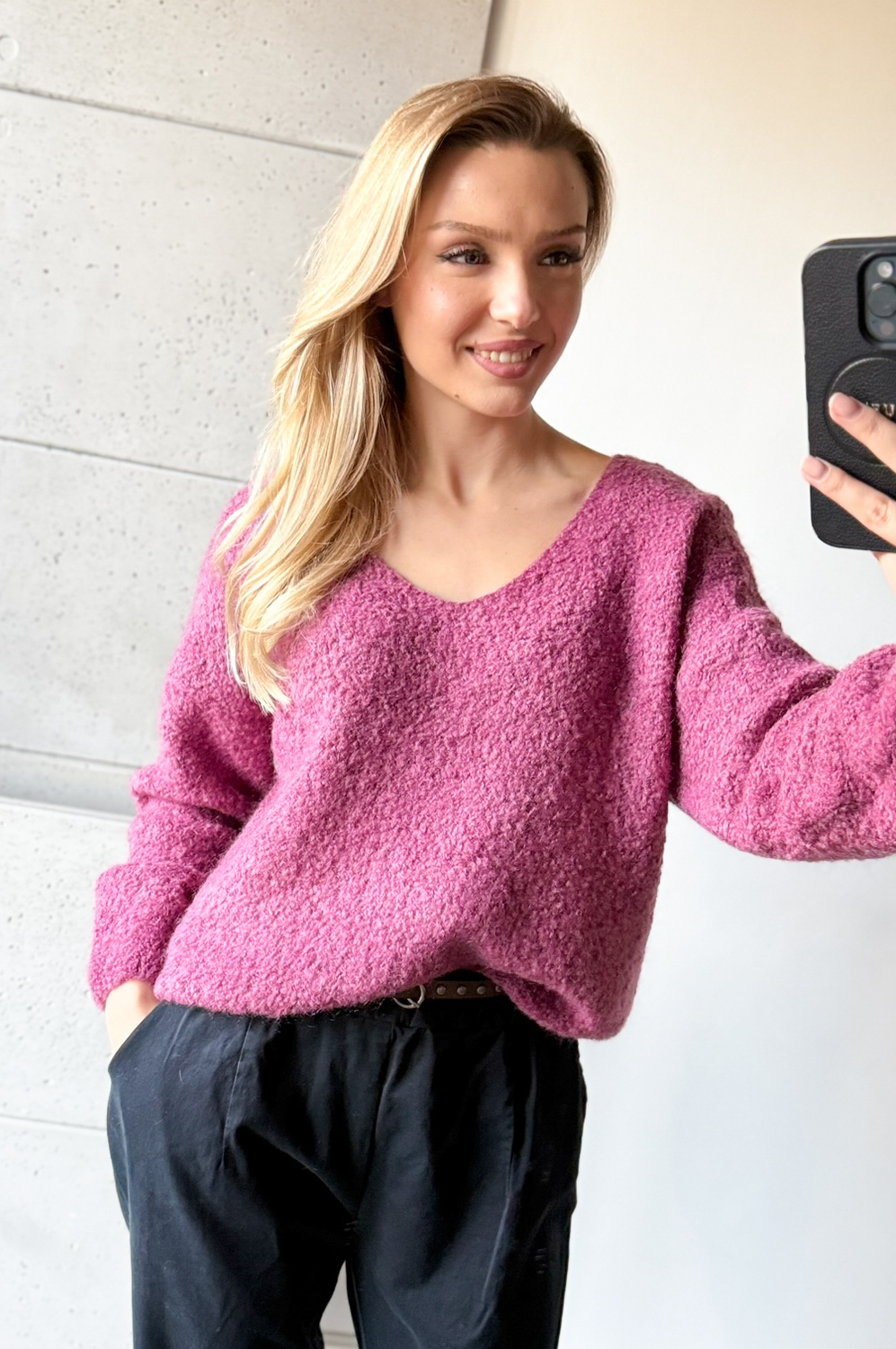 Sweterek ALPACA BOUCLE SZPIC wrzos139.00 zł Najniższa cena towaru, która obowiązywała w okresie 30 dni przed zastosowaniem obniżki: 189.00 zł Opis Sweterek w szpic jest miękki, elastyczny i sprężysty.