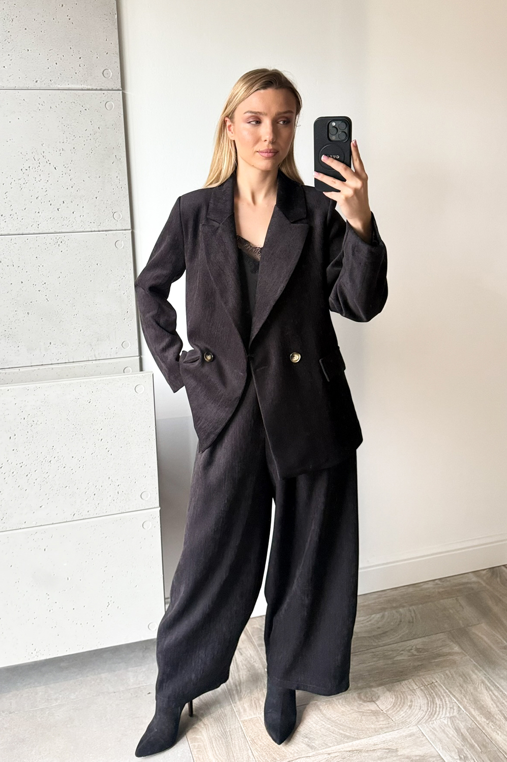 Marynarka oversize to połączenie klasycznej elegancji z luźną, modową formą. Wyróżnia się przedłużoną, nieco obszerniejszą formą. Dzięki minimalistycznej konstrukcji i uniwersalnemu fasonowi świetnie sprawdzi się zarówno w codziennych stylizacjach, jak i na wyjątkowe okazje.
